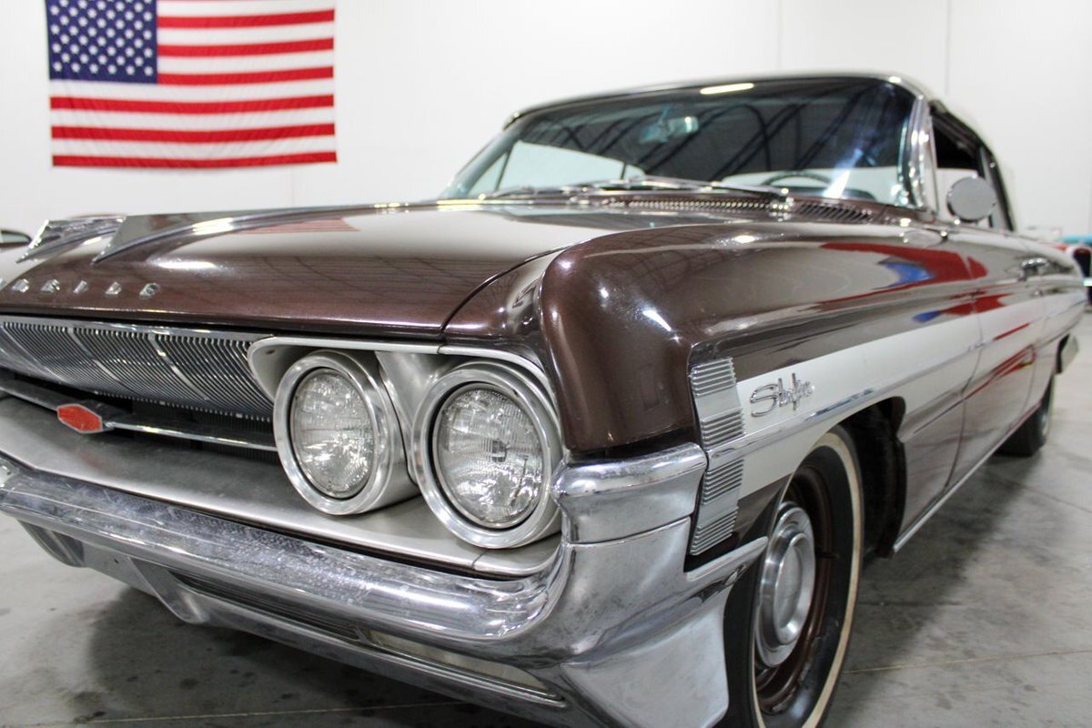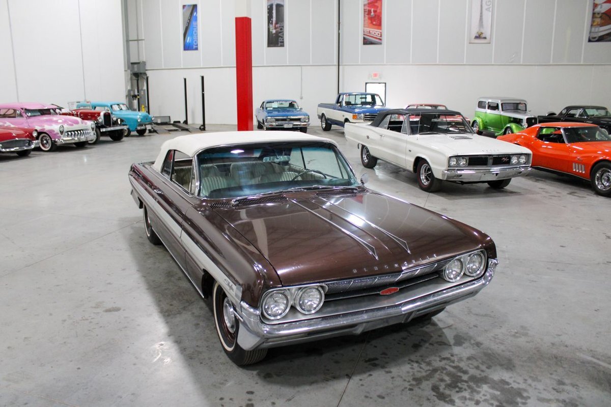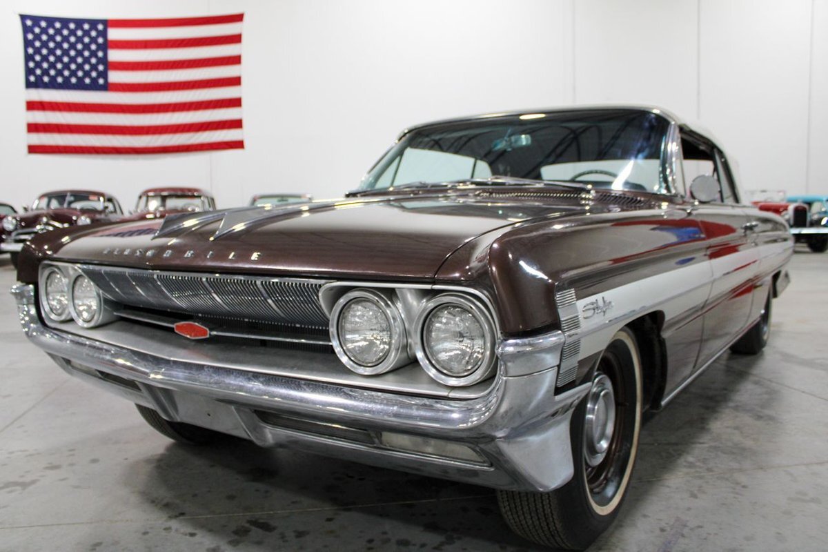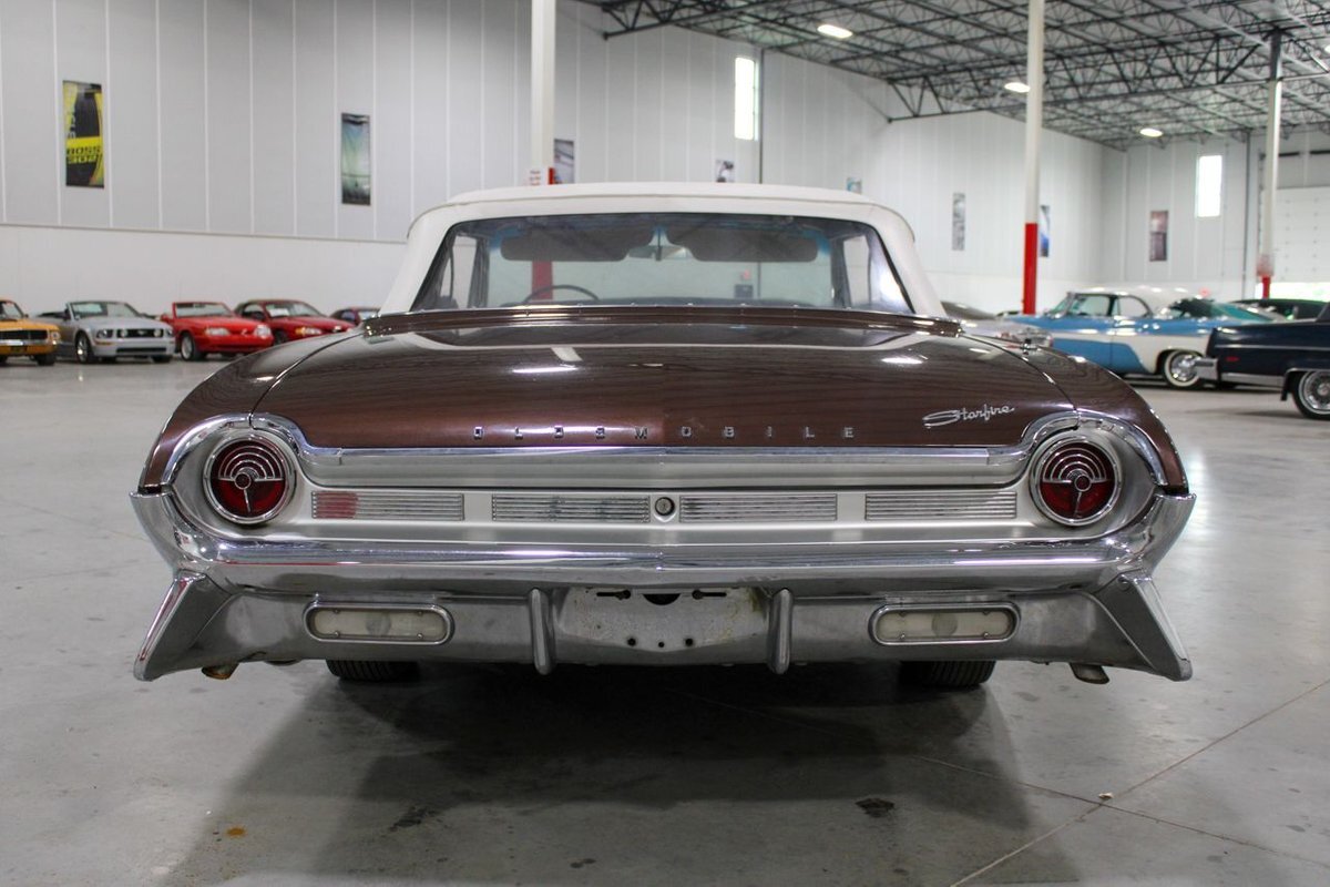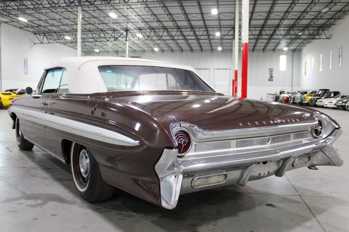 GR Auto Gallery is pleased to offer this ultra-sleek, 1962 Oldsmobile Starfire Convertible for consideration. The car is powered by its "ultra-high compression" Starfire 394 cid V8 that from the factory produced a healthy 345 horsepower and a face-ripping 440 ft lbs of torque. This power is transferred via its silky smooth Hydra-Matic automatic transmission and applied to the rear wheels. The Starfire was a premium line of Olds and typically came loaded with options and creature comforts. The car offered here remains highly original with the exception of an older repaint. At 45,841 miles, this Starfire remains in wonderful overall condition and possesses great drivability. Highlights include: Power steering, power brakes, power windows, power antenna, bucket seats, console with automatic shifter, console-mounted tachometer, factory futuristic steering wheel, dual spotlights, clock, etc. The exterior features original trim and chrome, the Starfire signature satin-smooth aluminum accent that runs the entire length of the car, fender skirts, wheel covers, etc.