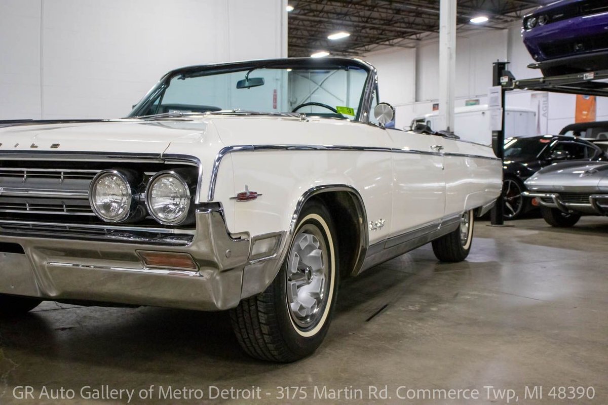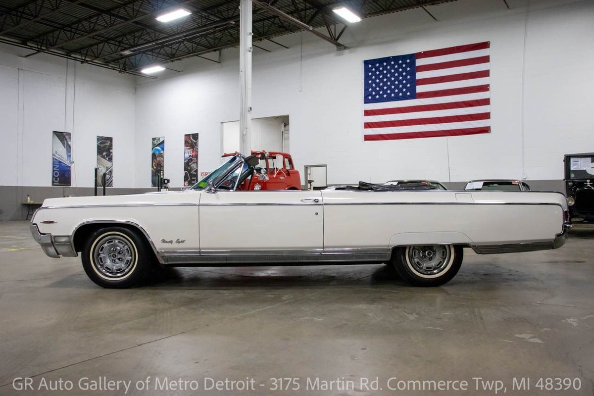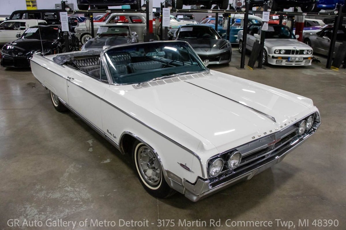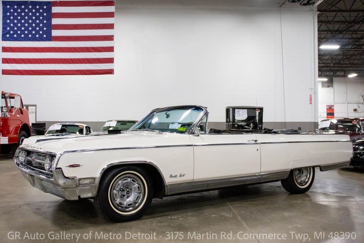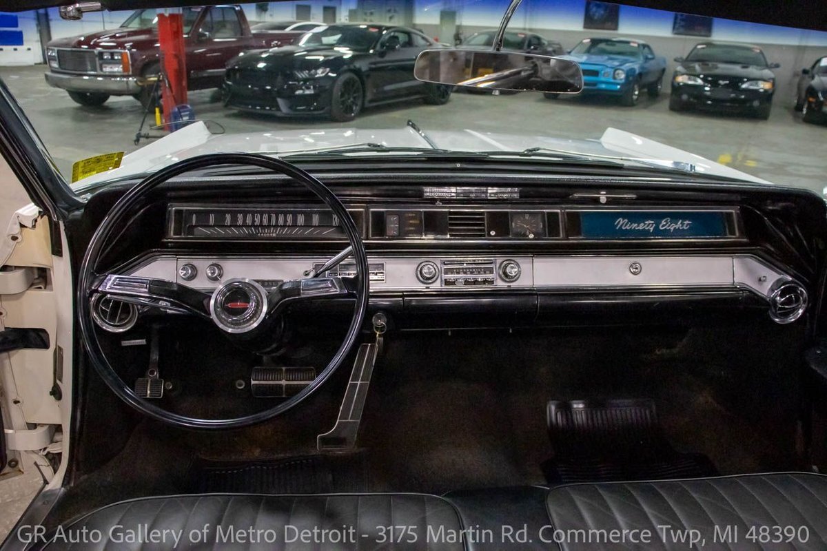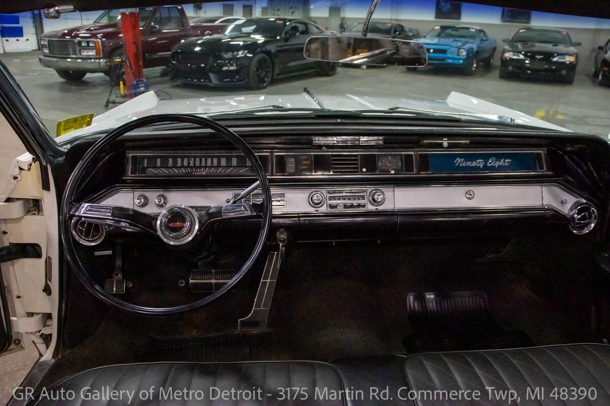 GR Auto Gallery is pleased to present this stunning 1964 Oldsmobile Ninety-Eight Convertible for your consideration. This Olds came to us from a local seller who inherited the vehicle from her father, who had purchased it from the 1st/original owner down in Florida. The vehicle spent almost the entirety of its life down in Florida until it was just recently brought up to us here in Michigan. This 98 is suiting a very clean white exterior with a black top over a black interior. It is powered by a 394ci V8 (4bbl) engine and paired with an automatic transmission. A ton of recent service has been done on this vehicle including; a full tune-up, new carburetor, fuel pump, power antenna, ignition, and power seat motors - the braking system was entirely gone through, the seats have been reconditioned, hydraulic cylinders for the convertible top replaced, and more. This turn-key Olds 98 is ready to be driven out of our facility, or shipped right to your home. Don't hesitate to contact us with any questions or interest.