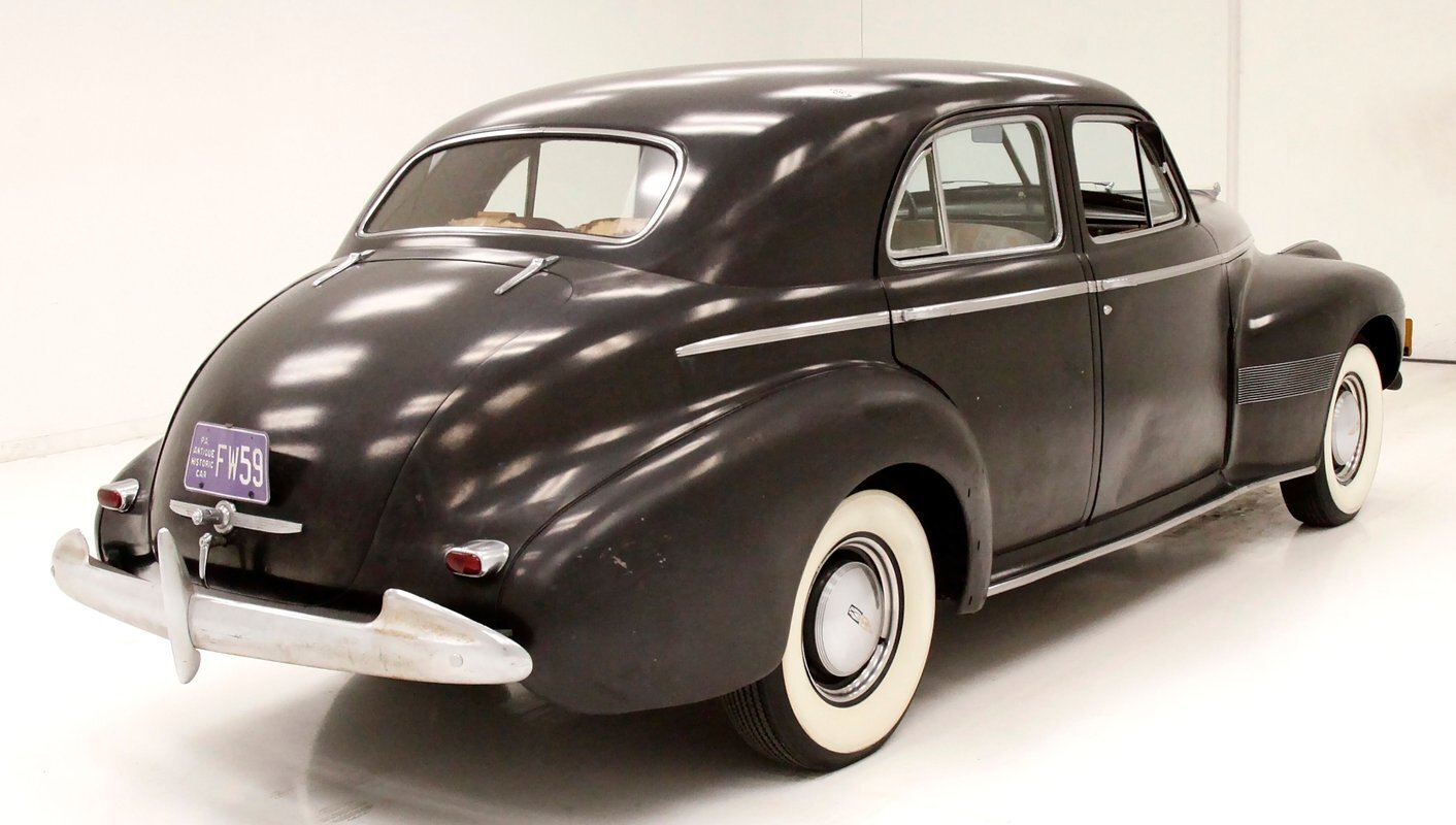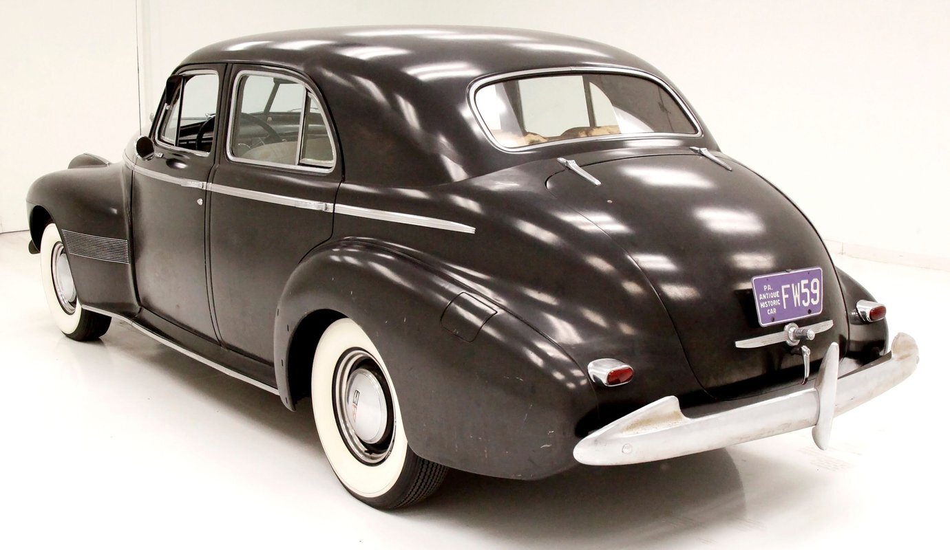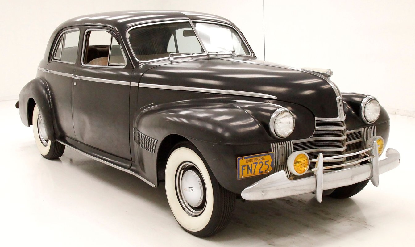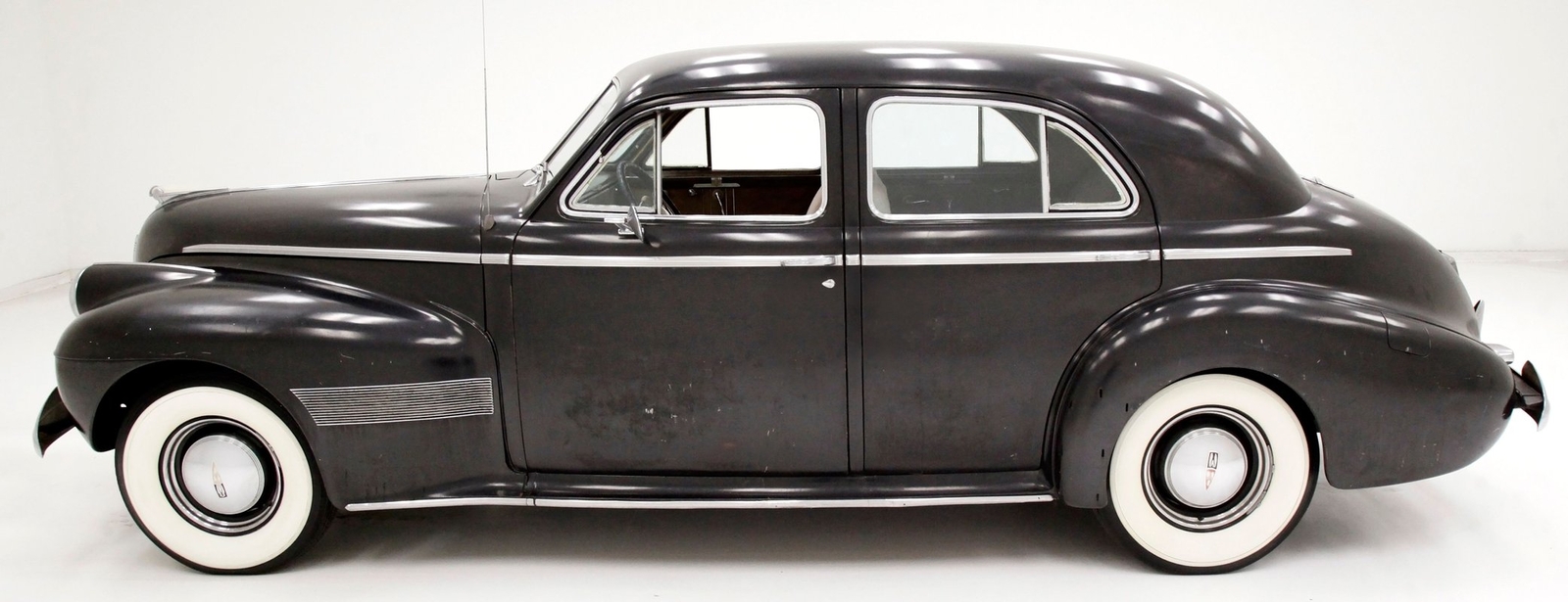 For consignment, a Harley Earl design influenced, big rounded fender, close set headlight, and all trimmed with chrome, a Detroit iron creation. This 64,418 actual mile 1940 Olds has style, class and oozes 1940's design and looks. Owned and lovingly maintained by our consignor for the last 25 years and occasionally taken out for fun, this bulbous skate has been treated to all the required maintenance as necessary and even has a new wiring harness installed to ensure things are working exactly as old Harley Earl felt they should. We proudly offer to you this 1940 Oldsmobile Custom Cruiser sedan...sparkling with new ideas in comfort, safety and style!