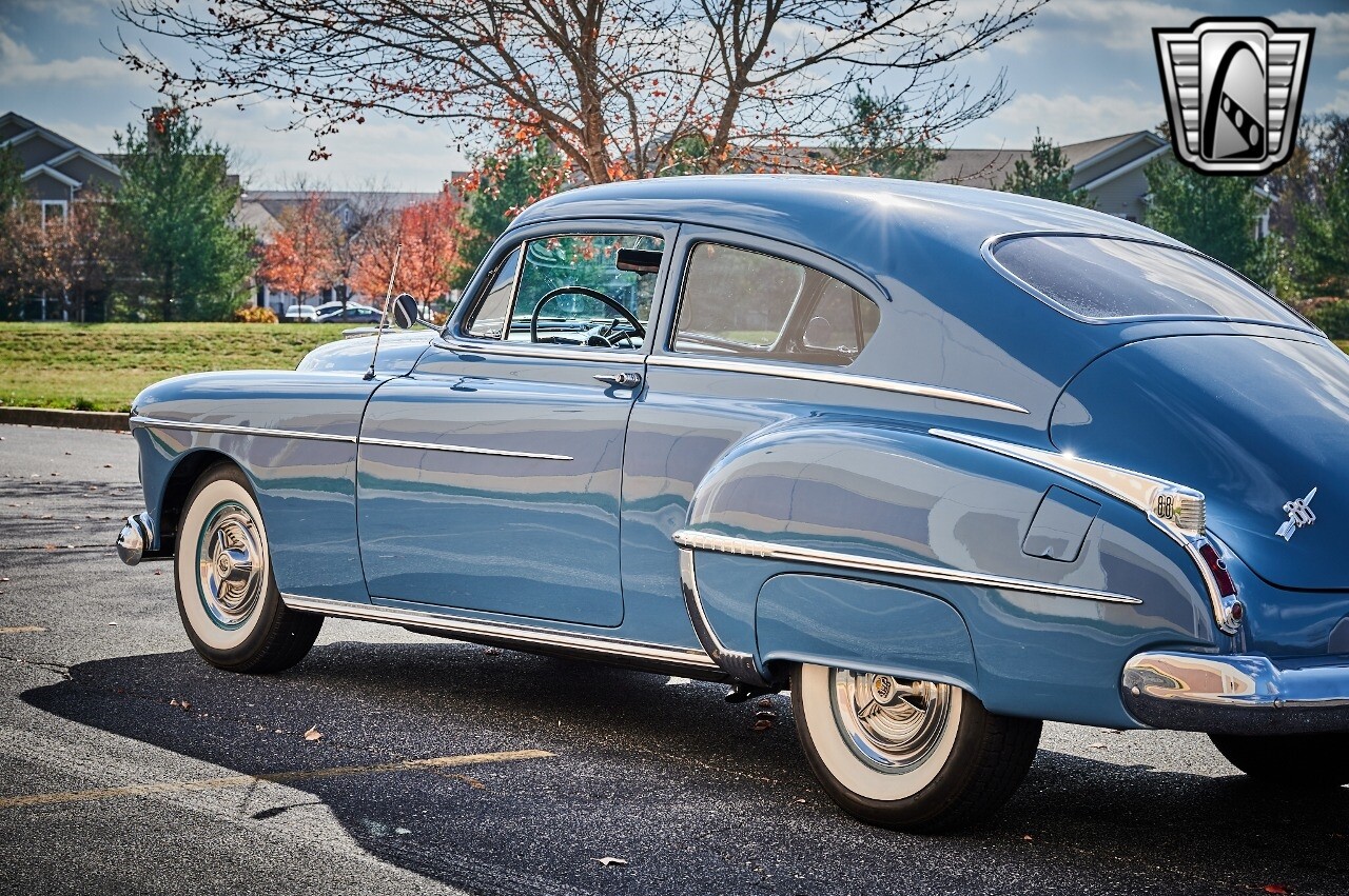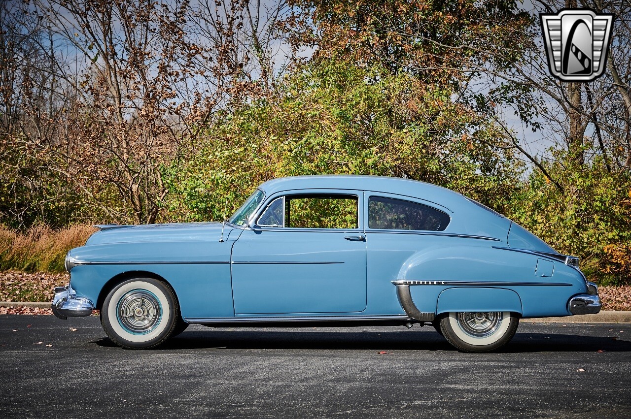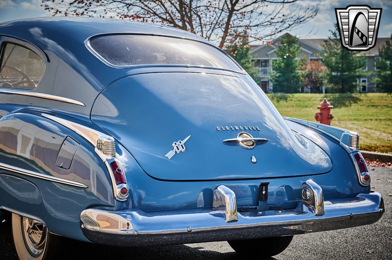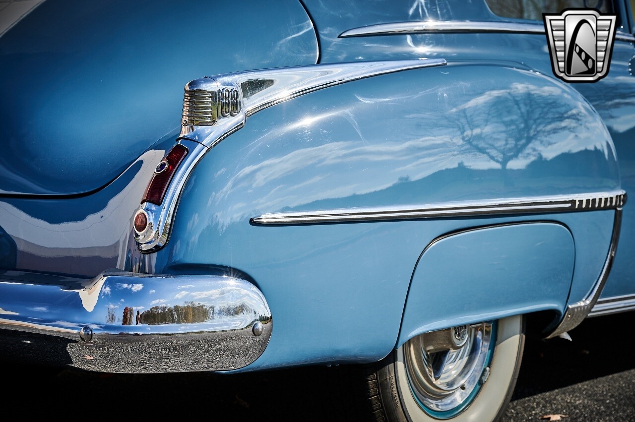 A true icon of American automotive history. This model is presented in a striking blue exterior color, a hue that captures the spirit of the era and adds to the car's overall charm. The interior of this Rocket 88 Club Coupe is equally impressive, featuring a crescent blue color scheme that complements the exterior. The interior is spacious and comfortable, providing a driving experience that is both relaxing and enjoyable. Under the hood, you'll find a powerful 455 CID Rocket V8 engine. This engine is renowned for its performance and reliability, offering a smooth and responsive driving experience. Paired with an automatic transmission, this Oldsmobile Rocket 88 Club Coupe provides an effortless and enjoyable ride, whether you're cruising down the highway or navigating city streets. This 1950 Oldsmobile Rocket 88 Club Coupe is also equipped with a range of features for your comfort and convenience. It comes with air conditioning, ensuring a comfortable driving environment no matter the weather. An AM/FM radio is also included, allowing you to enjoy your favorite music or listen to the news as you drive. In conclusion, this 1950 Oldsmobile Rocket 88 Club Coupe is a classic piece of American automotive history, combining a beautiful blue exterior with a comfortable cresent blue interior, a powerful 455 CID Rocket V8 engine, and a range of convenient features. [ omitted ]. [ omitted ].