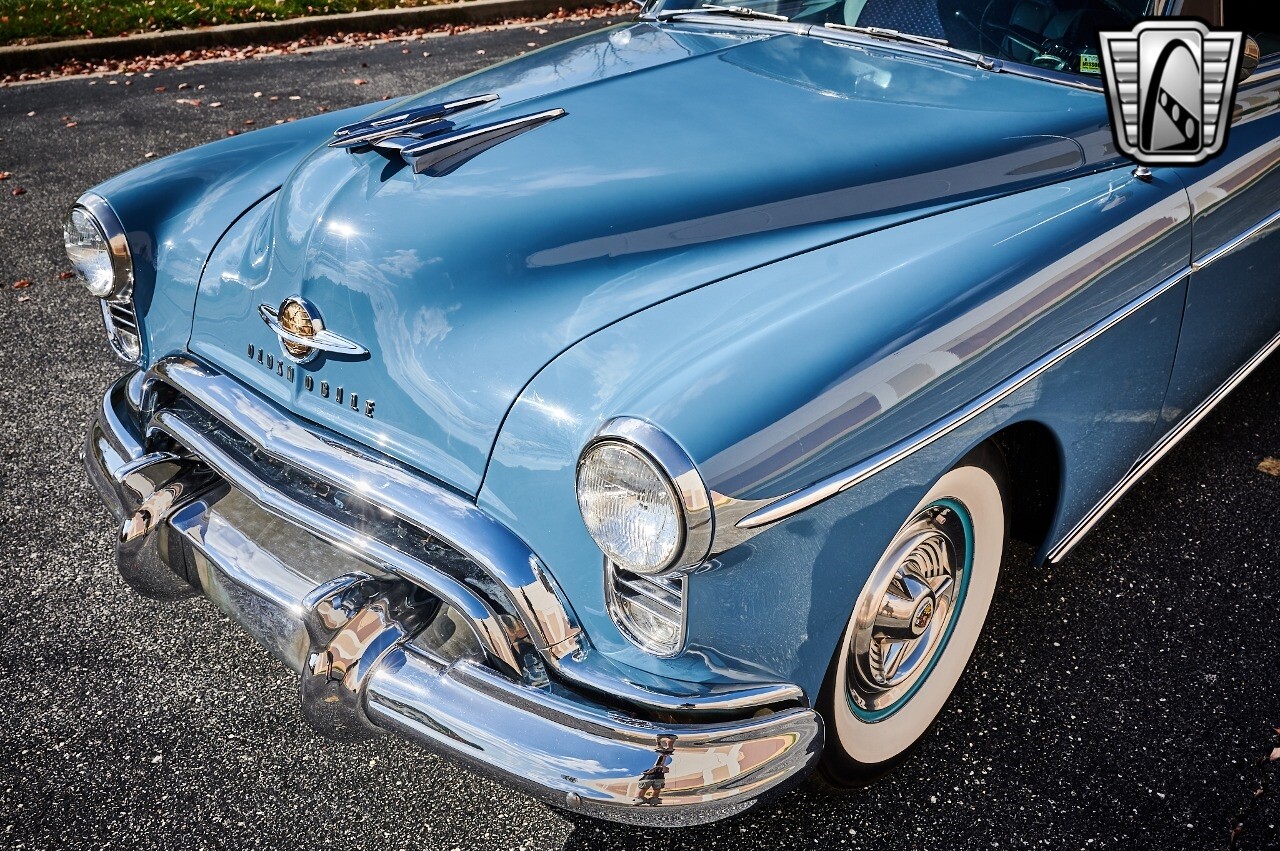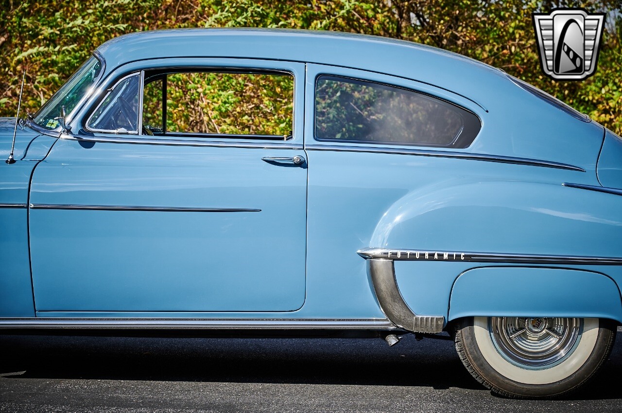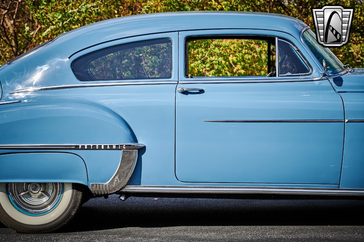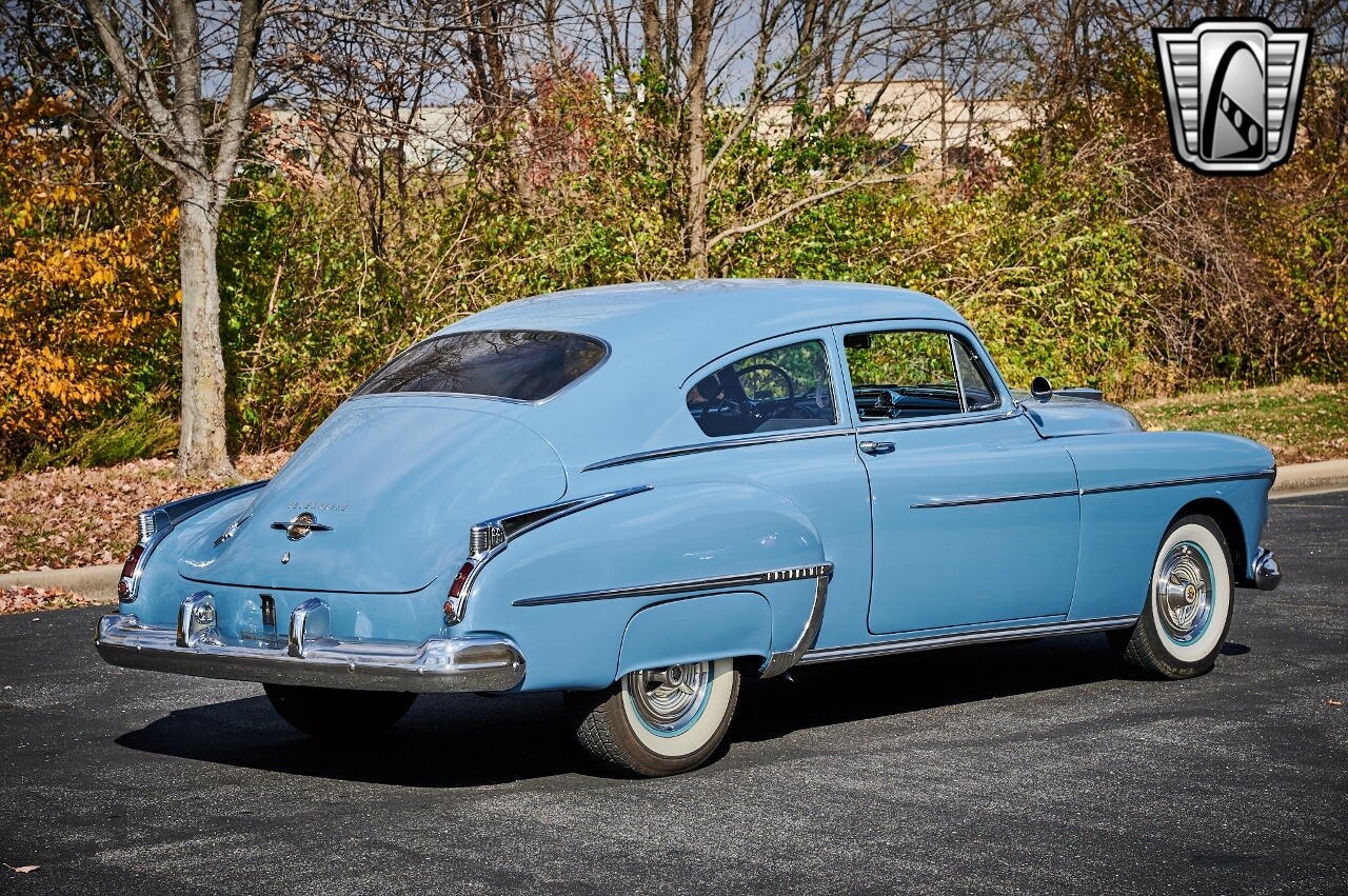 A true icon of American automotive history. This model is presented in a striking blue exterior color, a hue that captures the spirit of the era and adds to the car's overall charm. The interior of this Rocket 88 Club Coupe is equally impressive, featuring a crescent blue color scheme that complements the exterior. The interior is spacious and comfortable, providing a driving experience that is both relaxing and enjoyable. Under the hood, you'll find a powerful 455 CID Rocket V8 engine. This engine is renowned for its performance and reliability, offering a smooth and responsive driving experience. Paired with an automatic transmission, this Oldsmobile Rocket 88 Club Coupe provides an effortless and enjoyable ride, whether you're cruising down the highway or navigating city streets. This 1950 Oldsmobile Rocket 88 Club Coupe is also equipped with a range of features for your comfort and convenience. It comes with air conditioning, ensuring a comfortable driving environment no matter the weather. An AM/FM radio is also included, allowing you to enjoy your favorite music or listen to the news as you drive. In conclusion, this 1950 Oldsmobile Rocket 88 Club Coupe is a classic piece of American automotive history, combining a beautiful blue exterior with a comfortable cresent blue interior, a powerful 455 CID Rocket V8 engine, and a range of convenient features. [ omitted ]. [ omitted ].