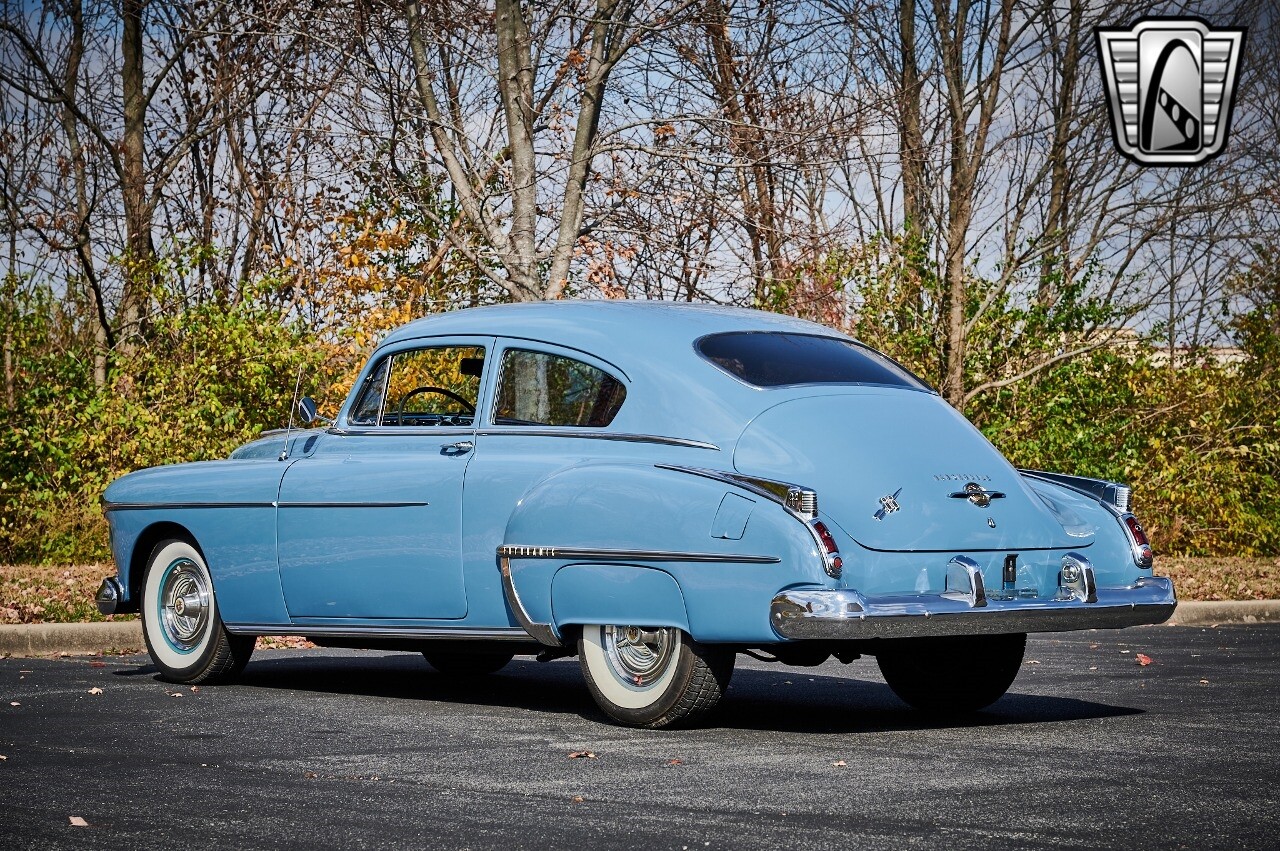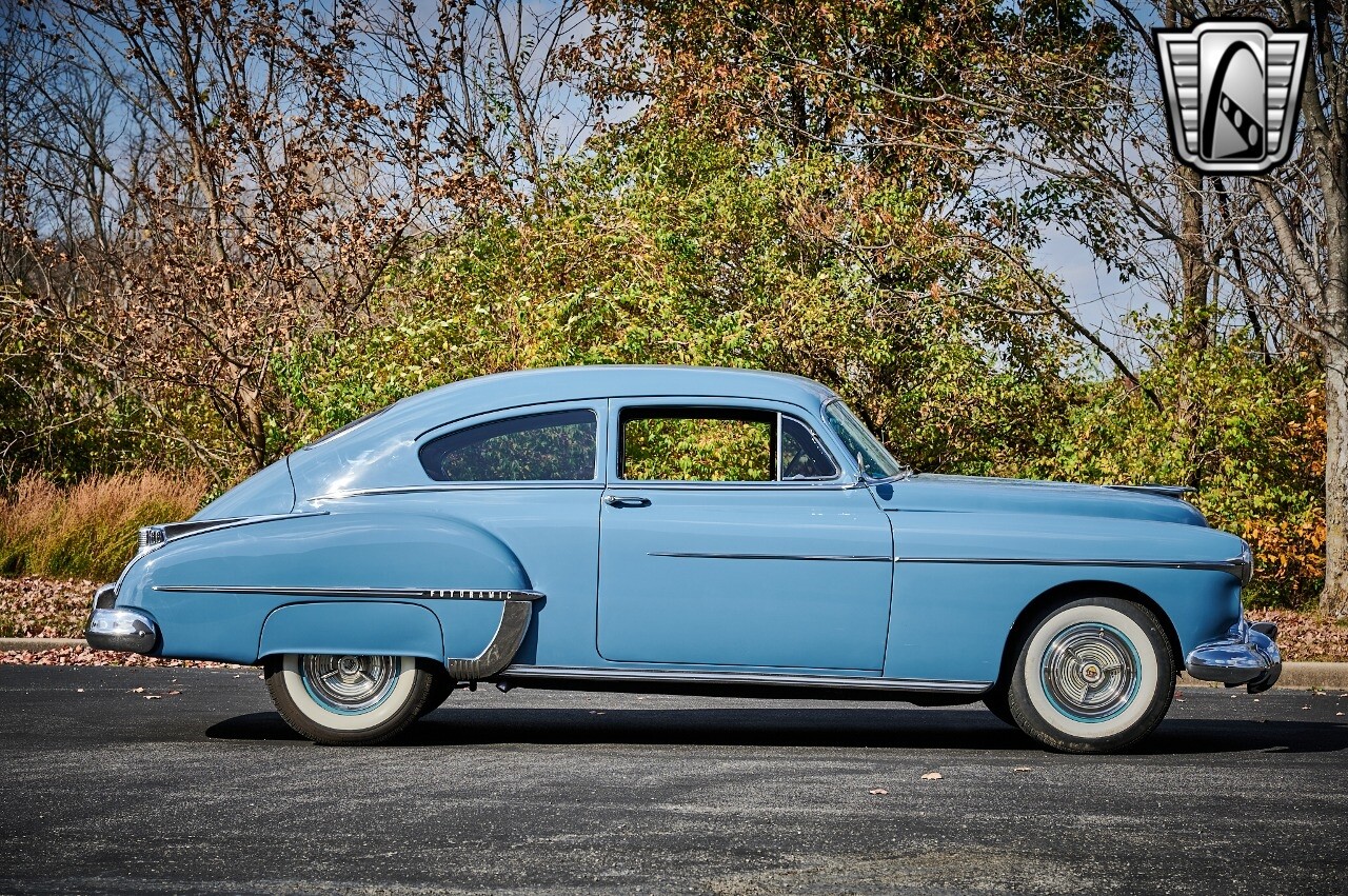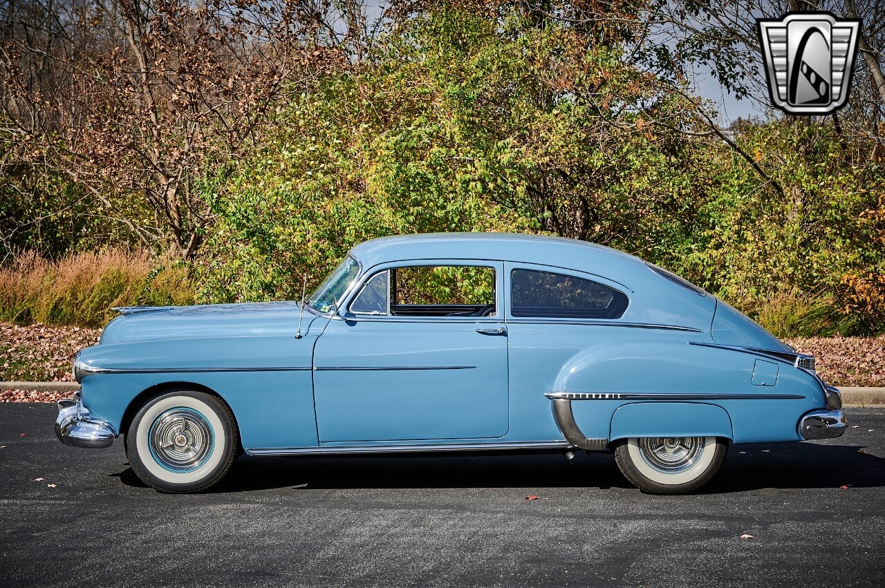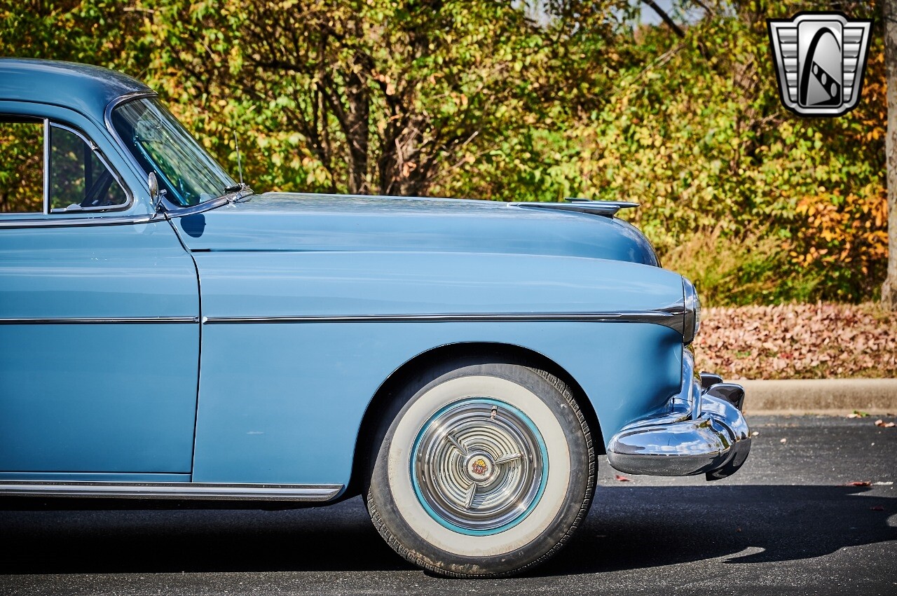 A true icon of American automotive history. This model is presented in a striking blue exterior color, a hue that captures the spirit of the era and adds to the car's overall charm. The interior of this Rocket 88 Club Coupe is equally impressive, featuring a crescent blue color scheme that complements the exterior. The interior is spacious and comfortable, providing a driving experience that is both relaxing and enjoyable. Under the hood, you'll find a powerful 455 CID Rocket V8 engine. This engine is renowned for its performance and reliability, offering a smooth and responsive driving experience. Paired with an automatic transmission, this Oldsmobile Rocket 88 Club Coupe provides an effortless and enjoyable ride, whether you're cruising down the highway or navigating city streets. This 1950 Oldsmobile Rocket 88 Club Coupe is also equipped with a range of features for your comfort and convenience. It comes with air conditioning, ensuring a comfortable driving environment no matter the weather. An AM/FM radio is also included, allowing you to enjoy your favorite music or listen to the news as you drive. In conclusion, this 1950 Oldsmobile Rocket 88 Club Coupe is a classic piece of American automotive history, combining a beautiful blue exterior with a comfortable cresent blue interior, a powerful 455 CID Rocket V8 engine, and a range of convenient features. [ omitted ]. [ omitted ].