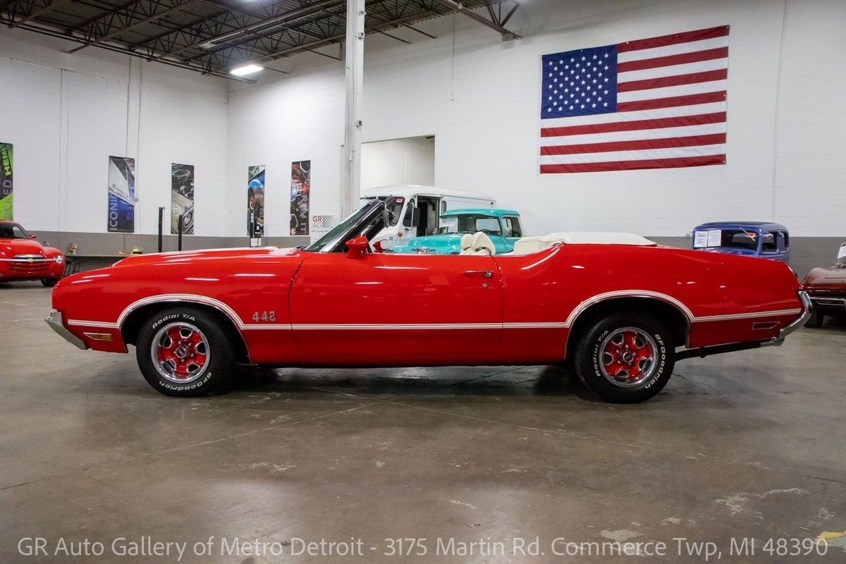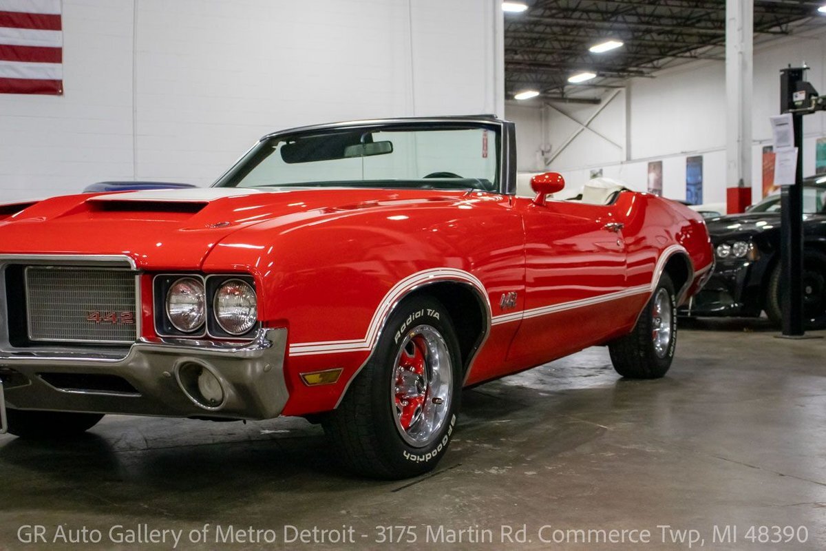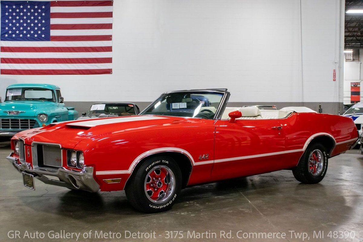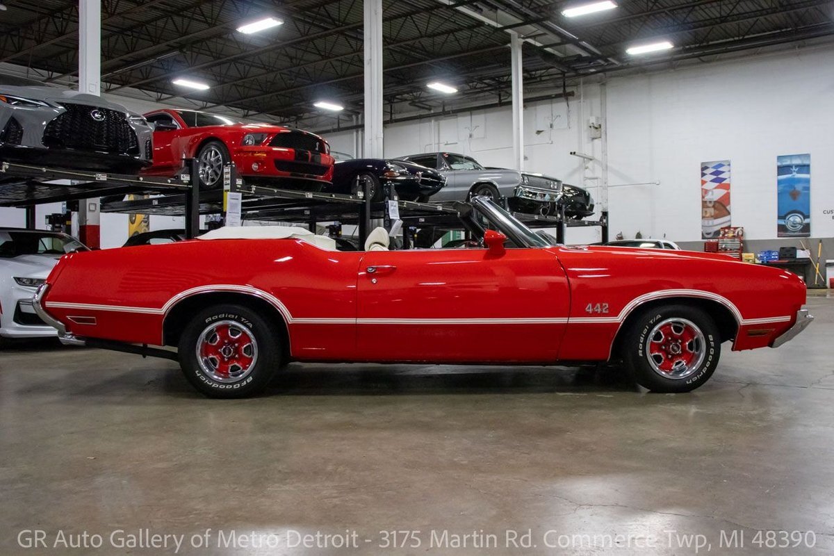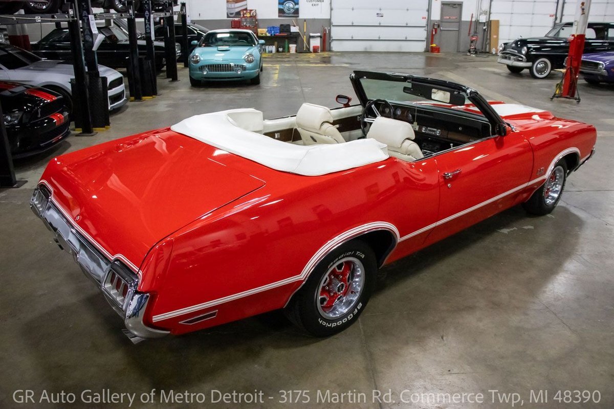 GR Auto Gallery is pleased to present this 1972 Oldsmobile Cutlass (442 tribute) for your consideration. This Cutlass comes in a clean Matador Red exterior over a nice White leather interior. Powering this Cutlass is a 350 cubic inch V8 paired with an automatic transmission. This Cutlass features include; Power steering, power brakes, functional heat, a new convertible top, powered windows, functional cassette stereo, oil, amp and temp gauges, wooden accents, chrome door handles, wood grain steering wheel, full-size spare tire, and much more. With the turn of a key, this Cutlass will have you cruising this summer to all the car shows. Drive this one out of our showroom or have us assist with shipping it to you anywhere in the United States! Don't hesitate to call us with any questions or for more information.