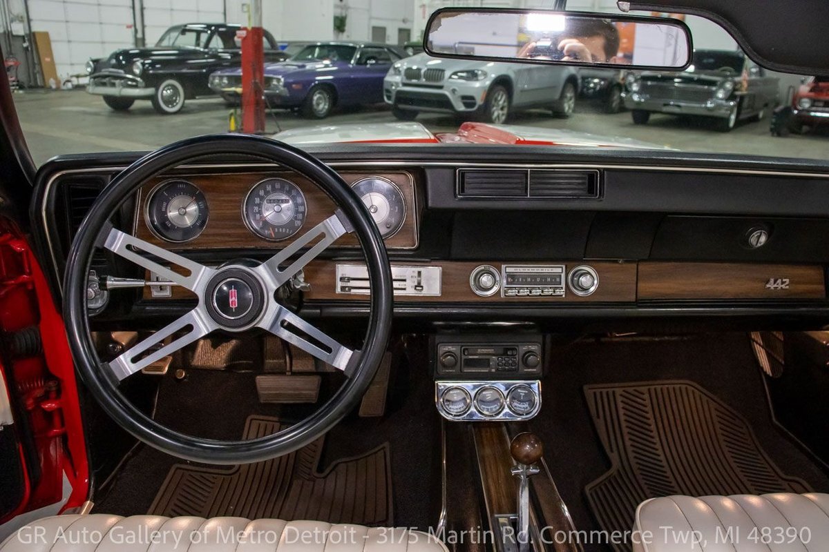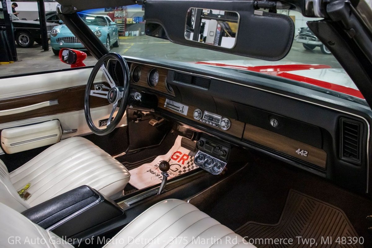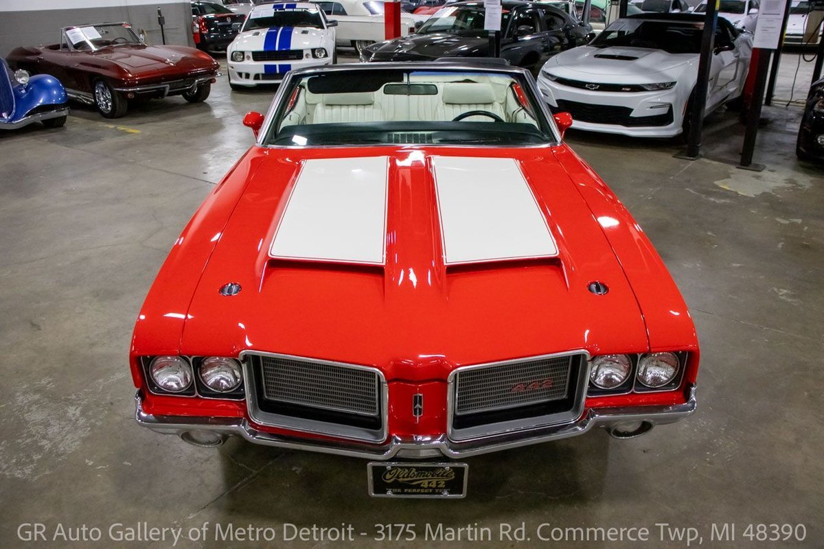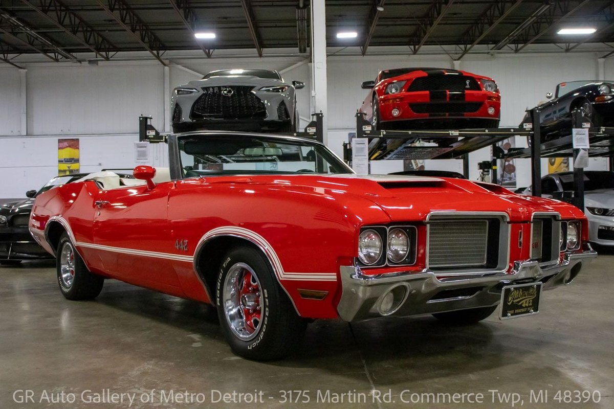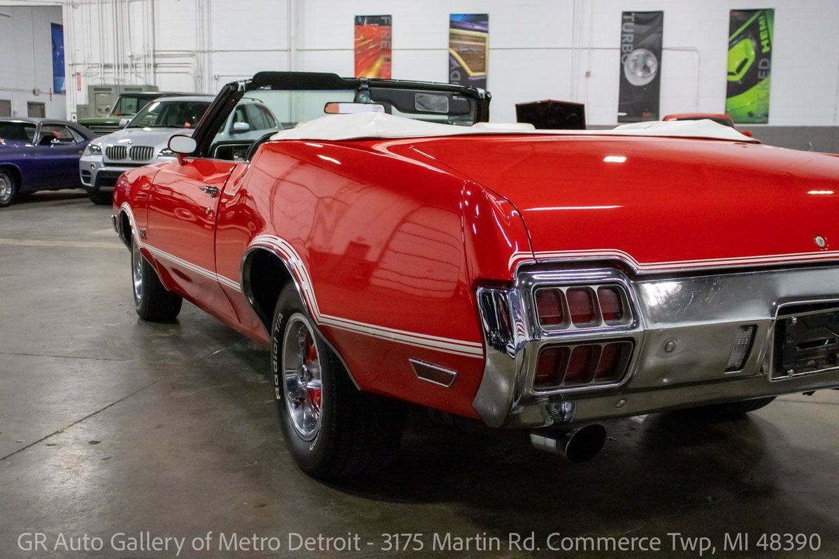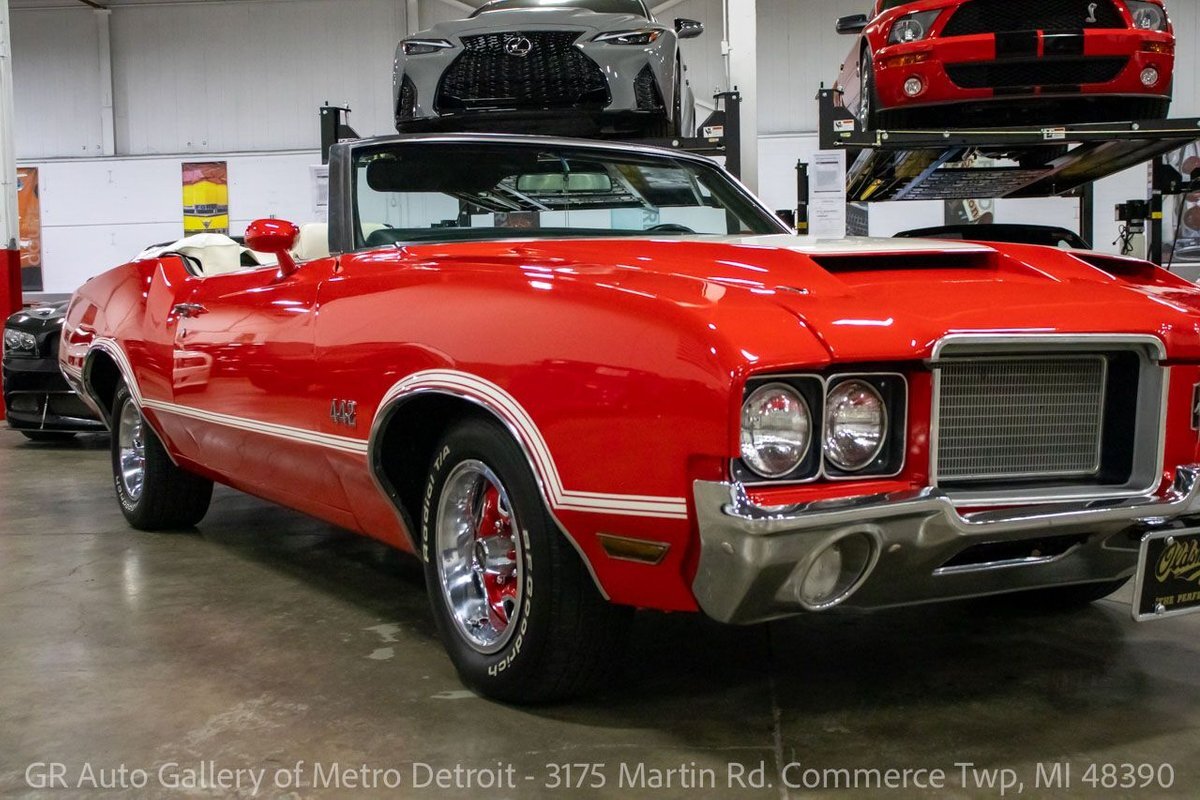 GR Auto Gallery is pleased to present this 1972 Oldsmobile Cutlass (442 tribute) for your consideration. This Cutlass comes in a clean Matador Red exterior over a nice White leather interior. Powering this Cutlass is a 350 cubic inch V8 paired with an automatic transmission. This Cutlass features include; Power steering, power brakes, functional heat, a new convertible top, powered windows, functional cassette stereo, oil, amp and temp gauges, wooden accents, chrome door handles, wood grain steering wheel, full-size spare tire, and much more. With the turn of a key, this Cutlass will have you cruising this summer to all the car shows. Drive this one out of our showroom or have us assist with shipping it to you anywhere in the United States! Don't hesitate to call us with any questions or for more information.