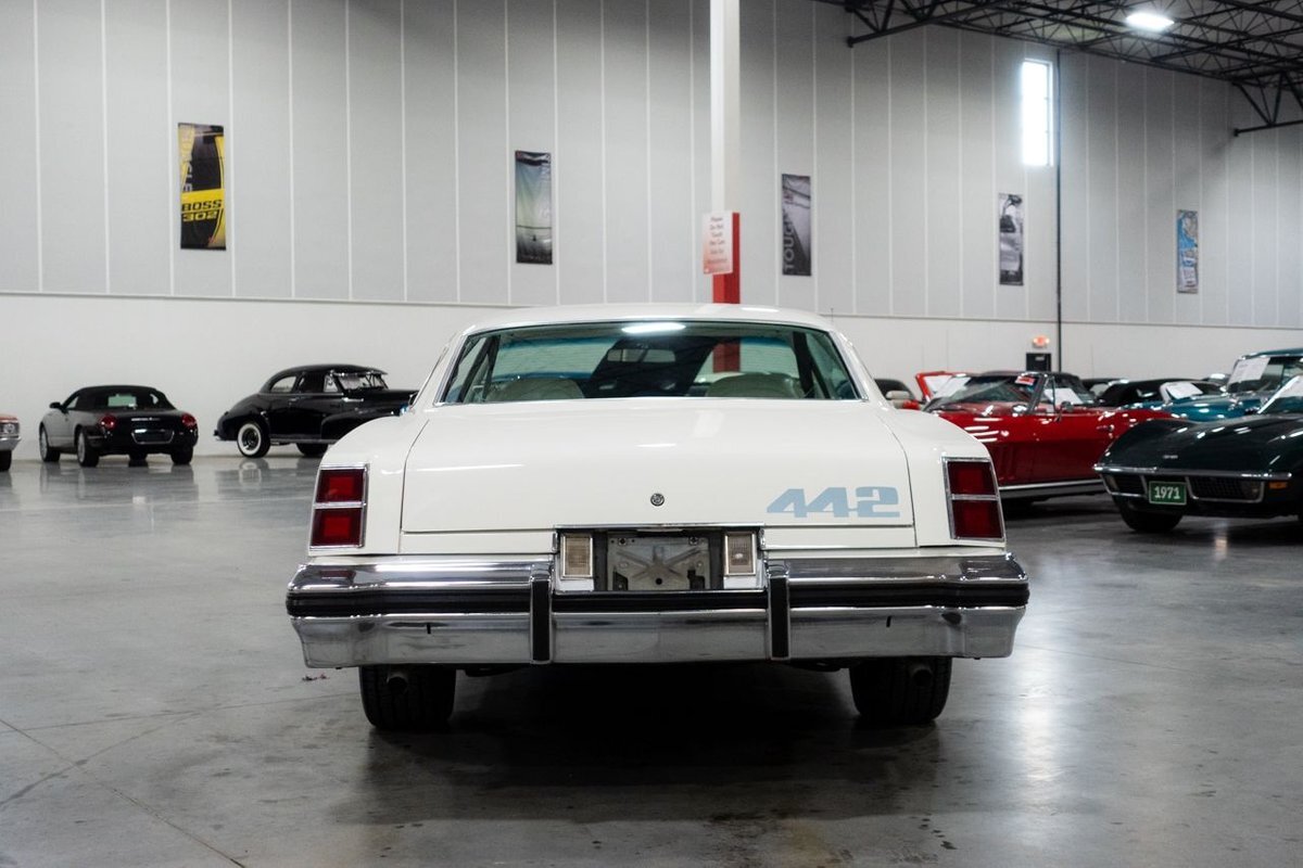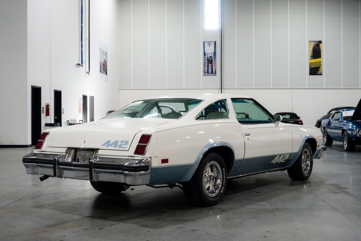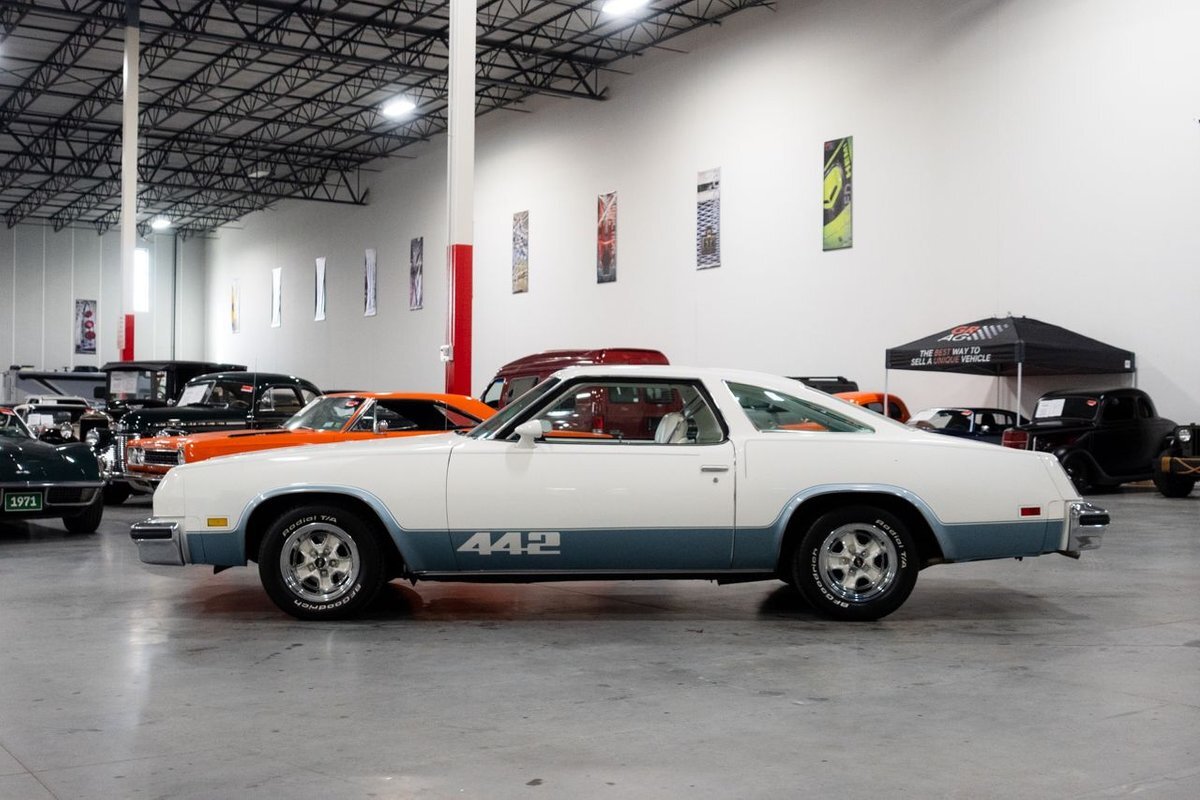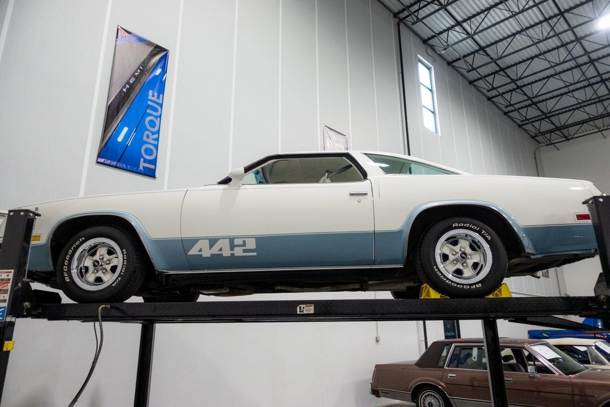 GR Auto Gallery is pleased to present this 1977 Oldsmobile Cutlass 442 Hardtop Coupe for purchase. This 442 came exceptionally well optioned with a factory 403ci V8 paired with a 350 turbo hyrdromatic transmission. The 403 was new for 1977 and was a pretty rare engine combination in the 442. This clean Olds has all the great factory features; bucket seats and console, operating heat and air conditioning, cruise control, tilt wheel, working NOS clock, rear window defroster... the list is very long and distinguished. The current owner has replaced several parts with NOS parts. The 442 even comes with a buildsheet. if you're looking for a very well maintained, and well mannered classic car, this is the car for you. Drive this one out of our showroom or have us assist with shipping it to you anywhere in the United States! Don't hesitate to give us a call with any questions or for more information.