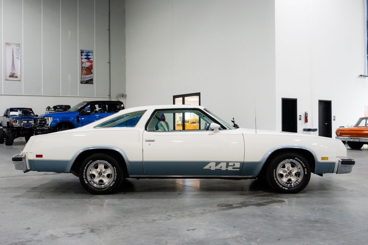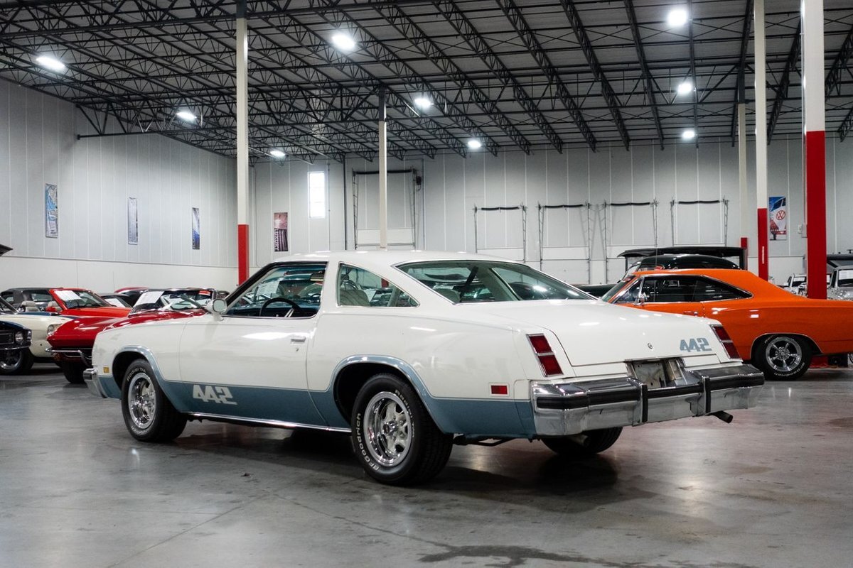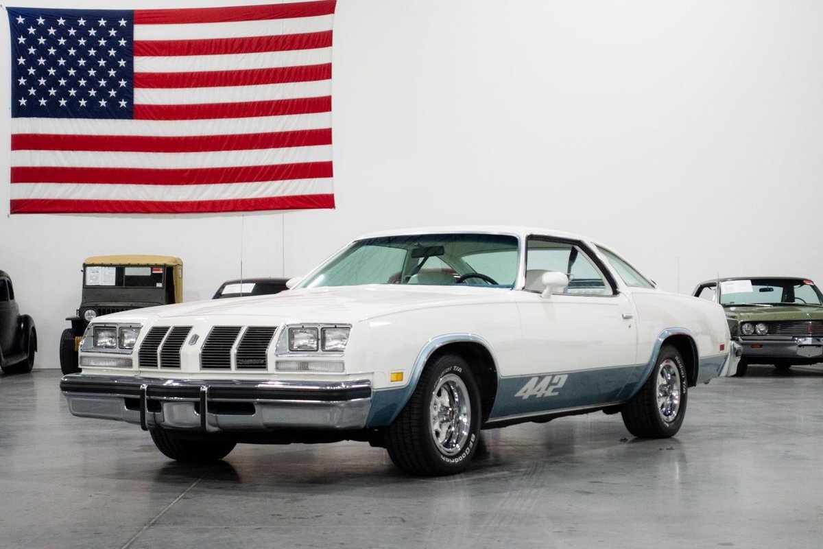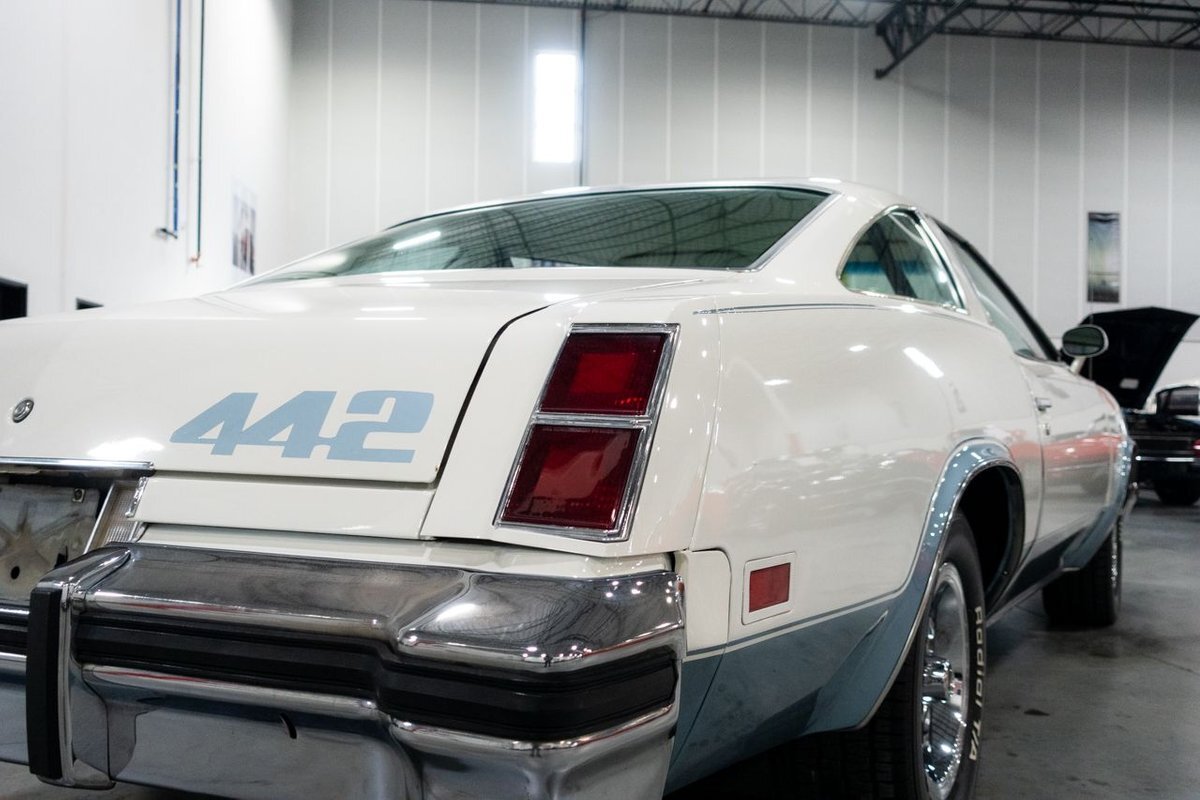 GR Auto Gallery is pleased to present this 1977 Oldsmobile Cutlass 442 Hardtop Coupe for purchase. This 442 came exceptionally well optioned with a factory 403ci V8 paired with a 350 turbo hyrdromatic transmission. The 403 was new for 1977 and was a pretty rare engine combination in the 442. This clean Olds has all the great factory features; bucket seats and console, operating heat and air conditioning, cruise control, tilt wheel, working NOS clock, rear window defroster... the list is very long and distinguished. The current owner has replaced several parts with NOS parts. The 442 even comes with a buildsheet. if you're looking for a very well maintained, and well mannered classic car, this is the car for you. Drive this one out of our showroom or have us assist with shipping it to you anywhere in the United States! Don't hesitate to give us a call with any questions or for more information.