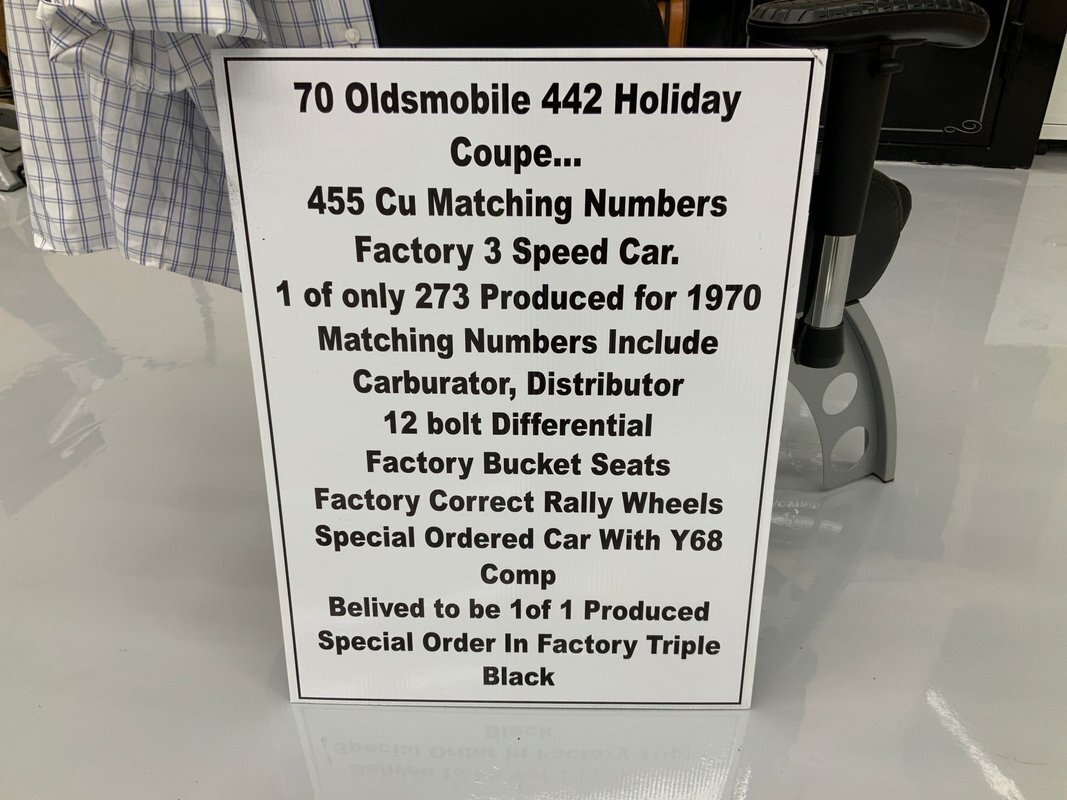 Welcome to Street Dreams in Texas as we celebrate our 25th year in the classic and muscle car business. This car is in a private collection and will be SHOWN BY APPOINTMENT ONLY! We are always happy to present you with another dreamy classic muscle car. This iconic Oldsmobile 442 has a numbers matching 455ci V8 with manual 3-speed transmission. This car is 1 of 273 produced in 1970. The car comes with the matching number carburetor and distributor. Ordered with 12 bolt differential, Rallye wheels, bucket seats, and special order Y68 triple Black. This car is believed to be the 1 of 1 order in triple Black. The car has been very well taken care of so it runs and drives very nicely. Street Dreams 830-997-1950) is a full service dealership that can assist with worldwide delivery, insurance, and financing options.