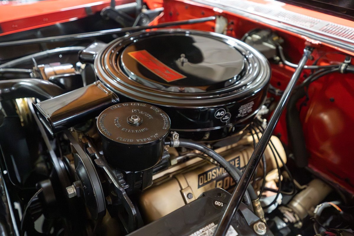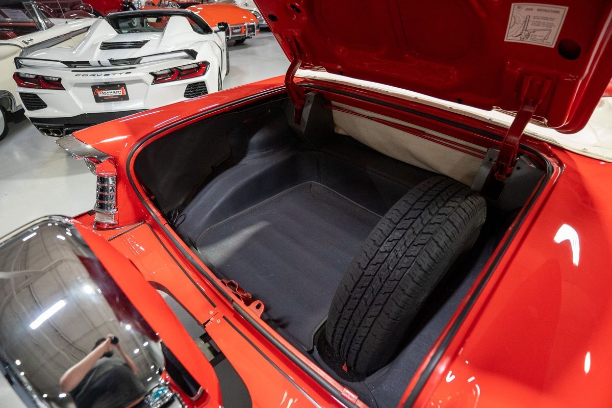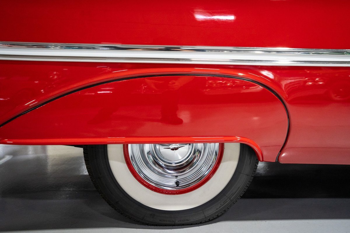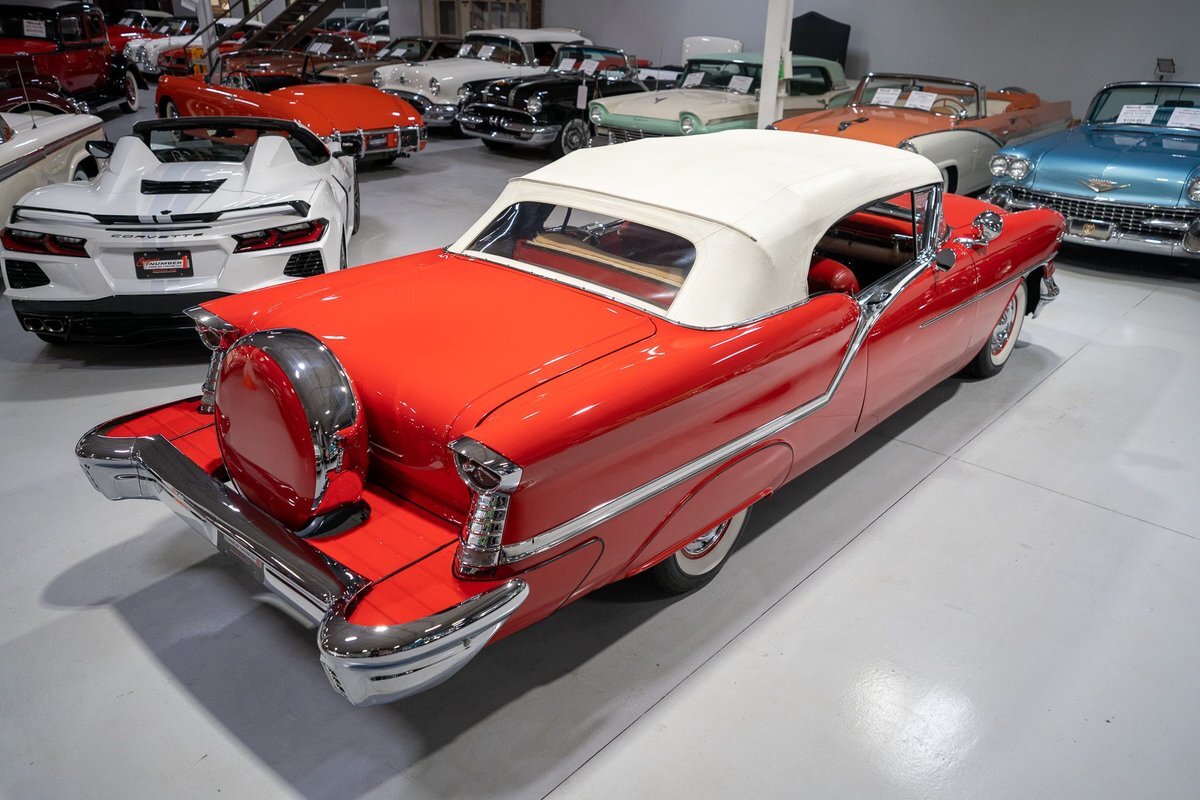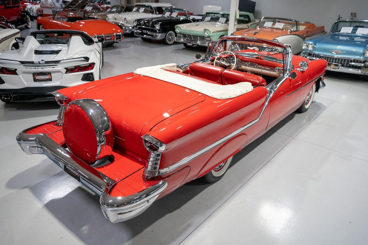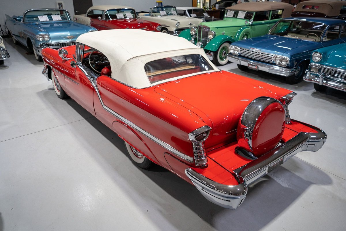 This 1957 Oldsmobile Super 88 J-2 Convertible is an absolutely gorgeous convertible with fantastic options and is a former 3-time concours participant. 1957 marked the final year of Oldsmobile's "Futuramic" styling, bookending an era that began in 1948. At the nose, the large oval recessed chrome grille was reminiscent of previous years' style, almost a combination of the grilles from 1955 and 1956. Down the sides, a piece of chrome trim runs from the front quarter through most of the front door and a new painted accent stripe, straddled by chrome strips, runs from the vent window down and out through the rear quarter. Changes to the '57 rear end included a new, larger taillight design that capped off a truly elegant automobile. In 1957, Oldsmobile was the fifth-largest American automaker and the GM marque offered three distinct series, the entry-level "Golden Rocket" 88, the sporty Super 88, and the premium "Starfire" 98. The Super 88 shared the same body shell and 122" wheelbase as the entry-level 88, but came more highly-appointed and with more standard features including special trim and interior lights, among other items. The other big addition to Oldsmobile's 1957 lineup was the introduction of the "J-2" induction system option comprised of a trifecta of dual-barrel carburetors that pushed the horsepower output from 277 to 300. This particular '57 Super 88 J-2 comes to us from a longtime owner who oversaw the car's extensive professional restoration and showed the car extensively, including in 3 separate east coast Concours D'Elegance events. Powering this 1957 Oldsmobile is a 371 Cubic Inch V8 engine paired with a "J-2 Rocket" induction tri-power system comprised of three dual-barrel carburetors and that was said to have created 300 horsepower when new. The J-2 371 V8 is backed by a "Jetaway" Hydra-Matic Automatic transmission that makes this Super 88 an easy car for anybody to drive. Exhaust exits the 371 V8 powerplant via a dual exhaust setup that produces a nice throaty sound out of the rear of this 50s cruiser. This 1957 Olds is loaded with options! Power steering and dual outside mirrors make maneuvering this Super 88 Convertible in and out of tight spaces at the local car show or drive-in is a total breeze and greatly improves the overall driving experience. Outfitted with "Pedal-Ease" Power Brakes, bringing this 1957 Oldsmobile to a full stop requires much less effort and is another one of those highly desirable options on vintage cars. Dual outside spotlights, fender skirts, and rear-mounted Continental Kit are all period-type options that add to the fifties allure of this Super 88. The white vinyl power convertible top is in great shape and it goes up and down with the simple flick of a switch. The previous owners of this '57 Olds also added several upgrades for improved drivability and performance. The original generator was replaced by an alternator to improve battery charging and overall electrical output. Previous ownership also added Vintage Air Conditioning so that you can stay cool while cruising even on the hottest summer days. The exterior of this 1957 J-2 Super 88 has been refinished in Festival Red with an Alcan White accent that just makes the exterior of this Olds pop. The chrome and brightwork around the exterior of this Super 88 is in fantastic shape and completes the exterior look of the car. The interior on this Super 88 Convertible is absolutely gorgeous! The front power seat and rear bench have been reupholstered in beautiful Red and Ivory leather. The color-matched door panels, chrome power window controls, red carpeting, padded dash, and steering wheel are all in wonderful condition as well and all appear to be in their stock configuration. The instrument cluster is equipped with a 120 MPH speedometer and fuel gauge, along with indicator lights for engine temperature, oil pressure, and battery charging. Integrated into the dash is a Wonderbar Super Deluxe AM radio sitting below the controls for the power antenna and power convertible top, and a clock. A Sunpro volt gauge and controls and vents for the Air Conditioning system are mounted neatly under the dash. Whether you're buying your first classic 50s car or you're adding to your existing collection this 1957 Oldsmobile Super 88 J-2 Convertible would make an excellent choice. Give us a call today at763-428-7337!