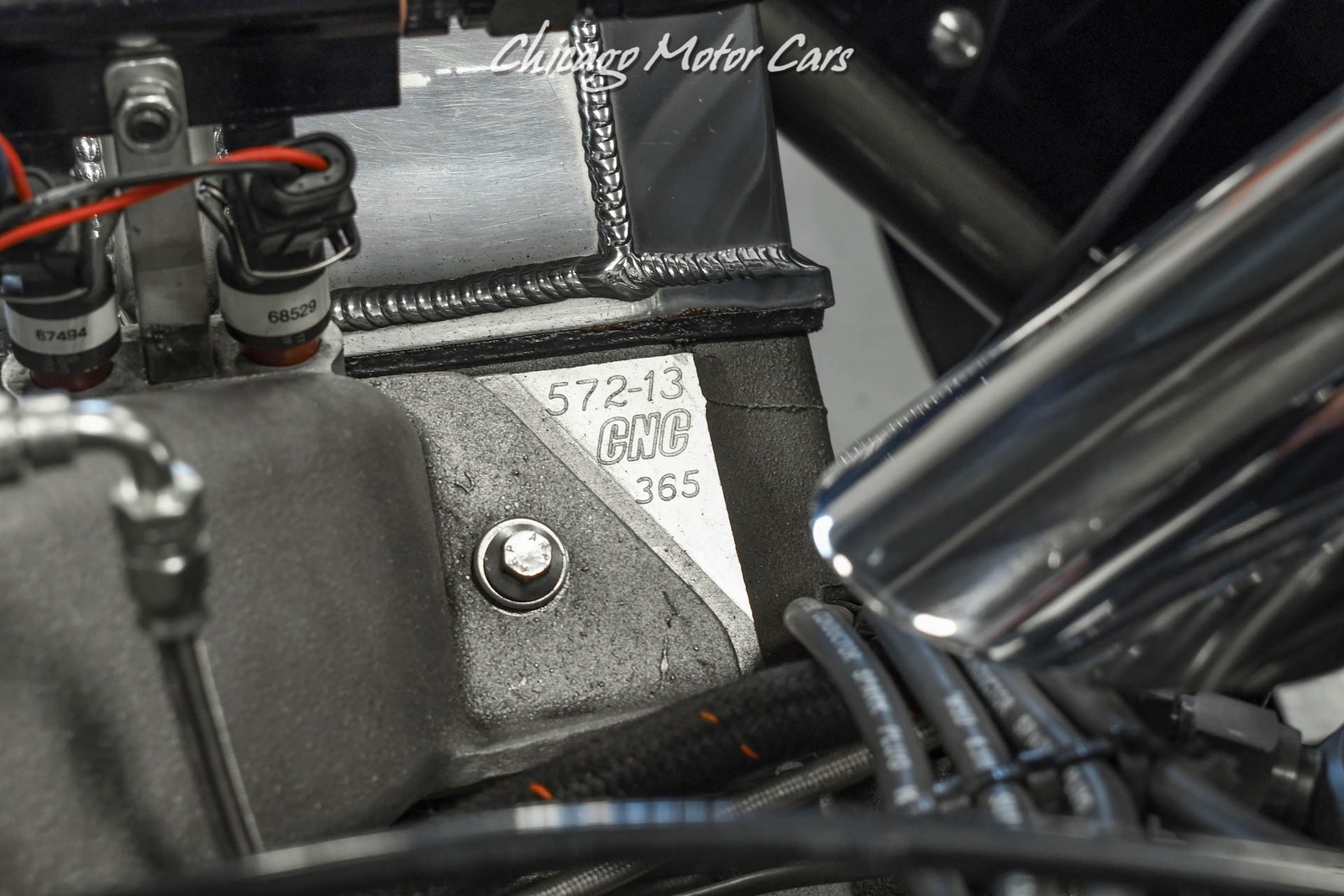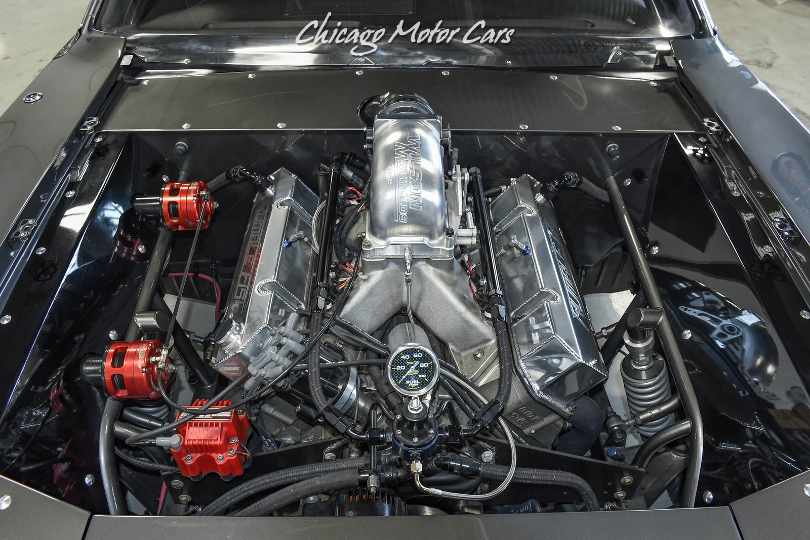 - Custom Fabricated & CNC-Machined Valve Covers- Indy Cylinder Head Aluminum Heads w/Jesel Roller Rockers & Jesel Roller Lifters- Steve Morris Racing Engines All-Aluminum 540ci Chrysler Callies Crank, Oliver Rods & Diamond Pistons- Mezeire Remote-Mount Electric Water Pump, Moroso 10-Quart Wet Sump Pan w/Titian Mechanical Oil Pump