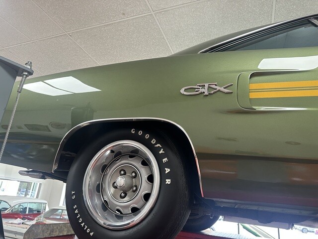 440 6 Pack 390 Horsepower Numbers Matching. Automatic Numbers Matching. Bucket Seats with Center Armrest. 1 of only 328 V-Code GTX Produced with this Driveline Combo. 8 3/4 Pumpkin Posi Rear End 3.55 Ratio. Power Steering. Power Brakes. Factory AM/FM Radio. Rally Gauges. Wood Trim Stock Steering Wheel. 15 inch Stock Steel Wheels, Rings, and Centers. F60x15 Correct Polyglas Goodyear Tires. Ram Air Factory Grabber Hood. New Windshield Shaded & Tinted .