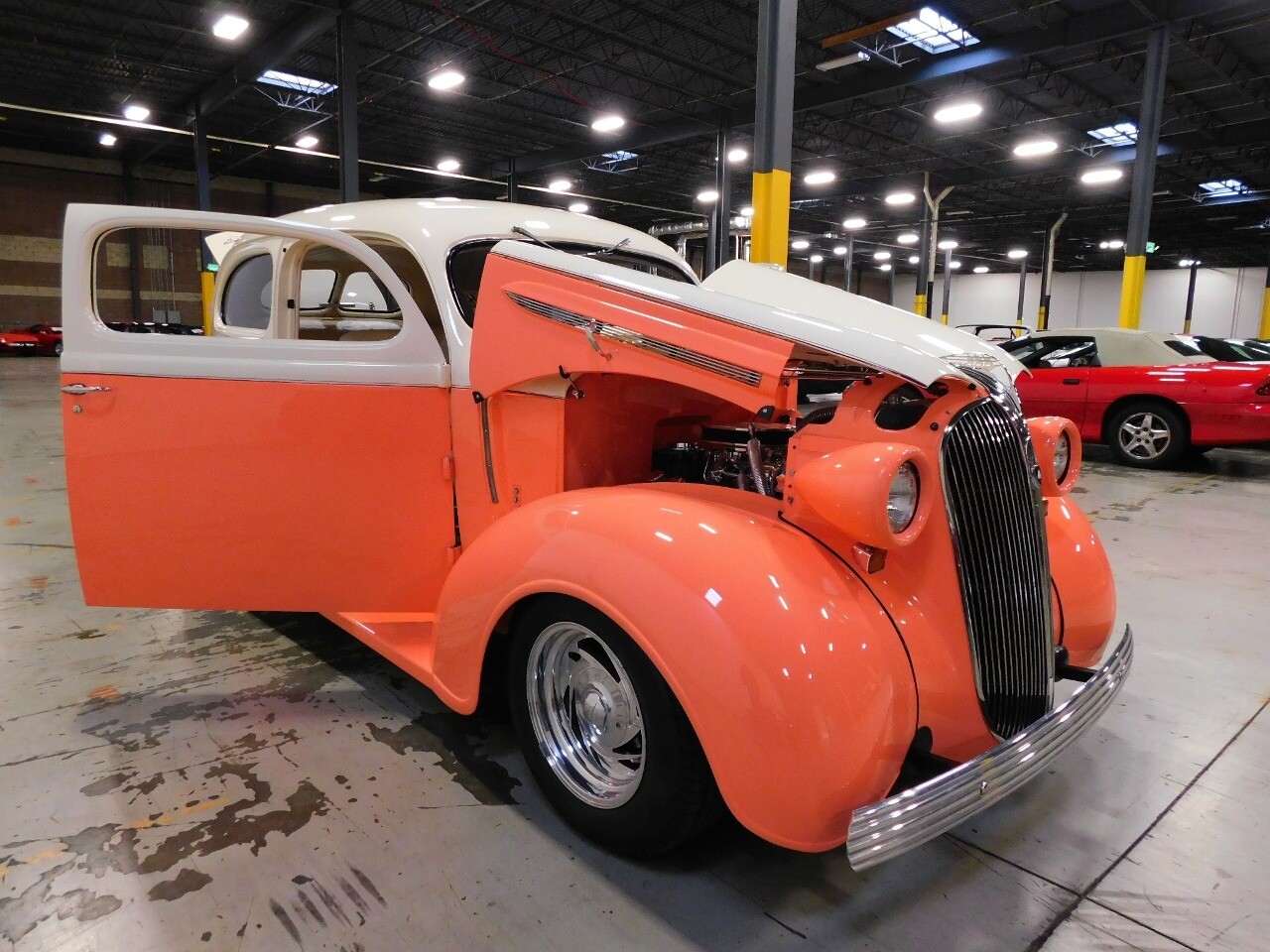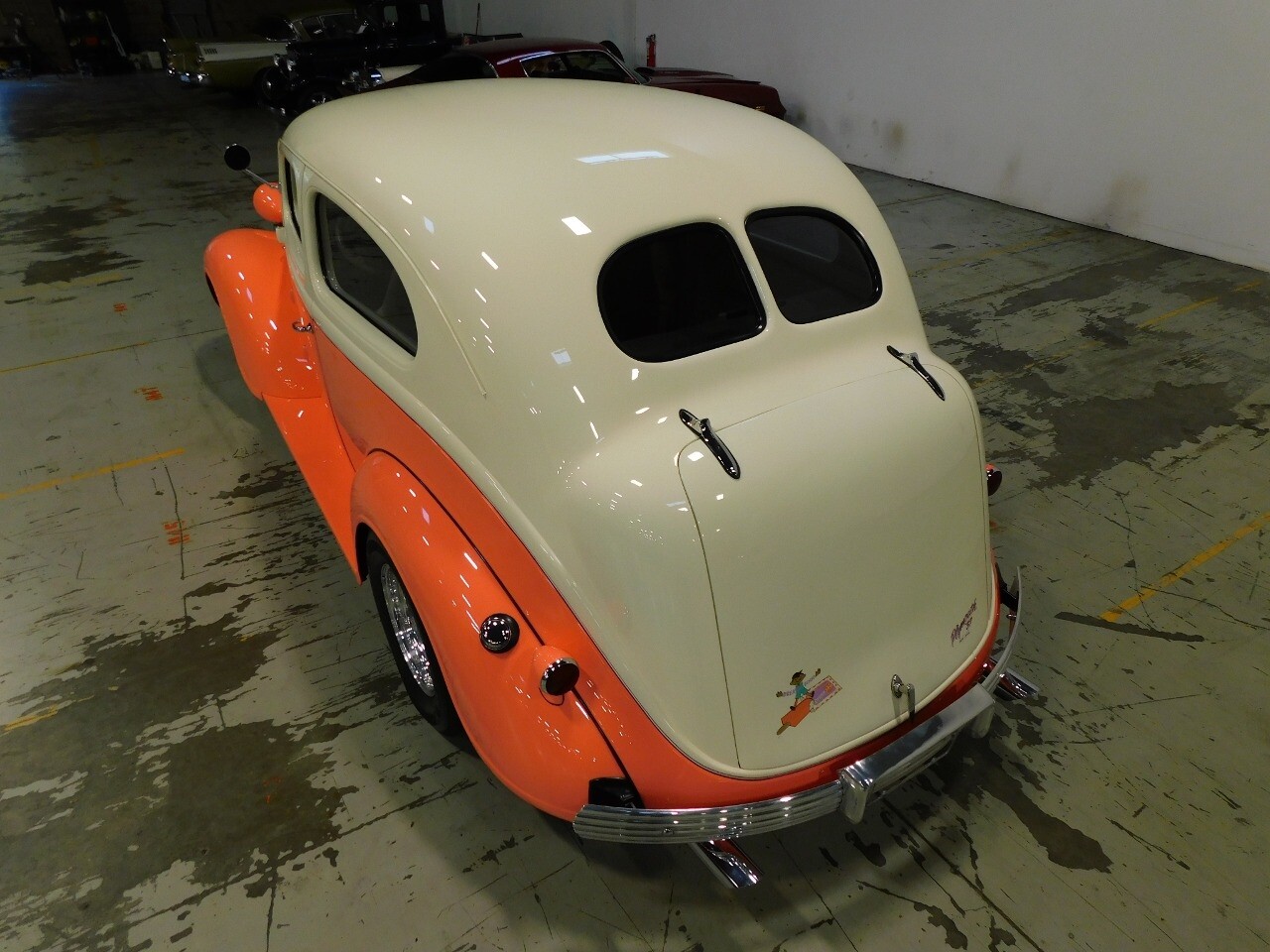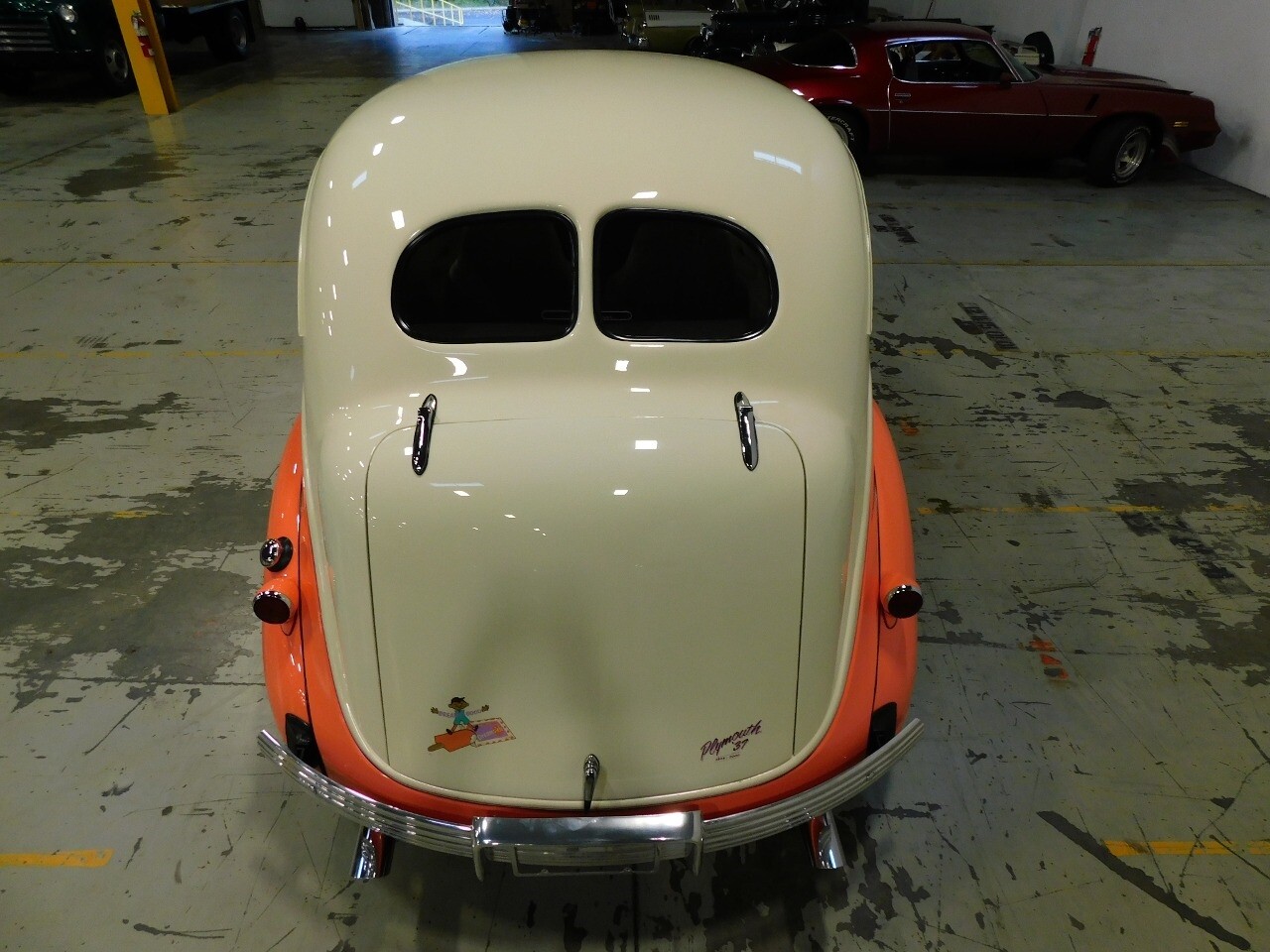 Gateway Classic Cars is happy to present to you this 1937 Plymouth Humpback for sale. This beauty is painted in Vanilla Shake on the top and Orange Sherbet on the bottom. The interior is also a very calm and comforting off white with two sport style seats wrapped in a very soft vinyl. The rear seats provide more than enough room to kick your feet back and enjoy the ride. Powering this 1937 Plymouth is a very dependable 350CID Small Block Chevy V8 dressed in the shiniest of chrome. In fact, this reflective engine compartment sports a chrome carburetor, chrome air compressor, chrome alternator, chrome intake and a chrome master cylinder. This potent 350CID V8 also is packed with Dart heads and has powder coated headers to help this low-key monster breathe properly. All this power is courtesy of a 700R4 Transmission with Overdrive which shifts amazingly. Modern options on this beautiful hot rod include Power Steering, Power Brakes, Power Windows, Air Conditioning, AM/FM Radio CD Player, Cruise Control and Seat Belts. This well built hot rod has a great stance thanks to its Mustang 2 Suspension up front and the Camaro 276 Rear End. Options include AC, Cruise control, Power Brakes, Locks, Windows and Steering, Tilt Wheel and Seat belts. .
