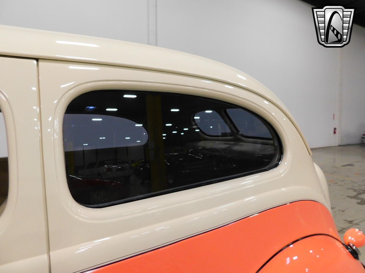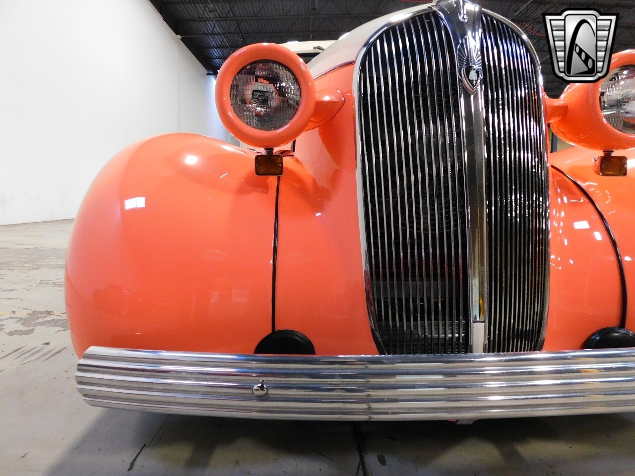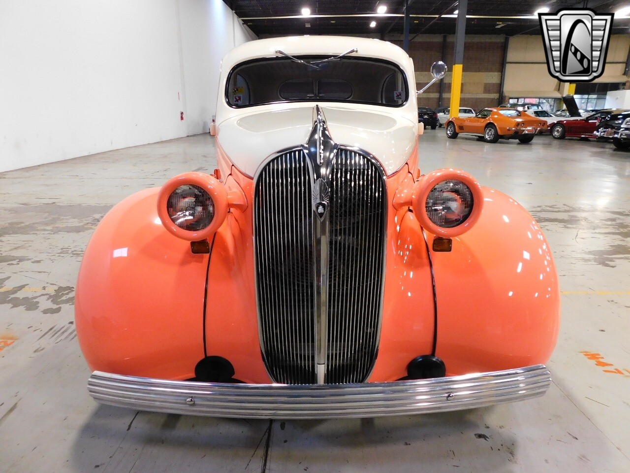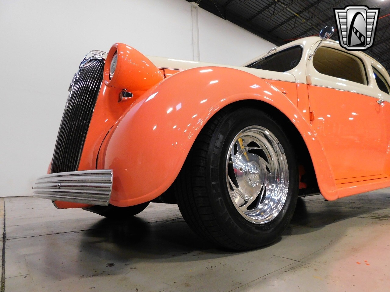 Gateway Classic Cars is happy to present to you this 1937 Plymouth Humpback for sale. This beauty is painted in Vanilla Shake on the top and Orange Sherbet on the bottom. The interior is also a very calm and comforting off white with two sport style seats wrapped in a very soft vinyl. The rear seats provide more than enough room to kick your feet back and enjoy the ride. Powering this 1937 Plymouth is a very dependable 350CID Small Block Chevy V8 dressed in the shiniest of chrome. In fact, this reflective engine compartment sports a chrome carburetor, chrome air compressor, chrome alternator, chrome intake and a chrome master cylinder. This potent 350CID V8 also is packed with Dart heads and has powder coated headers to help this low-key monster breathe properly. All this power is courtesy of a 700R4 Transmission with Overdrive which shifts amazingly. Modern options on this beautiful hot rod include Power Steering, Power Brakes, Power Windows, Air Conditioning, AM/FM Radio CD Player, Cruise Control and Seat Belts. This well built hot rod has a great stance thanks to its Mustang 2 Suspension up front and the Camaro 276 Rear End. Options include AC, Cruise control, Power Brakes, Locks, Windows and Steering, Tilt Wheel and Seat belts. .