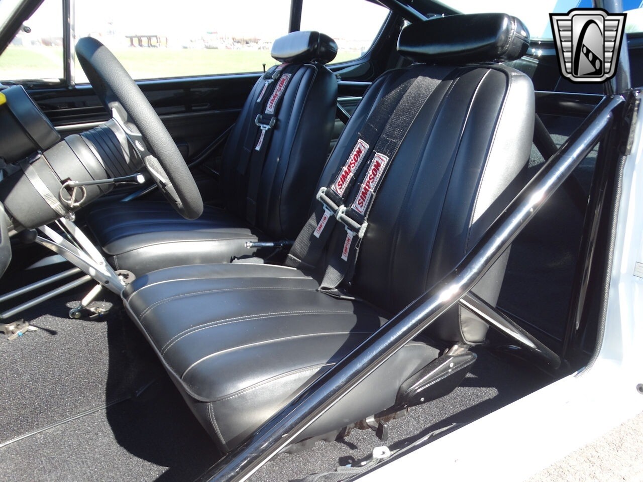 Introducing the iconic 1968 Plymouth Barracuda, a true testament to classic American muscle. This beauty sports a stunning white metallic exterior with blue metallic stripes, a color combination that is sure to turn heads wherever you go. The black interior provides a sleek contrast, further enhancing the car's overall appeal.