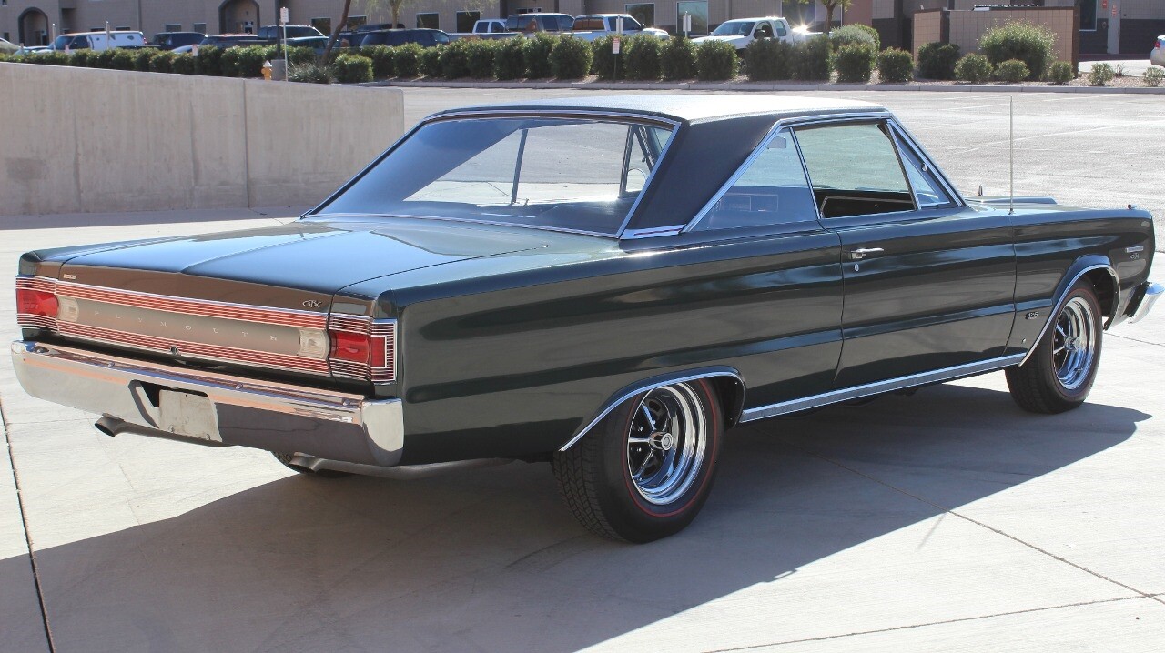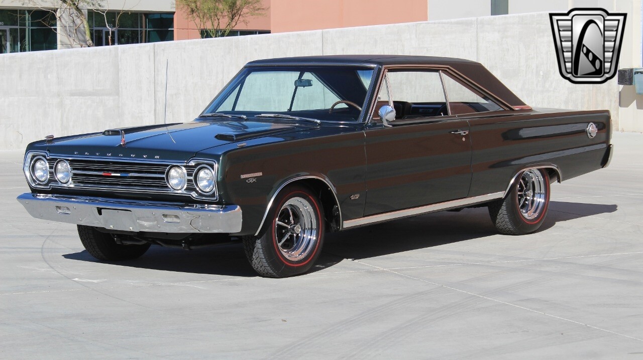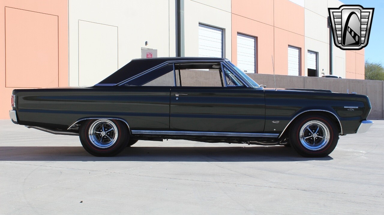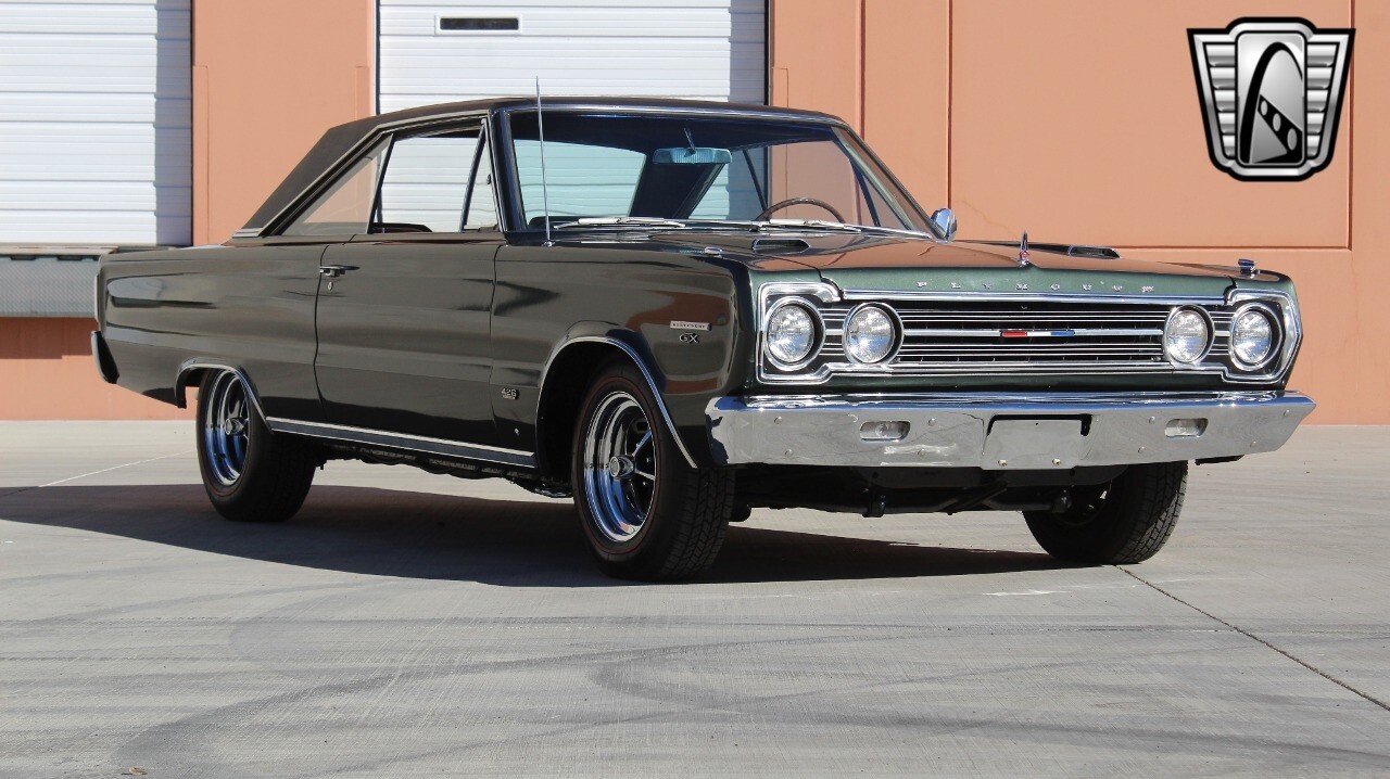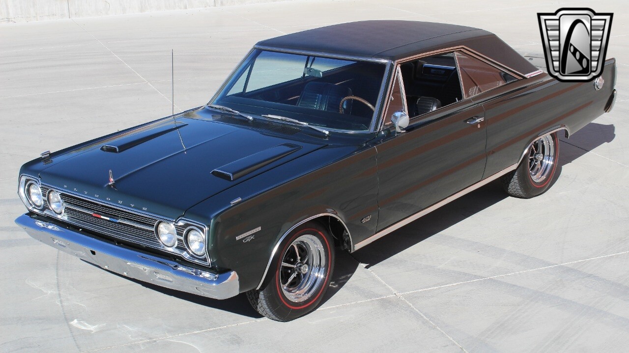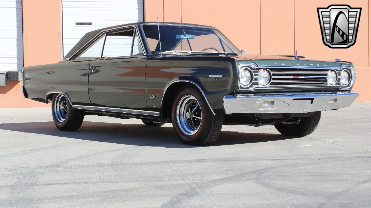 Gateway Classic Cars of Scottsdale is stoked to offer for sale, on consignment, this mean green machine, the 1967 Plymouth GTX. Marketed in 1967 as the "Gentleman's Muscle Car" in print and TV ads, this particular GTX is more of a "Terrify Women and Small Children Muscle Car". Originally a 440 car, the swapped 426 cubic inch Hemi V8 barks loudly when you bring it to life with a little air, fire and gasoline to alert all the small blocks in the neighborhood that the big dog has come out to play. A smooth shifting 727 Torque Flight 3 Speed Automatic transmission helps the 8 3/4 Posi-Traction rear end housing 3:55 gears put copious amounts of power to the ground. The Coker Redline tires beg and plead for grip when you give it the beans while the Hemi reminds you that it's very much capable of moving a 3,999 lb car down the road incredibly well. This example is finished in a gorgeous dark green over black vinyl interior. This is a console shifter car with bucket seats that really make the interior look sporty. Features include Aluminum Wheels, AM Radio, Bias Ply Tires, Power Brakes, Power Steering, Seatbelts, Jack, Spare Tire and an aftermarket tachometer. Contact our sales staff to learn the quick and easy process of obtaining this beauty for your collection and thank you for looking!.