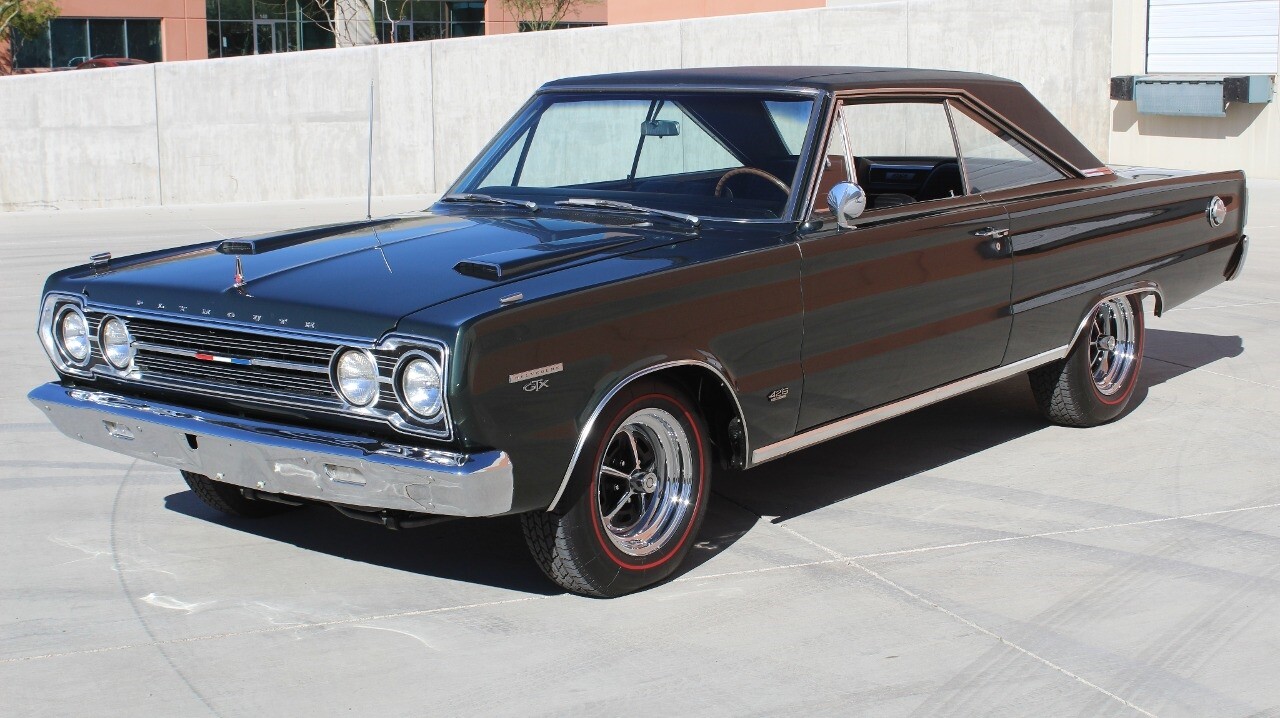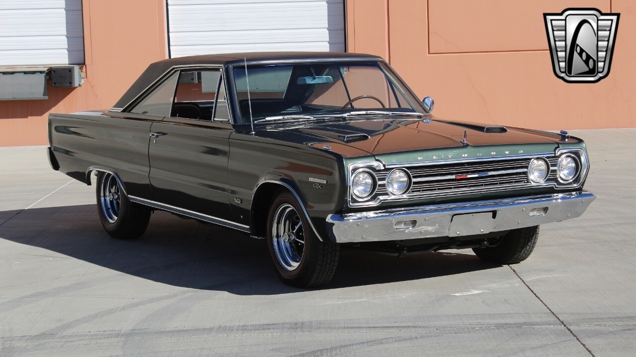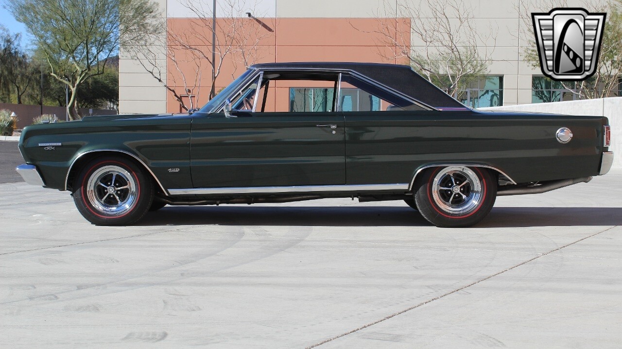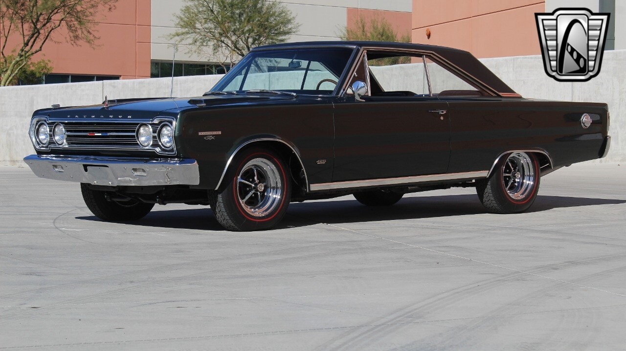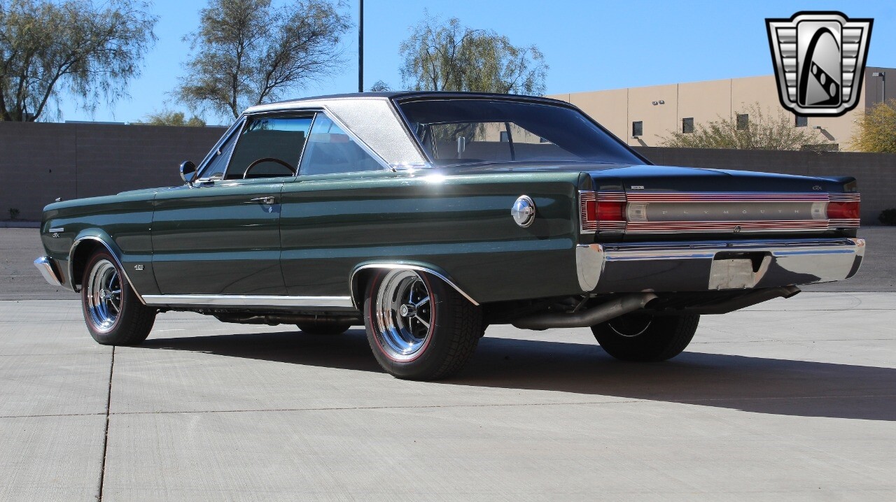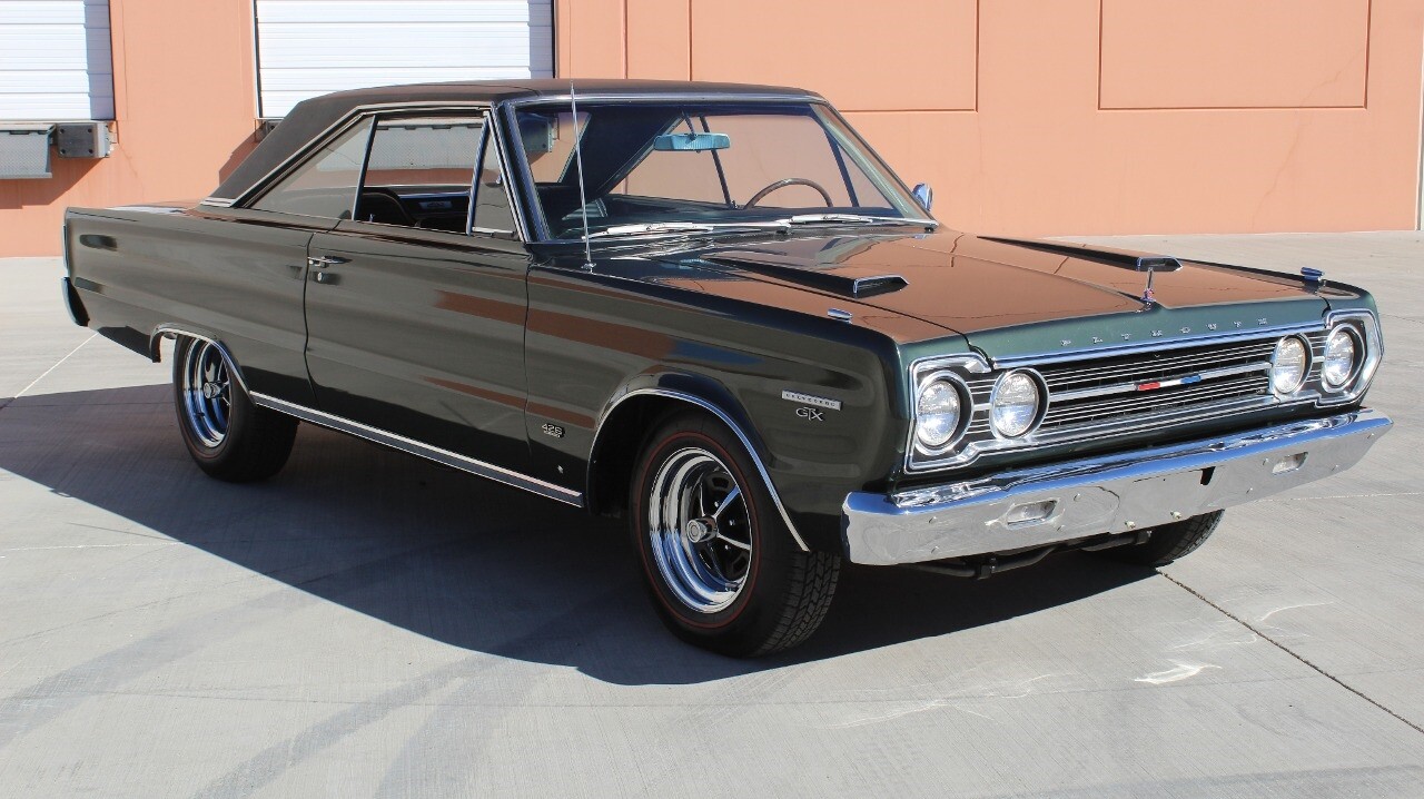 Gateway Classic Cars of Scottsdale is stoked to offer for sale, on consignment, this mean green machine, the 1967 Plymouth GTX. Marketed in 1967 as the "Gentleman's Muscle Car" in print and TV ads, this particular GTX is more of a "Terrify Women and Small Children Muscle Car". Originally a 440 car, the swapped 426 cubic inch Hemi V8 barks loudly when you bring it to life with a little air, fire and gasoline to alert all the small blocks in the neighborhood that the big dog has come out to play. A smooth shifting 727 Torque Flight 3 Speed Automatic transmission helps the 8 3/4 Posi-Traction rear end housing 3:55 gears put copious amounts of power to the ground. The Coker Redline tires beg and plead for grip when you give it the beans while the Hemi reminds you that it's very much capable of moving a 3,999 lb car down the road incredibly well. This example is finished in a gorgeous dark green over black vinyl interior. This is a console shifter car with bucket seats that really make the interior look sporty. Features include Aluminum Wheels, AM Radio, Bias Ply Tires, Power Brakes, Power Steering, Seatbelts, Jack, Spare Tire and an aftermarket tachometer. Contact our sales staff to learn the quick and easy process of obtaining this beauty for your collection and thank you for looking!.