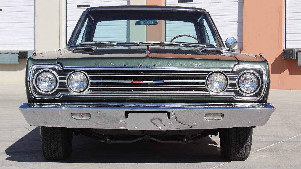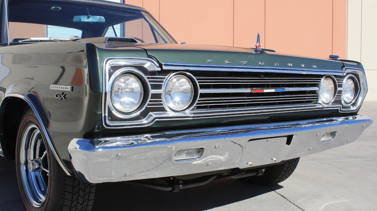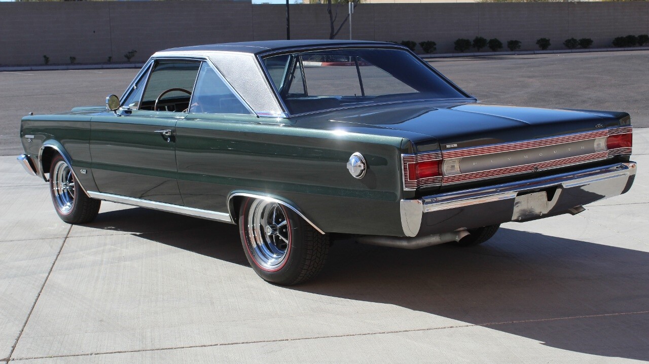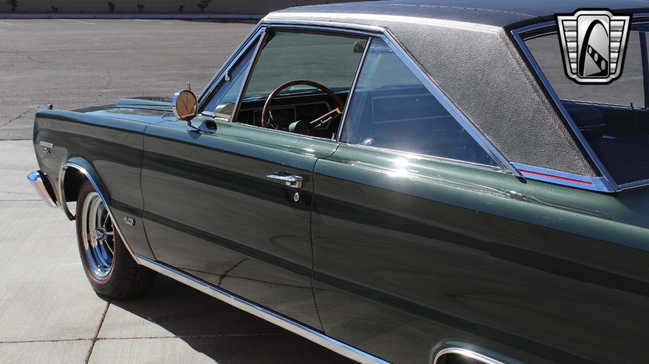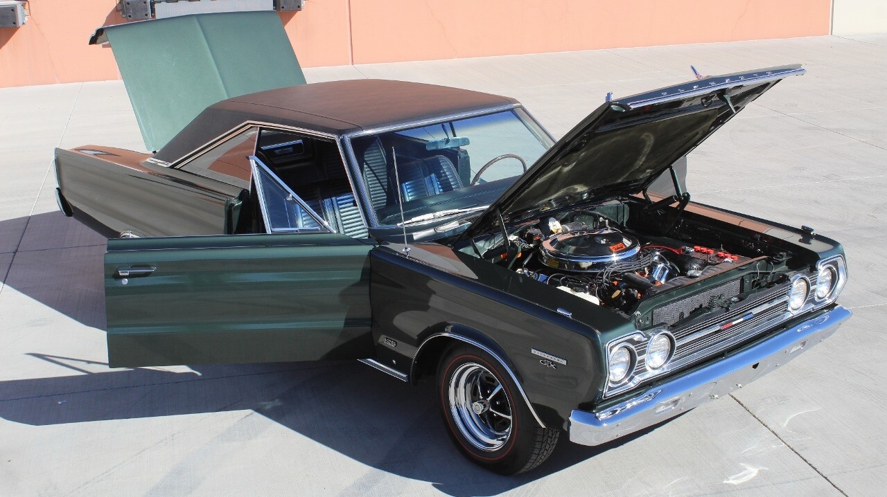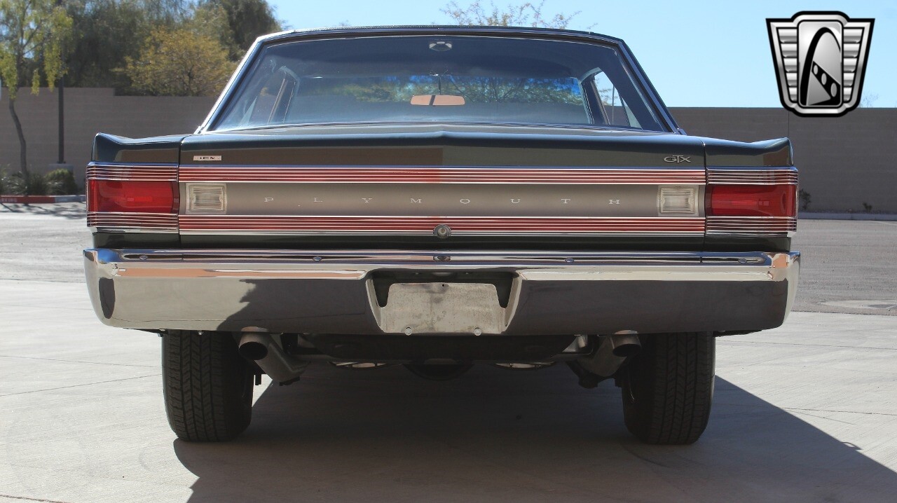 Gateway Classic Cars of Scottsdale is stoked to offer for sale, on consignment, this mean green machine, the 1967 Plymouth GTX. Marketed in 1967 as the "Gentleman's Muscle Car" in print and TV ads, this particular GTX is more of a "Terrify Women and Small Children Muscle Car". Originally a 440 car, the swapped 426 cubic inch Hemi V8 barks loudly when you bring it to life with a little air, fire and gasoline to alert all the small blocks in the neighborhood that the big dog has come out to play. A smooth shifting 727 Torque Flight 3 Speed Automatic transmission helps the 8 3/4 Posi-Traction rear end housing 3:55 gears put copious amounts of power to the ground. The Coker Redline tires beg and plead for grip when you give it the beans while the Hemi reminds you that it's very much capable of moving a 3,999 lb car down the road incredibly well. This example is finished in a gorgeous dark green over black vinyl interior. This is a console shifter car with bucket seats that really make the interior look sporty. Features include Aluminum Wheels, AM Radio, Bias Ply Tires, Power Brakes, Power Steering, Seatbelts, Jack, Spare Tire and an aftermarket tachometer. Contact our sales staff to learn the quick and easy process of obtaining this beauty for your collection and thank you for looking!.