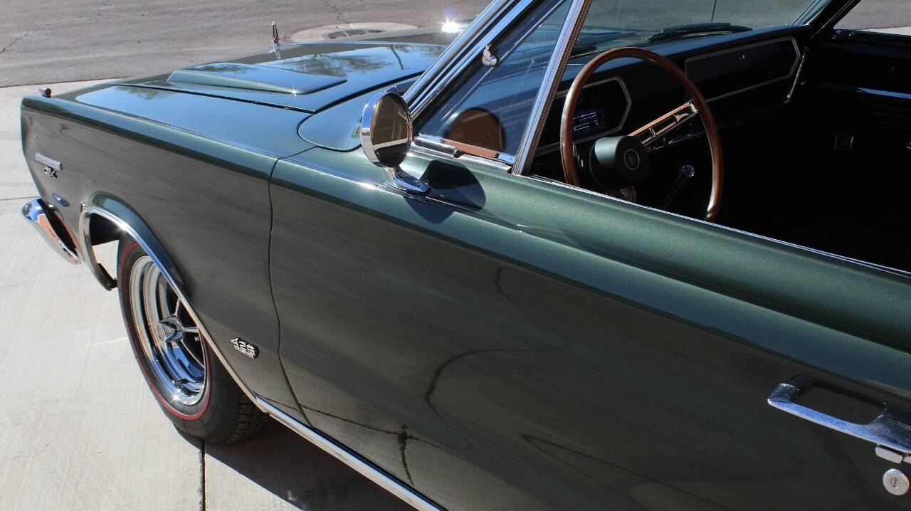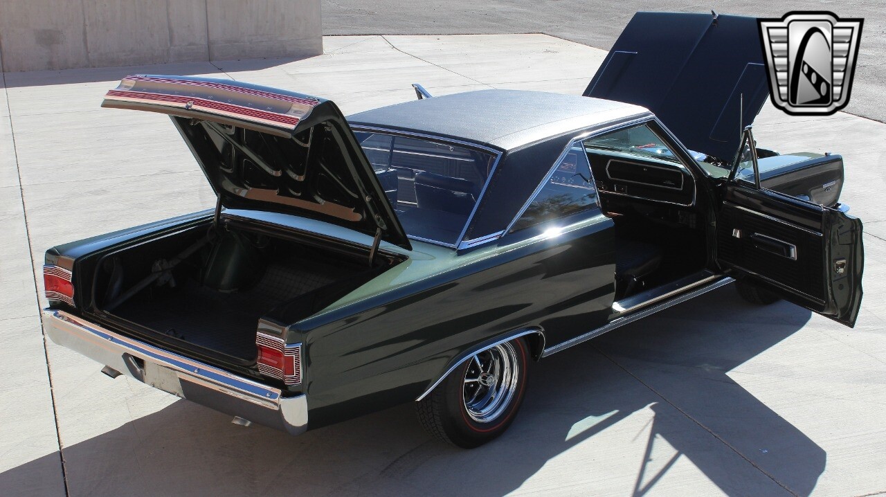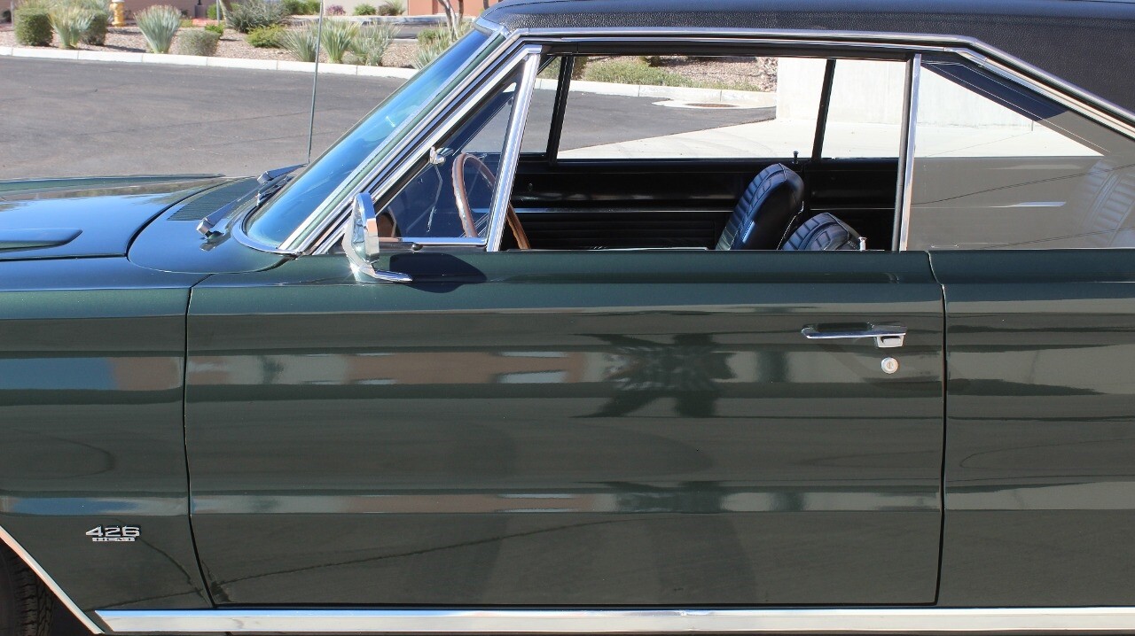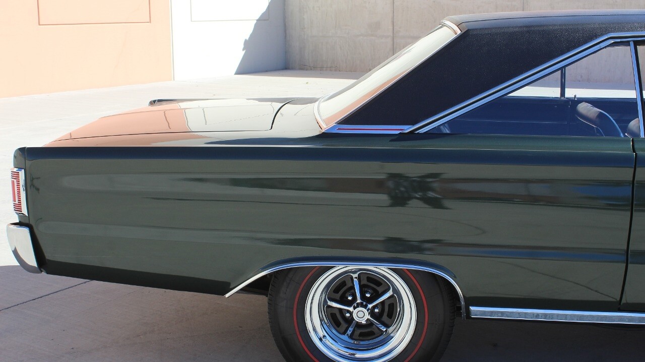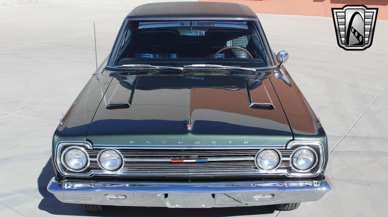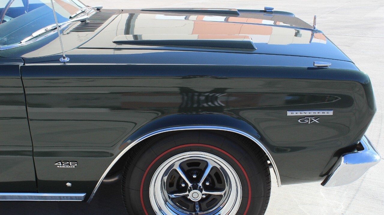 Gateway Classic Cars of Scottsdale is stoked to offer for sale, on consignment, this mean green machine, the 1967 Plymouth GTX. Marketed in 1967 as the "Gentleman's Muscle Car" in print and TV ads, this particular GTX is more of a "Terrify Women and Small Children Muscle Car". Originally a 440 car, the swapped 426 cubic inch Hemi V8 barks loudly when you bring it to life with a little air, fire and gasoline to alert all the small blocks in the neighborhood that the big dog has come out to play. A smooth shifting 727 Torque Flight 3 Speed Automatic transmission helps the 8 3/4 Posi-Traction rear end housing 3:55 gears put copious amounts of power to the ground. The Coker Redline tires beg and plead for grip when you give it the beans while the Hemi reminds you that it's very much capable of moving a 3,999 lb car down the road incredibly well. This example is finished in a gorgeous dark green over black vinyl interior. This is a console shifter car with bucket seats that really make the interior look sporty. Features include Aluminum Wheels, AM Radio, Bias Ply Tires, Power Brakes, Power Steering, Seatbelts, Jack, Spare Tire and an aftermarket tachometer. Contact our sales staff to learn the quick and easy process of obtaining this beauty for your collection and thank you for looking!.