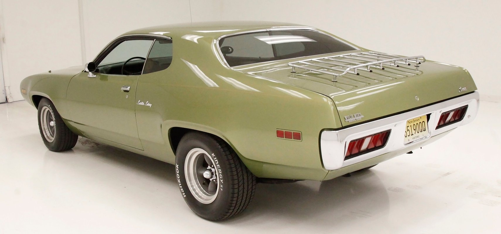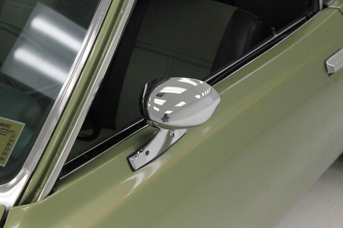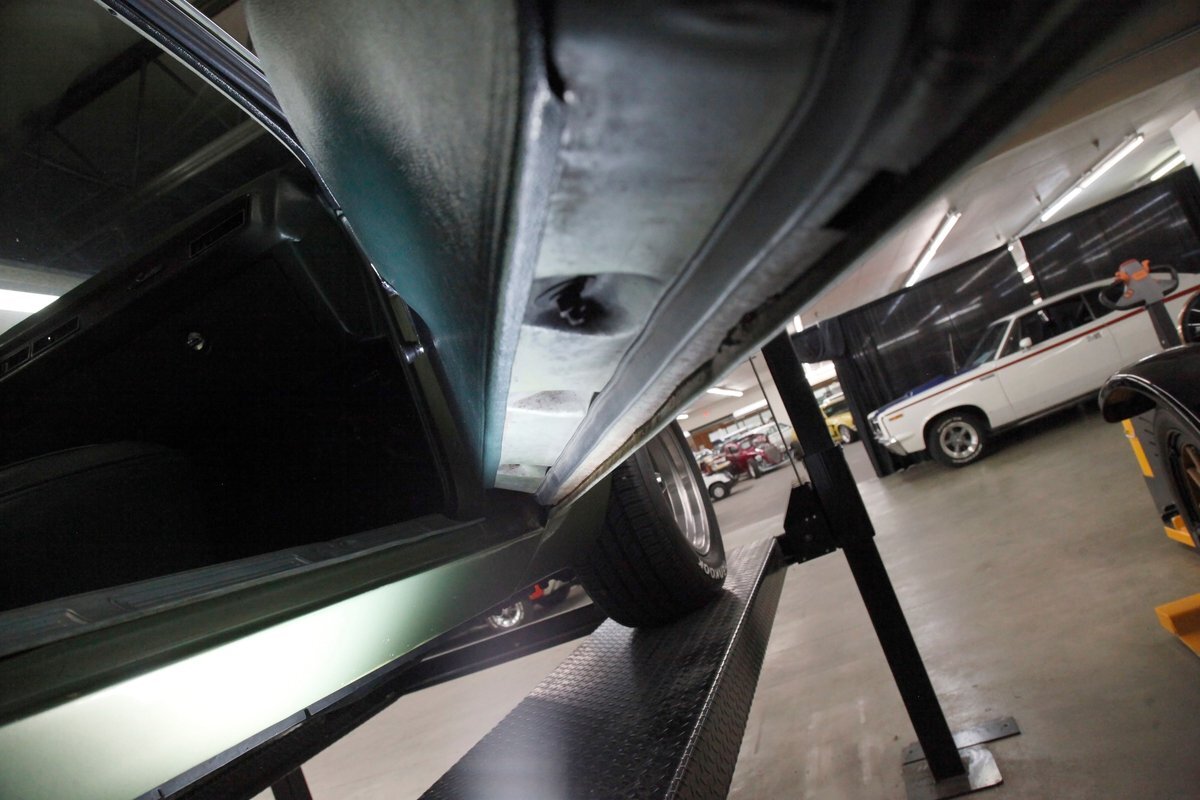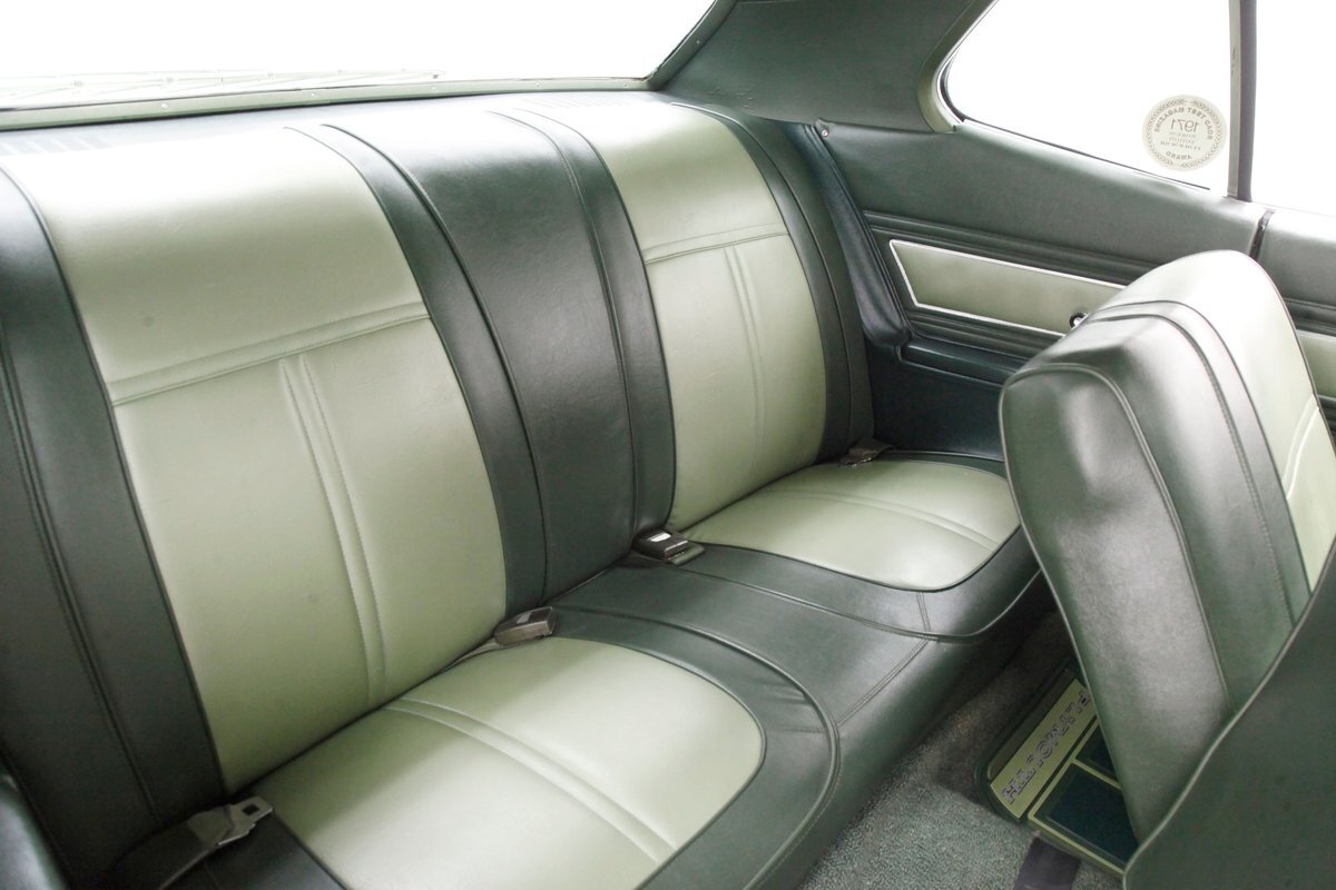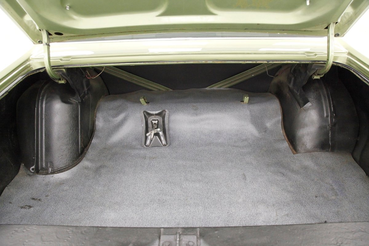 With a near show quality finish for the carefully resprayed body done with fender tag matching Amber Sherwood Green Metallic, it will be difficult to find any fault on this fuselage looker other than some small inclusions down low. Great looking Satellite Sebring script trim is seen dressing the coke bottle sides, and going around the front wheel well, then headed back through the door and rear quarter panel where it goes for another up and down ride around the rear wheel well, and finally ending at the rear bumper is an embossed body line giving the look of motion even when standing still. Speaking of the bumpers, they're both new and for the front is an ovalesque chrome surrounding the quad headlights, grill assembly and the traditional red white and blue Satellite emblem. Signal markers are mounted down below on the valance and all front lighting has been updated to CIBIE high power LED bulbs. A large slightly inward scooped hood wears not only hood pins but is flanked outboard by some body colored fender mounted turn signals. Well polished stainless surrounds dress the clear and clean glass and new chrome sport mirrors are dressing both doors. Out back, the flat rectangular trunk lid has been fitted with a new chrome laden luggage rack. New tail light lenses with LED bulbs sit within black trimmings and are surrounded by the all encompassing new chrome rear bumper. 1970's era American Racing Torque Thrust wheels dress the 4's and are wrapped in raised white letter staggered width Hankook rubber from 2021, and there you have it...Sebring trim.