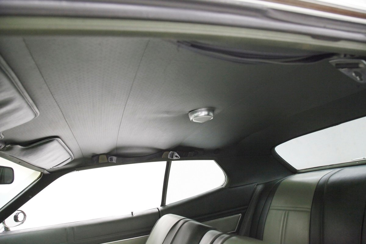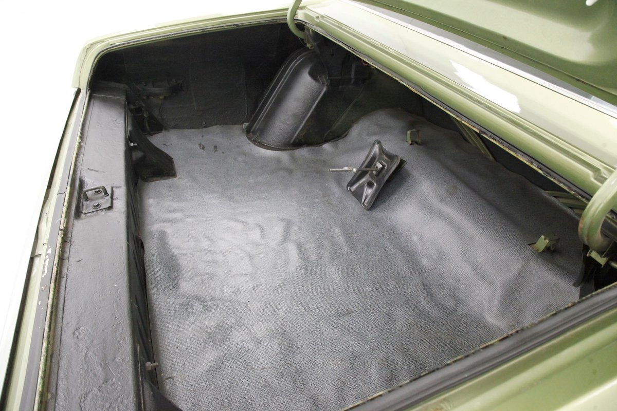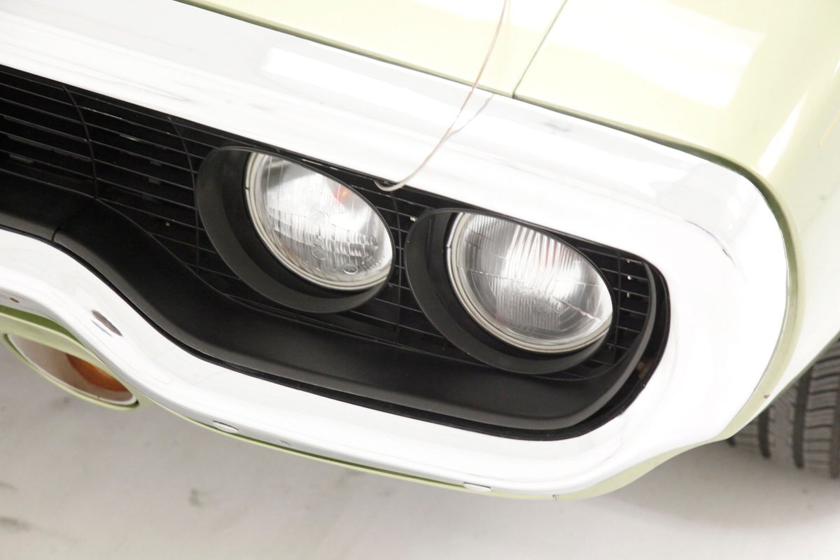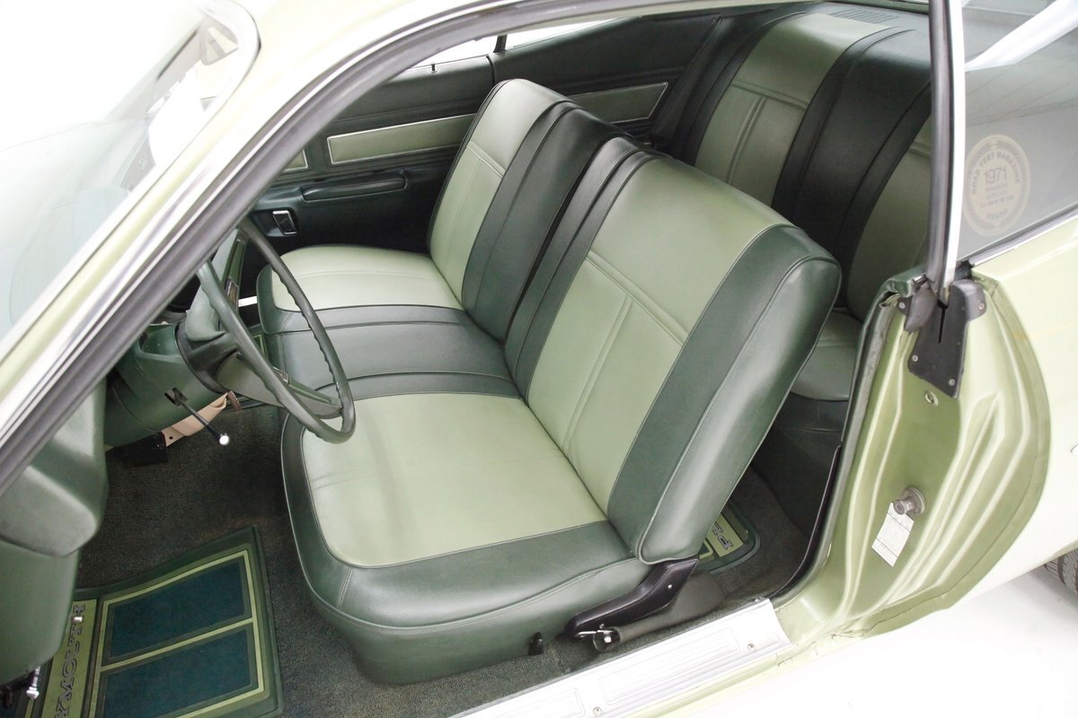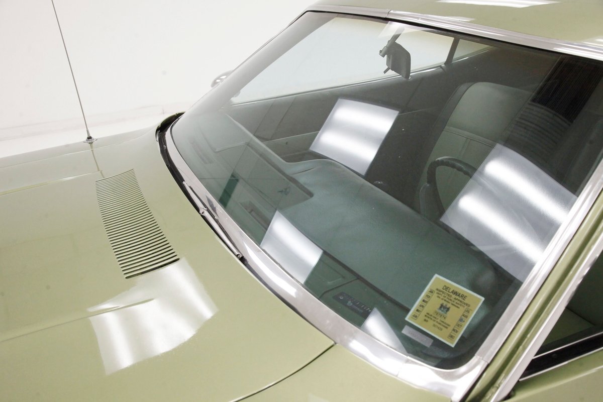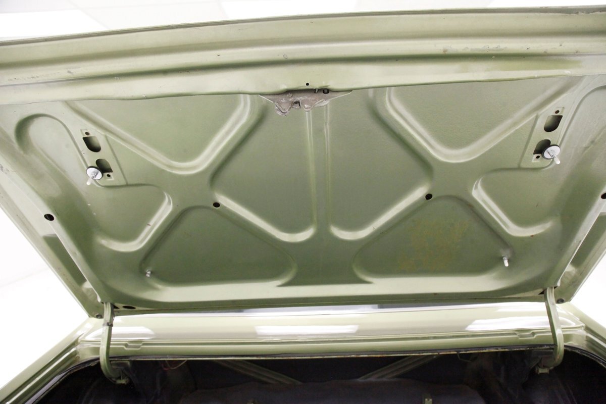 With a near show quality finish for the carefully resprayed body done with fender tag matching Amber Sherwood Green Metallic, it will be difficult to find any fault on this fuselage looker other than some small inclusions down low. Great looking Satellite Sebring script trim is seen dressing the coke bottle sides, and going around the front wheel well, then headed back through the door and rear quarter panel where it goes for another up and down ride around the rear wheel well, and finally ending at the rear bumper is an embossed body line giving the look of motion even when standing still. Speaking of the bumpers, they're both new and for the front is an ovalesque chrome surrounding the quad headlights, grill assembly and the traditional red white and blue Satellite emblem. Signal markers are mounted down below on the valance and all front lighting has been updated to CIBIE high power LED bulbs. A large slightly inward scooped hood wears not only hood pins but is flanked outboard by some body colored fender mounted turn signals. Well polished stainless surrounds dress the clear and clean glass and new chrome sport mirrors are dressing both doors. Out back, the flat rectangular trunk lid has been fitted with a new chrome laden luggage rack. New tail light lenses with LED bulbs sit within black trimmings and are surrounded by the all encompassing new chrome rear bumper. 1970's era American Racing Torque Thrust wheels dress the 4's and are wrapped in raised white letter staggered width Hankook rubber from 2021, and there you have it...Sebring trim.
