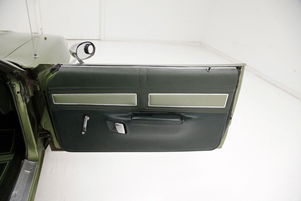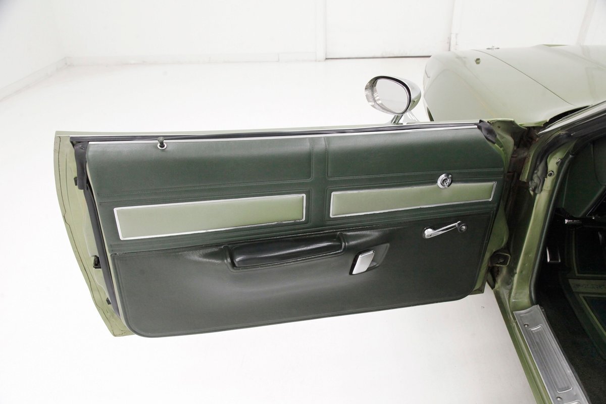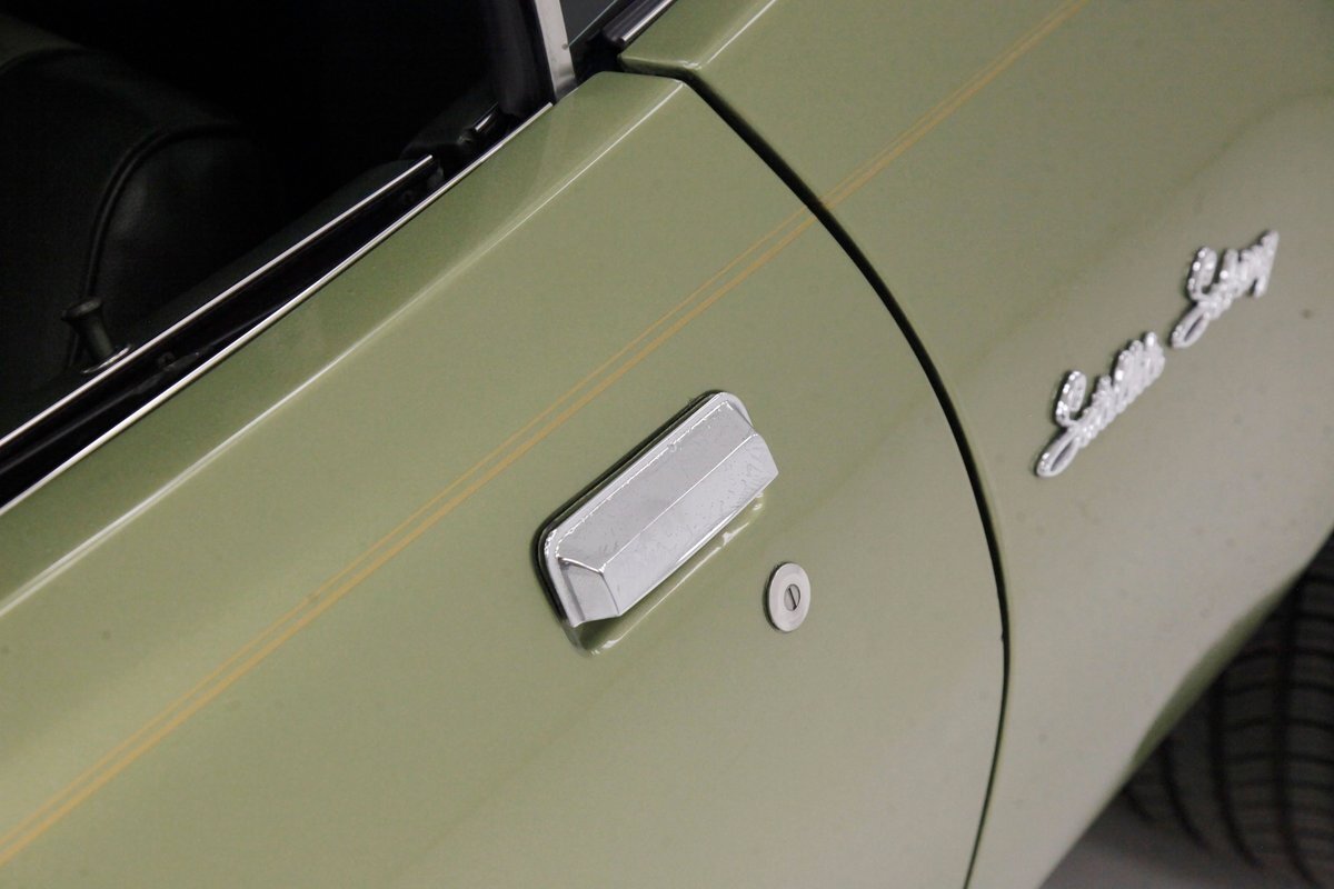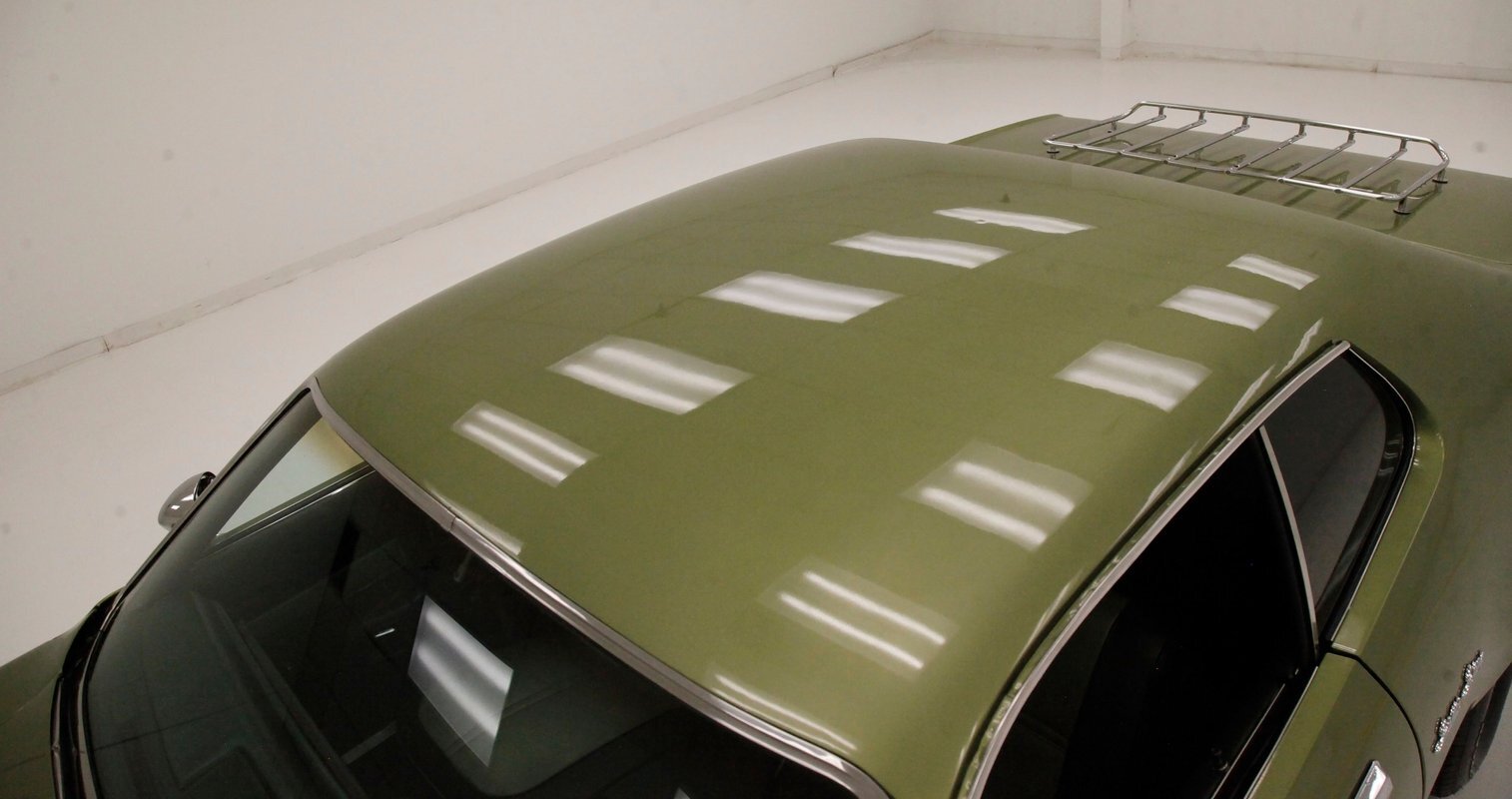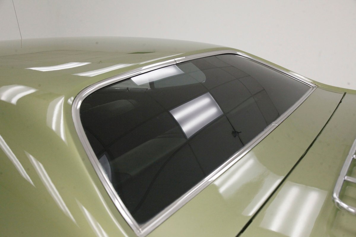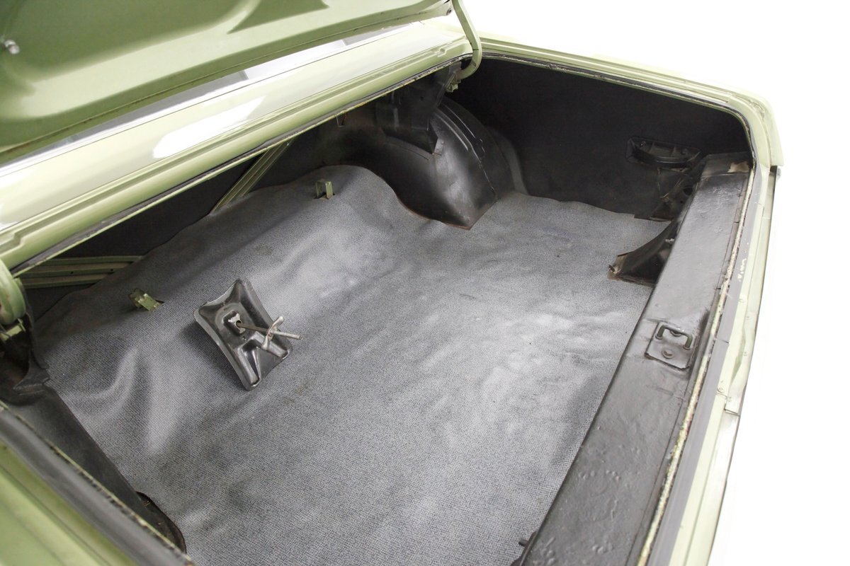With a near show quality finish for the carefully resprayed body done with fender tag matching Amber Sherwood Green Metallic, it will be difficult to find any fault on this fuselage looker other than some small inclusions down low. Great looking Satellite Sebring script trim is seen dressing the coke bottle sides, and going around the front wheel well, then headed back through the door and rear quarter panel where it goes for another up and down ride around the rear wheel well, and finally ending at the rear bumper is an embossed body line giving the look of motion even when standing still. Speaking of the bumpers, they're both new and for the front is an ovalesque chrome surrounding the quad headlights, grill assembly and the traditional red white and blue Satellite emblem. Signal markers are mounted down below on the valance and all front lighting has been updated to CIBIE high power LED bulbs. A large slightly inward scooped hood wears not only hood pins but is flanked outboard by some body colored fender mounted turn signals. Well polished stainless surrounds dress the clear and clean glass and new chrome sport mirrors are dressing both doors. Out back, the flat rectangular trunk lid has been fitted with a new chrome laden luggage rack. New tail light lenses with LED bulbs sit within black trimmings and are surrounded by the all encompassing new chrome rear bumper. 1970's era American Racing Torque Thrust wheels dress the 4's and are wrapped in raised white letter staggered width Hankook rubber from 2021, and there you have it...Sebring trim.