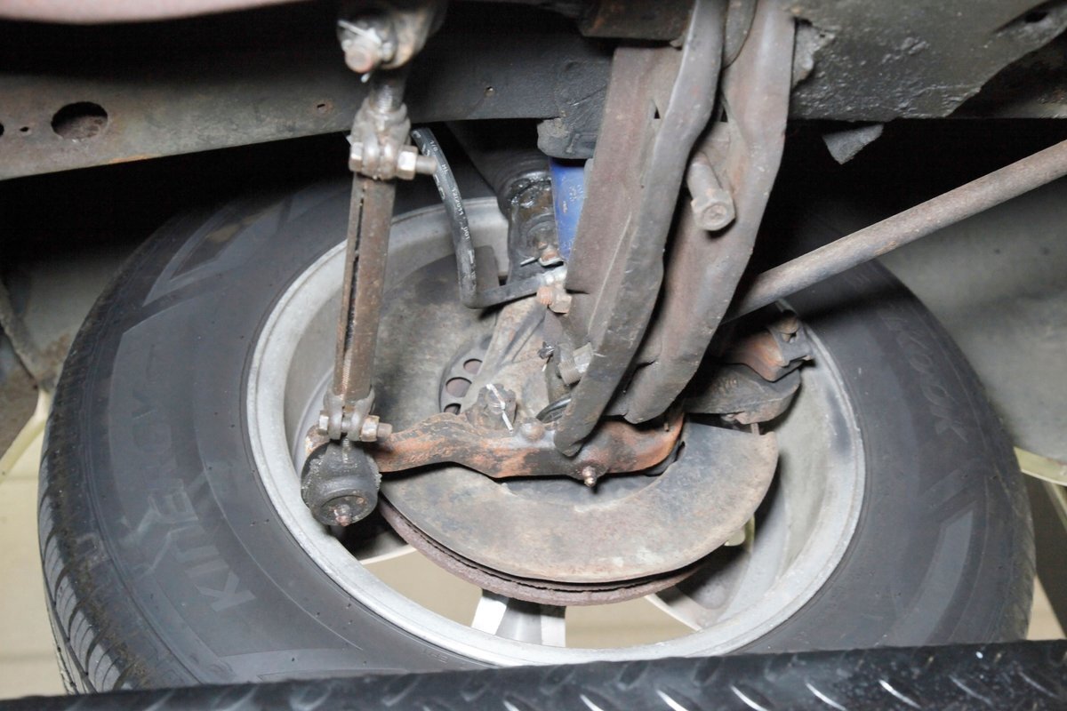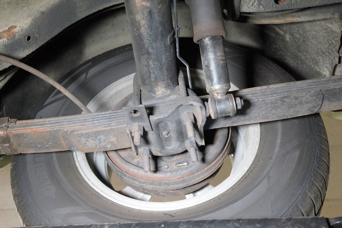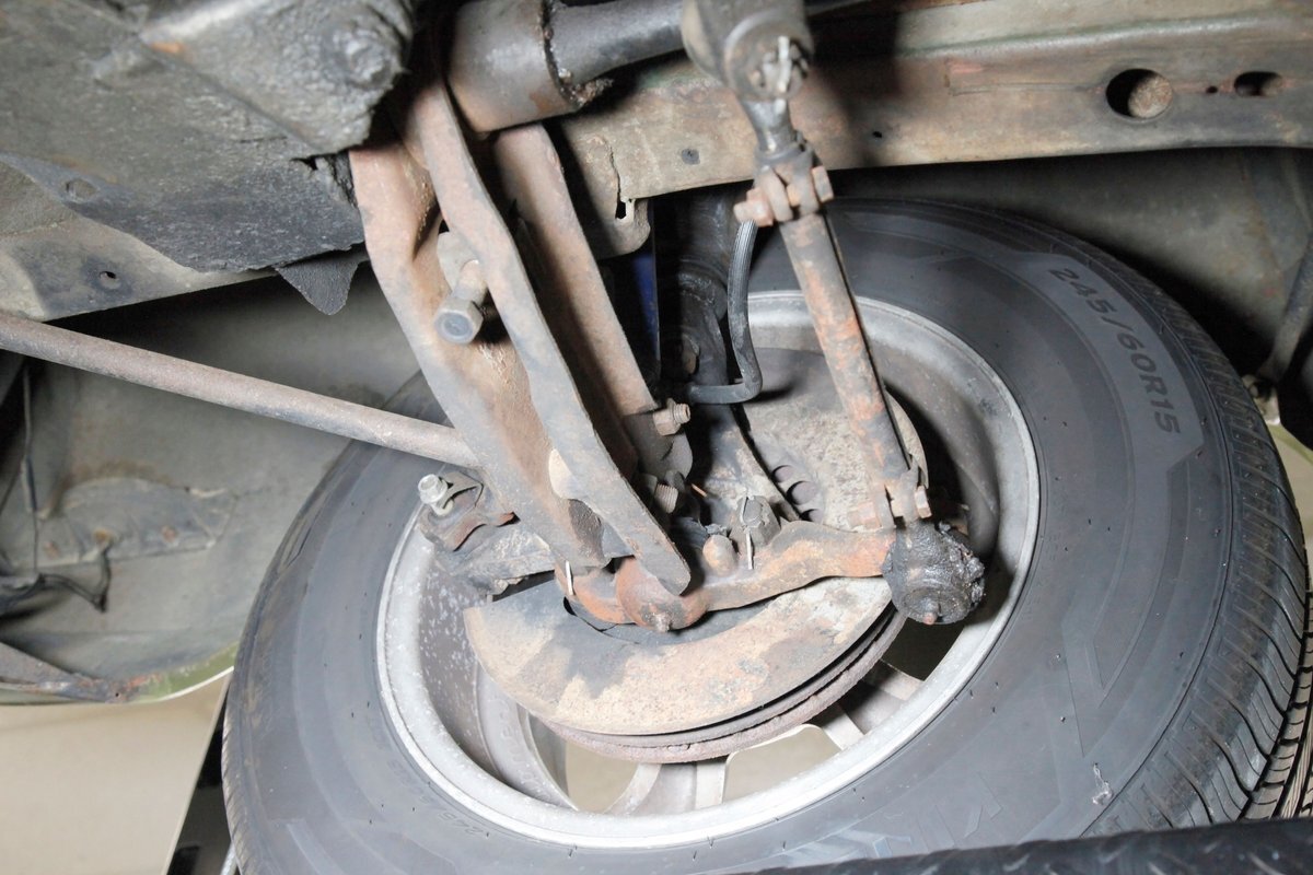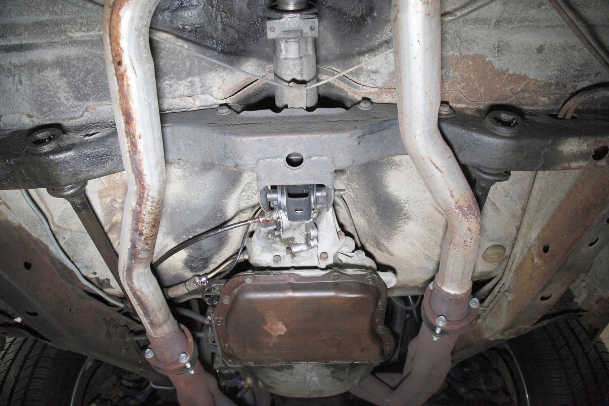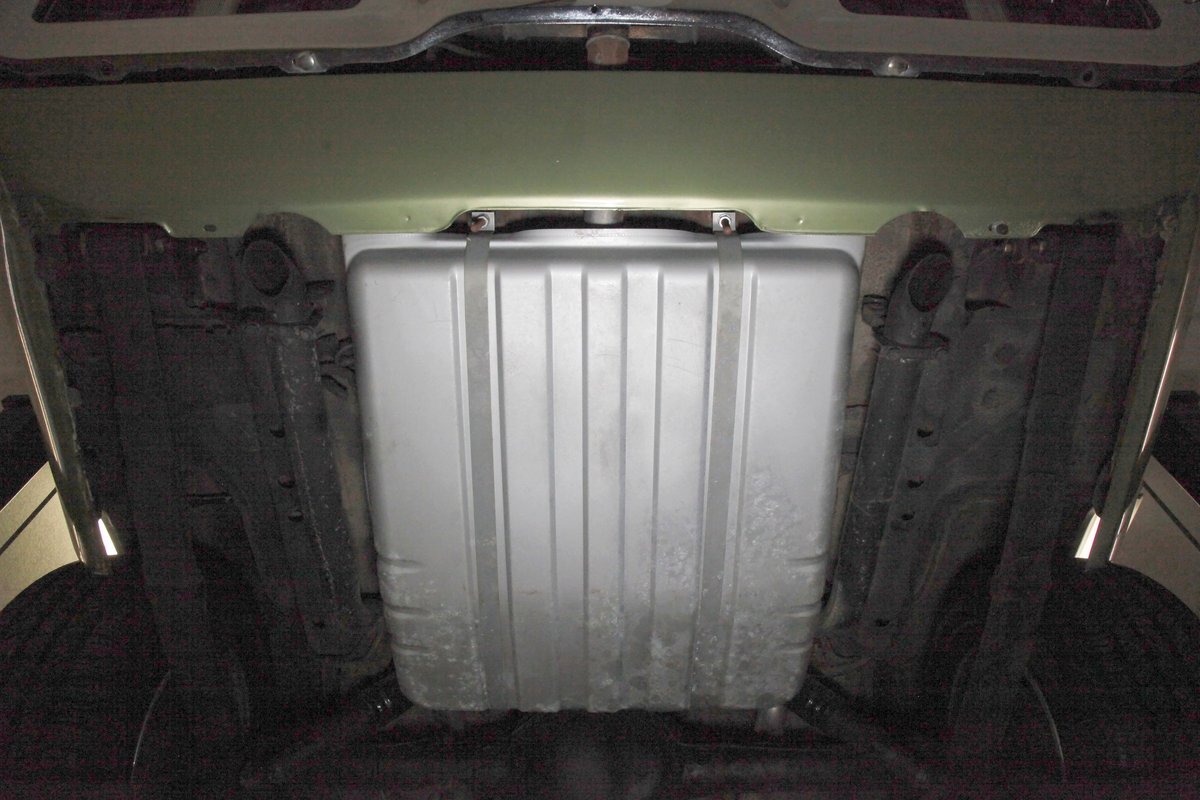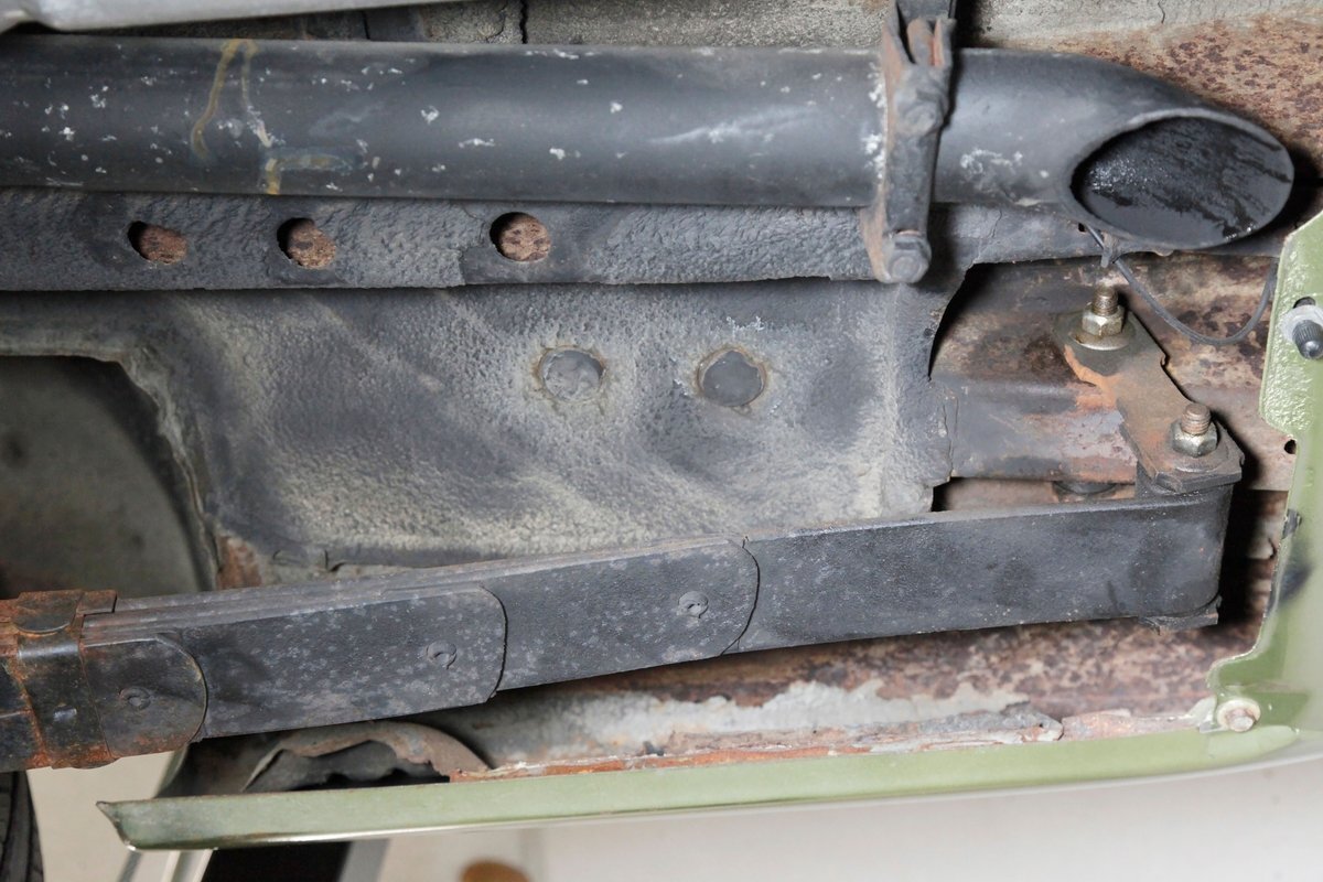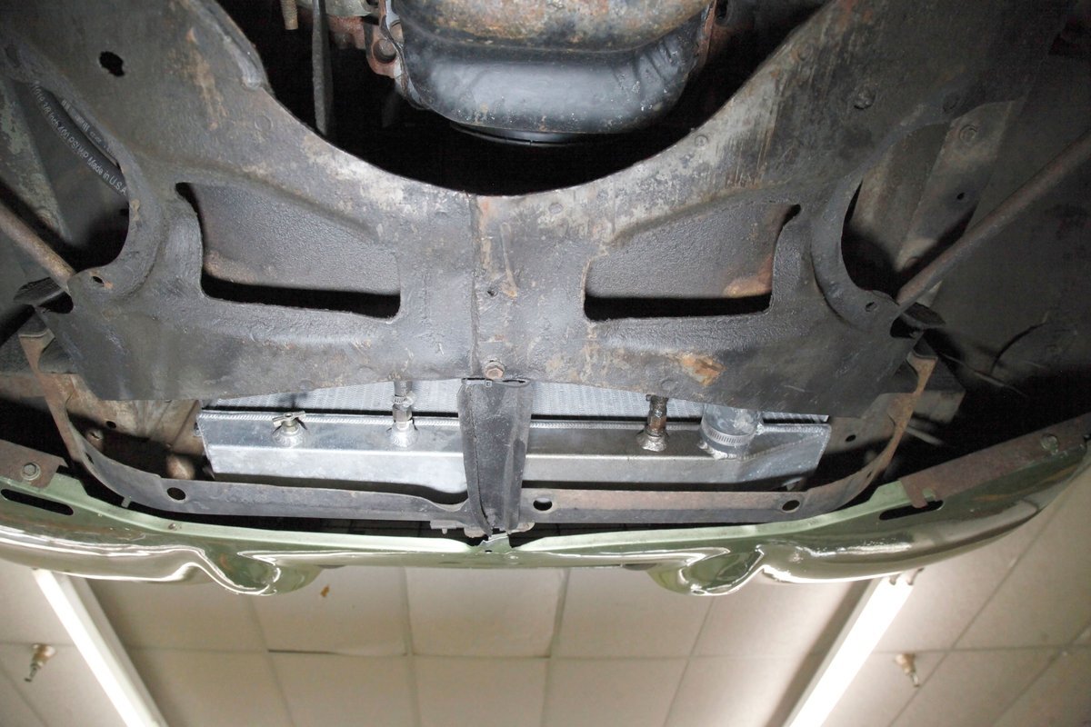 Slight surface rust is noted on an otherwise clean undercoated and patinaed frame and floor panels as well as underside of rockers. A newer Flowmaster dual exhaust snakes its way rearward from the headers attached to the 318ci mill. Providing the ride is an independent torsion bar front suspension with new ball joints and new air shocks and in the back we note leaf springs with more new air shocks. We note a new master cylinder actuating the power disc brakes with new hoses up front and power drums in the rear along with a new fuel tank. Our consignor also notes that the power steering box and power steering pump are also new.
