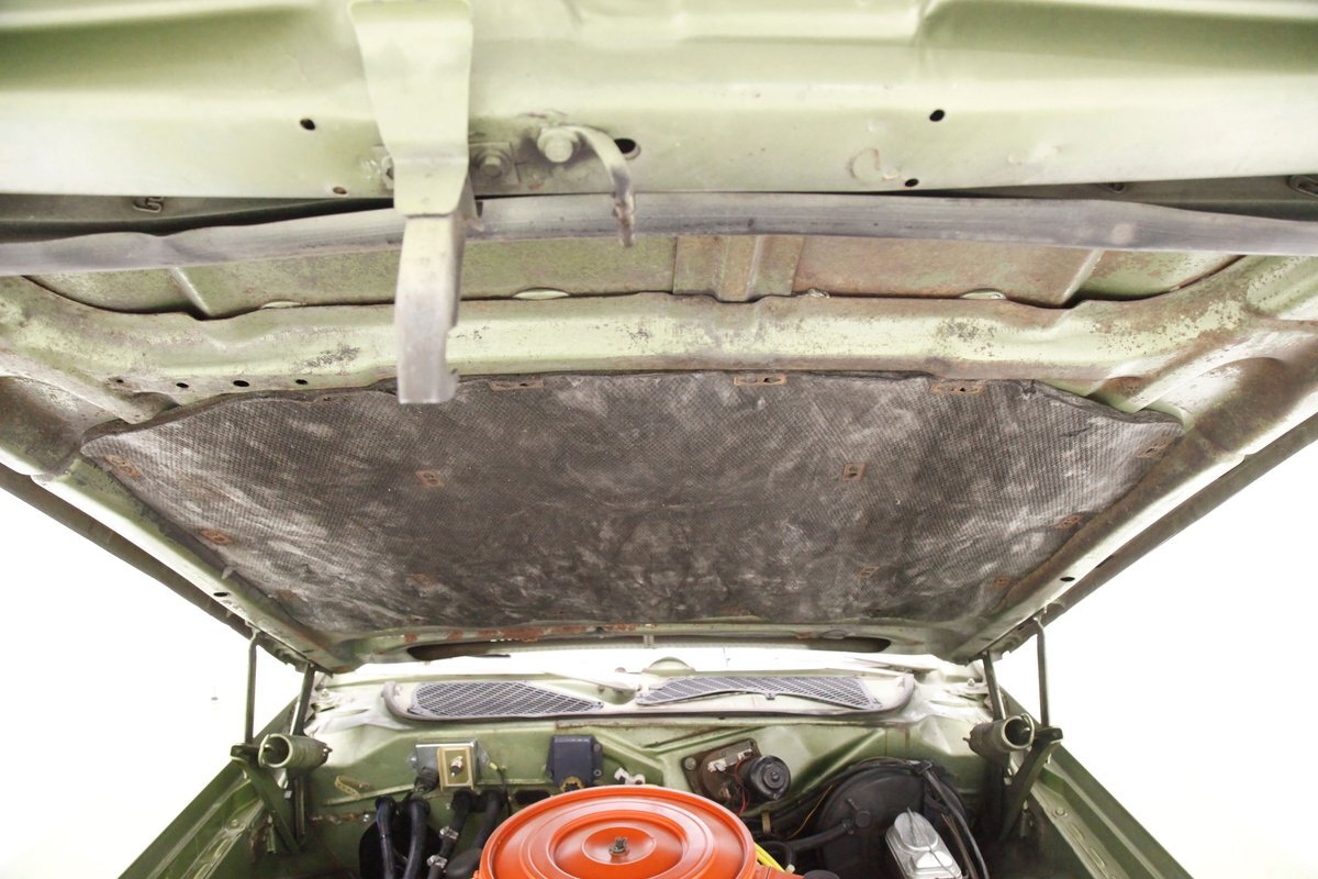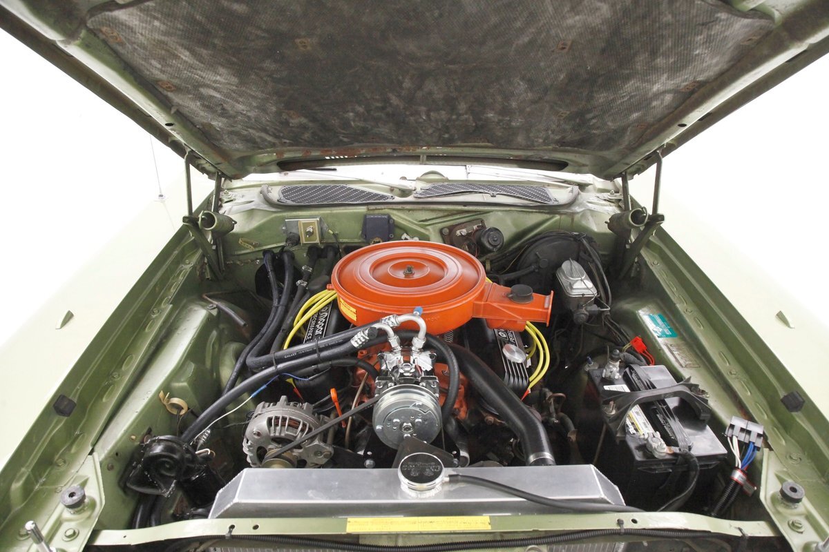 An unbelievably clean engine which touts 318ci displacement and Hemi Orange paint has all kinds of shine and little corrosion on any surface, as well as electronic ignition. This is a correct, but not original, remanufactured engine from ATK. The standard rebuilt 2-barrel carburetor sits atop with a flawless air cleaner in orange protecting the carb. This mill has been treated to a new water pump, a fresh tune up, a new alternator and voltage regulator, new high torque starter, new oil pump, new fuel pump and filter, and a new Champion 3 row aluminum radiator is on to keep things cool. Bolted on to the back is a rebuilt with new torque converter A904 TorqueFlite automatic transmission and a 8 1/4" rear axle with 2.71 gearing rounds out the package. Our consignor notes that all the fluids have been replaced to ensure reliable service.