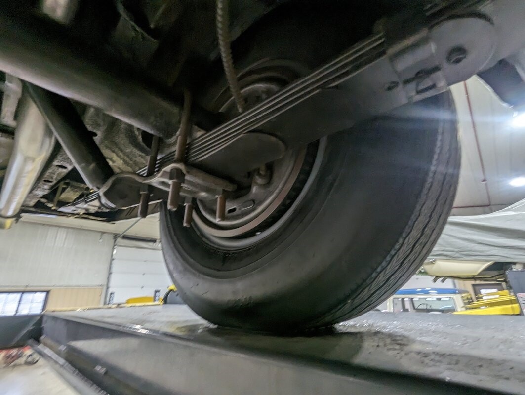 SERVICE: We spent $3,000 servicing this one. We replaced the spark plugs and adjusted idle, repaired back up lights, went through dash wiring and lights to make sure all are functional, gave it a front-end alignment, fixed the brake lights, replaced driver window channels, replaced passenger window regulator. New door locks and cylinders installed. Reconditioned drum brakes, bled and filled brake fluid.