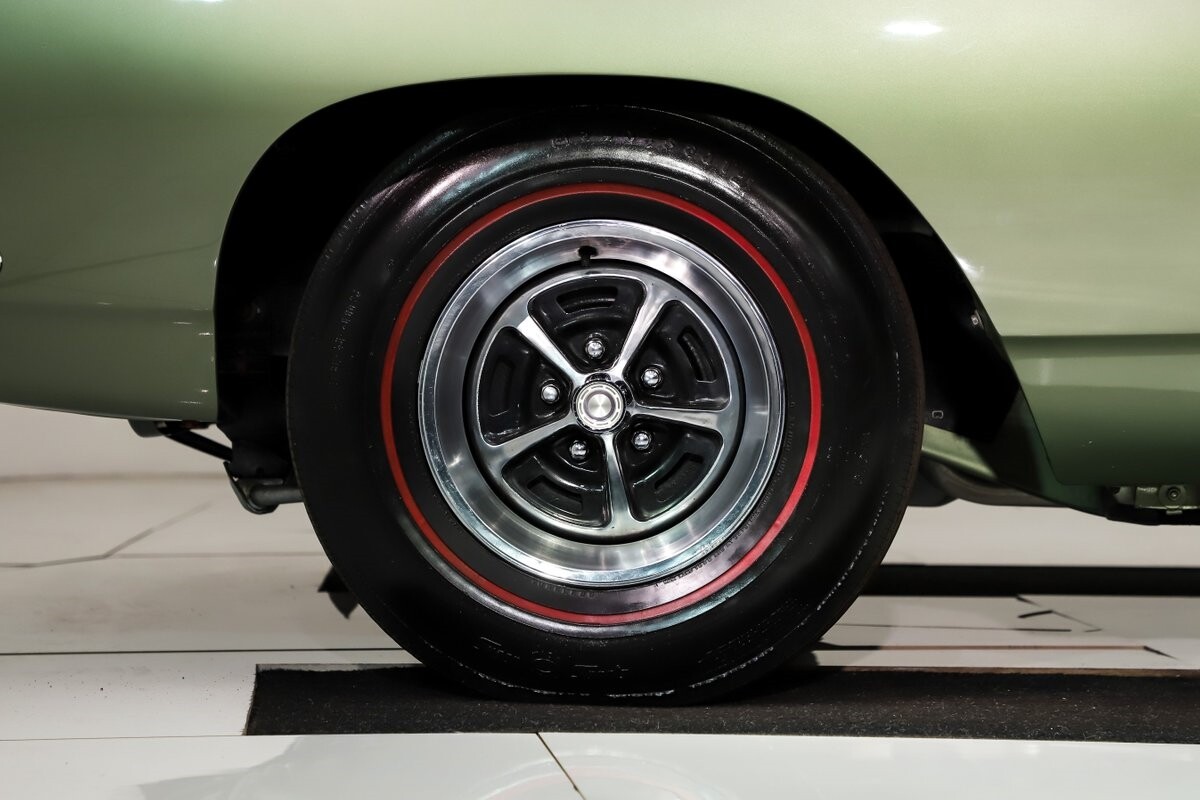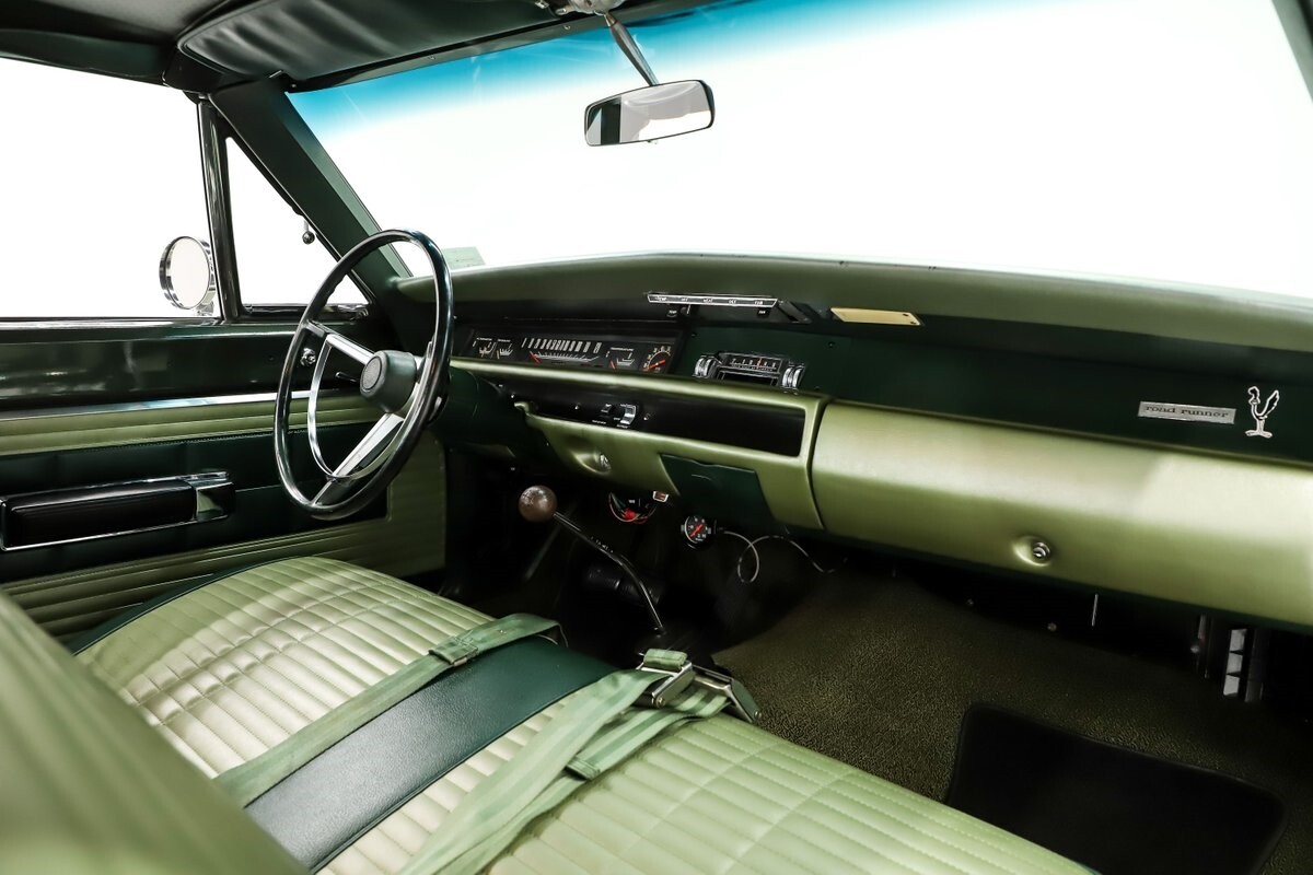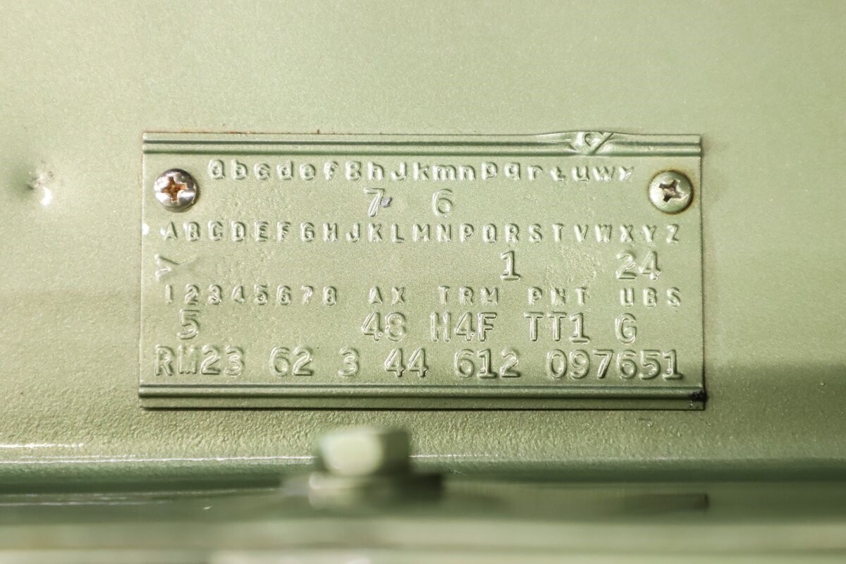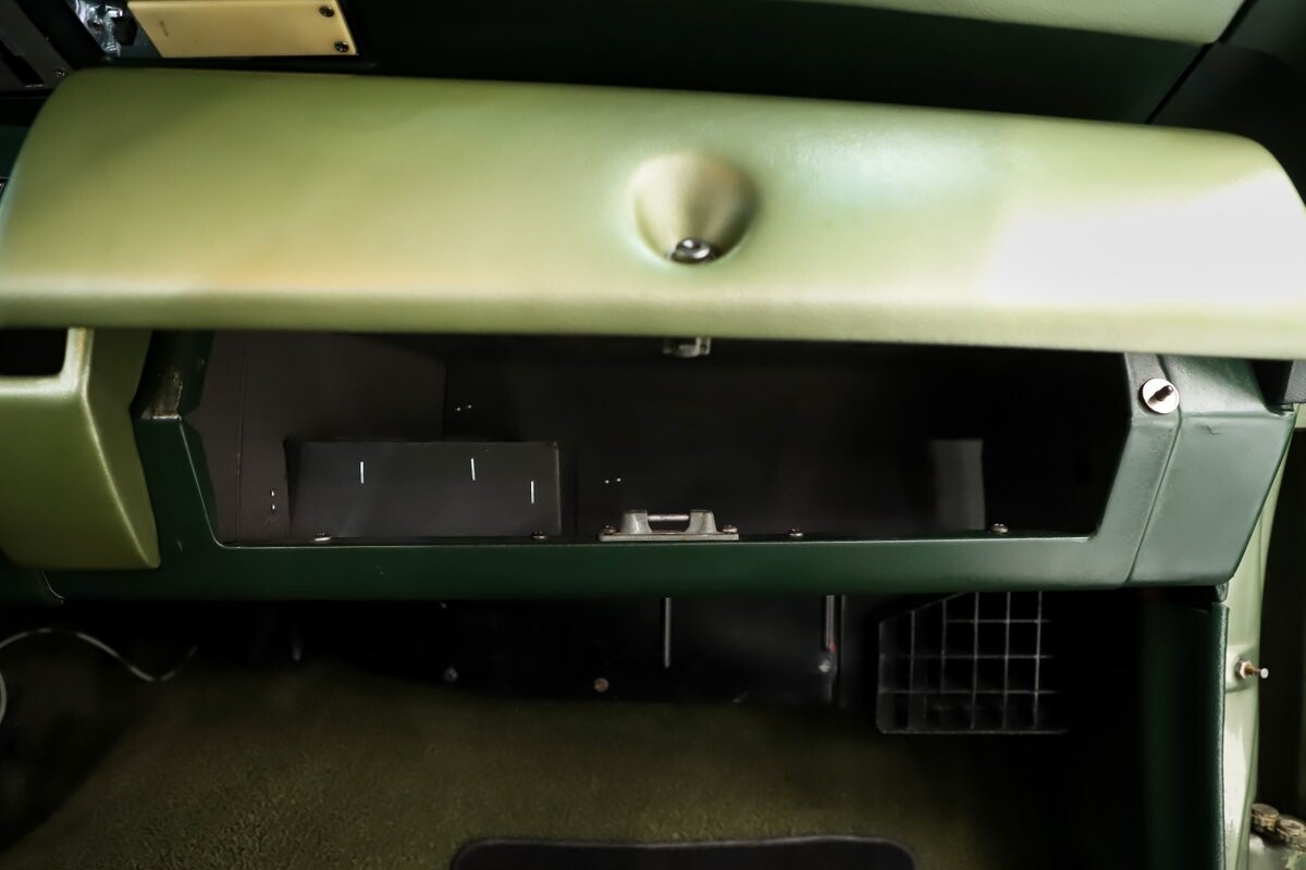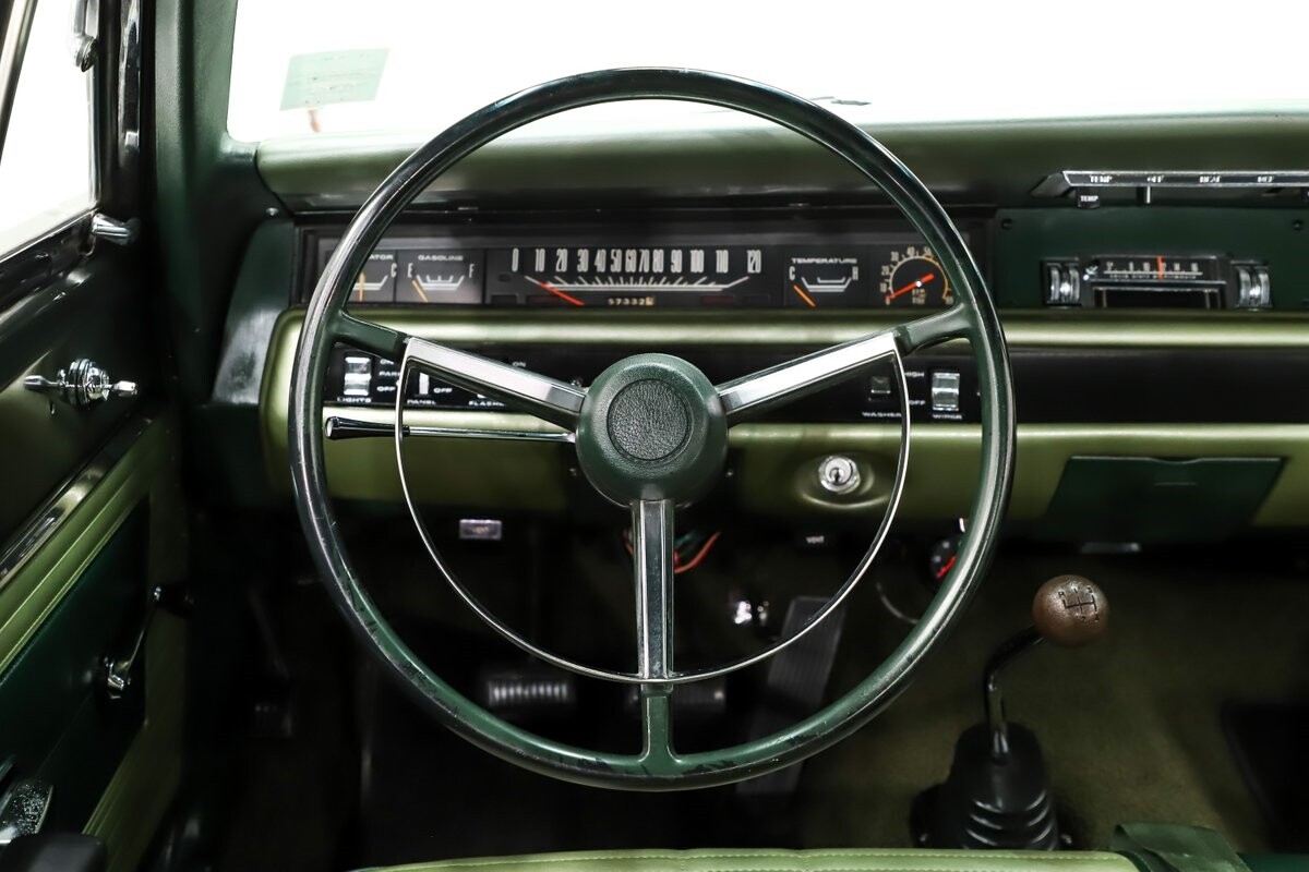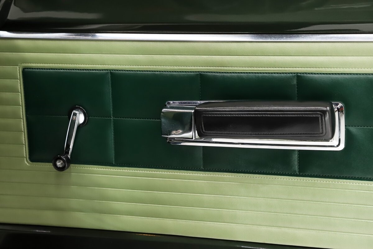 EXTERIOR: The body is clean and straight with excellent gaps. It was media blasted before being painted professionally back to its original Avocado Green with black vinyl top. 3 coats of base coat, 3 coats of clear, sanded between coats. The vinyl top looks new. Mostly original chrome with minimal patina. Optional fender mounted turn signals look new. Crystal clear windshield. Rolling on correct magnum wheels wrapped in reproduction Wide Oval redlines.