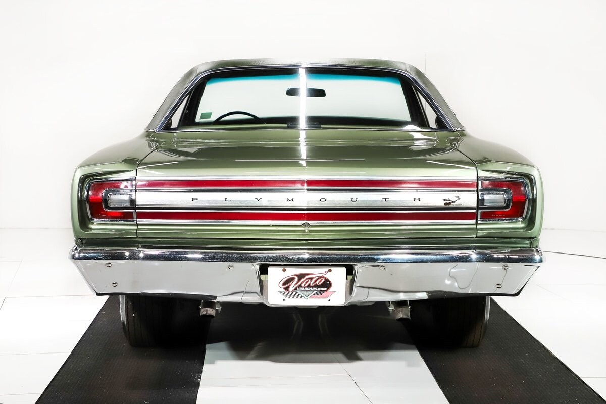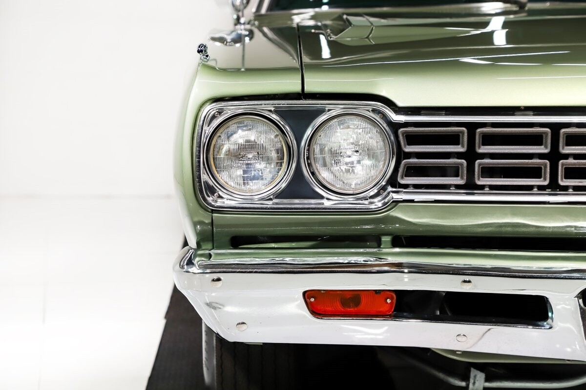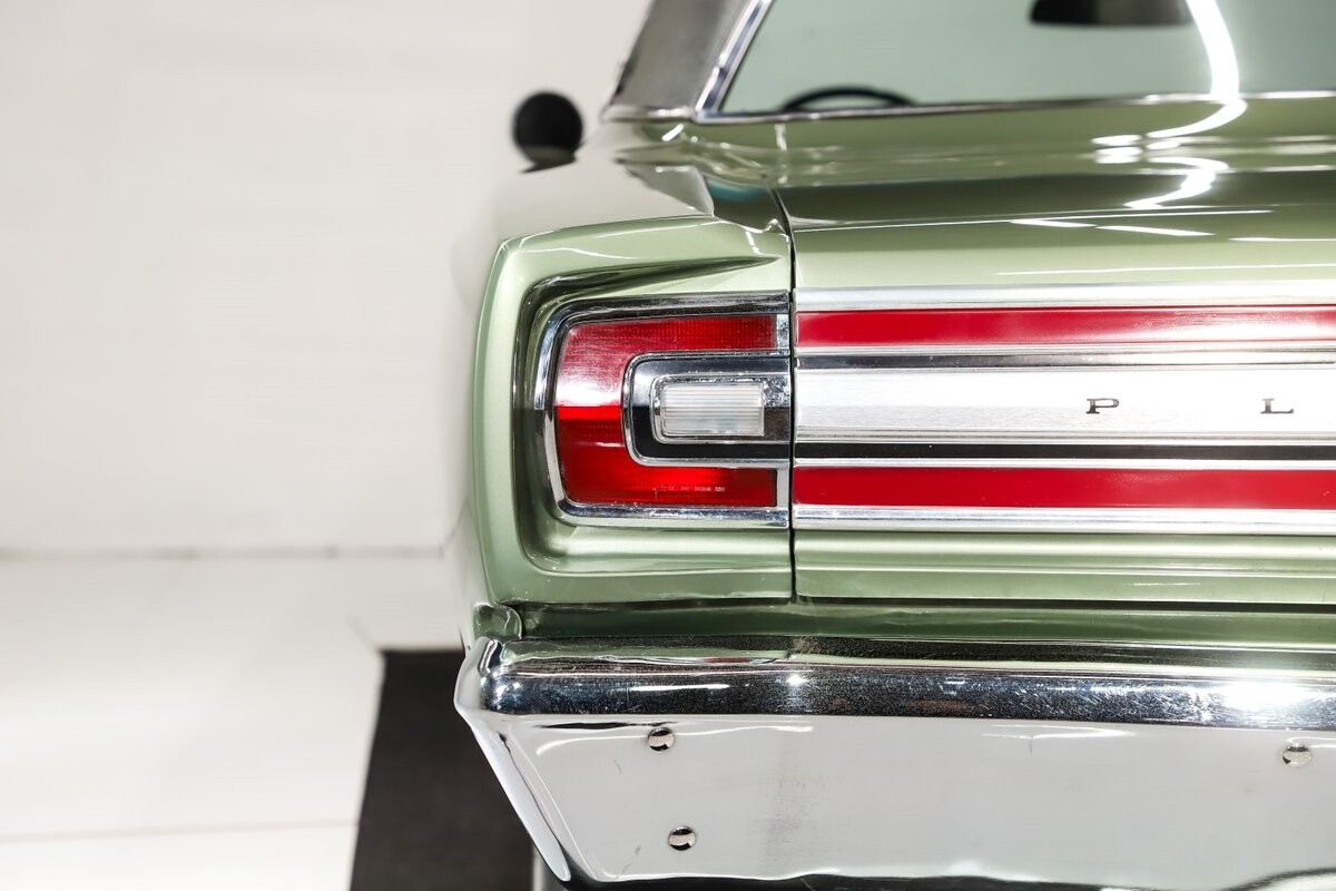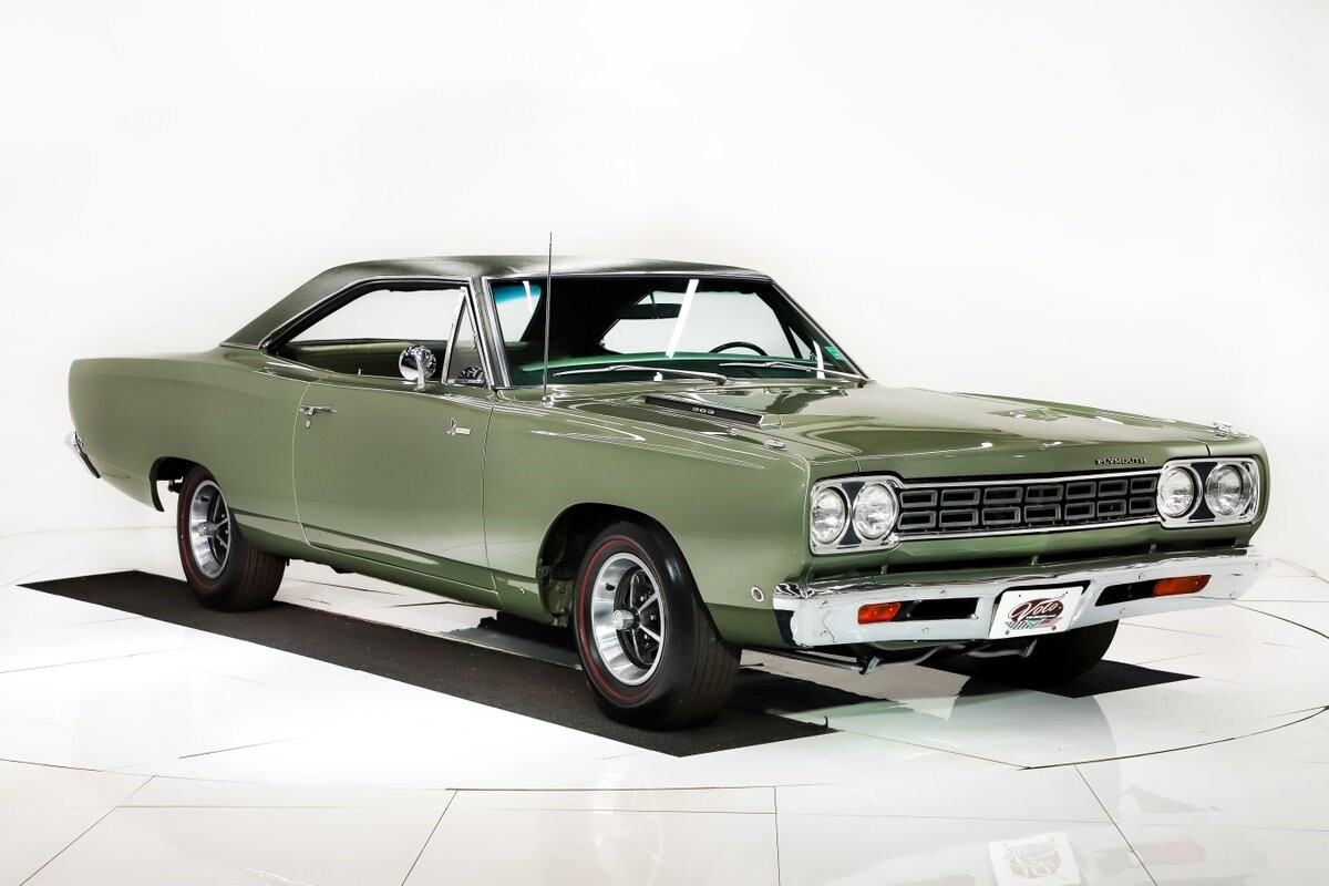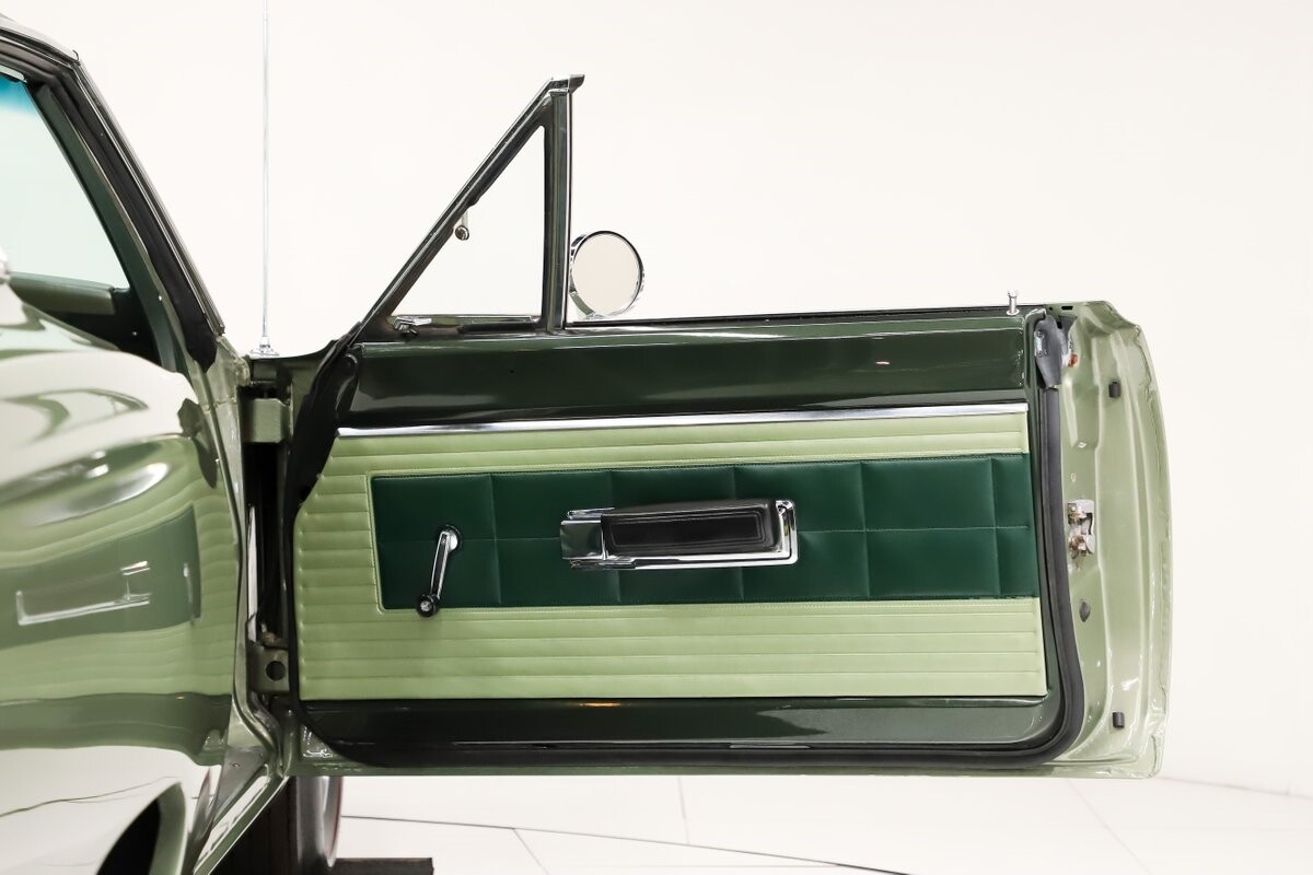 EXTERIOR: The body is clean and straight with excellent gaps. It was media blasted before being painted professionally back to its original Avocado Green with black vinyl top. 3 coats of base coat, 3 coats of clear, sanded between coats. The vinyl top looks new. Mostly original chrome with minimal patina. Optional fender mounted turn signals look new. Crystal clear windshield. Rolling on correct magnum wheels wrapped in reproduction Wide Oval redlines.