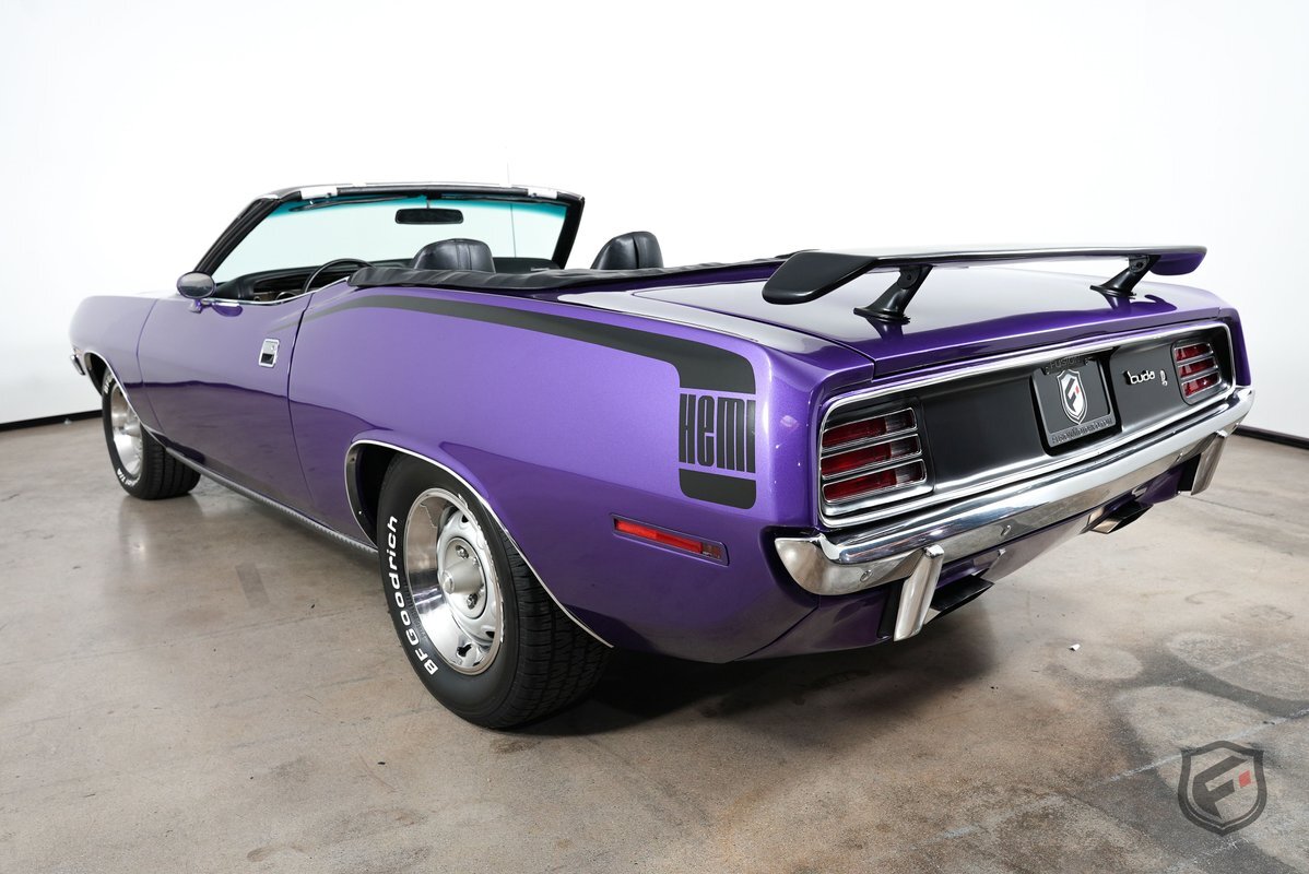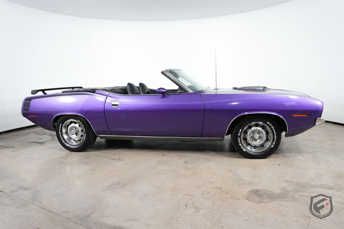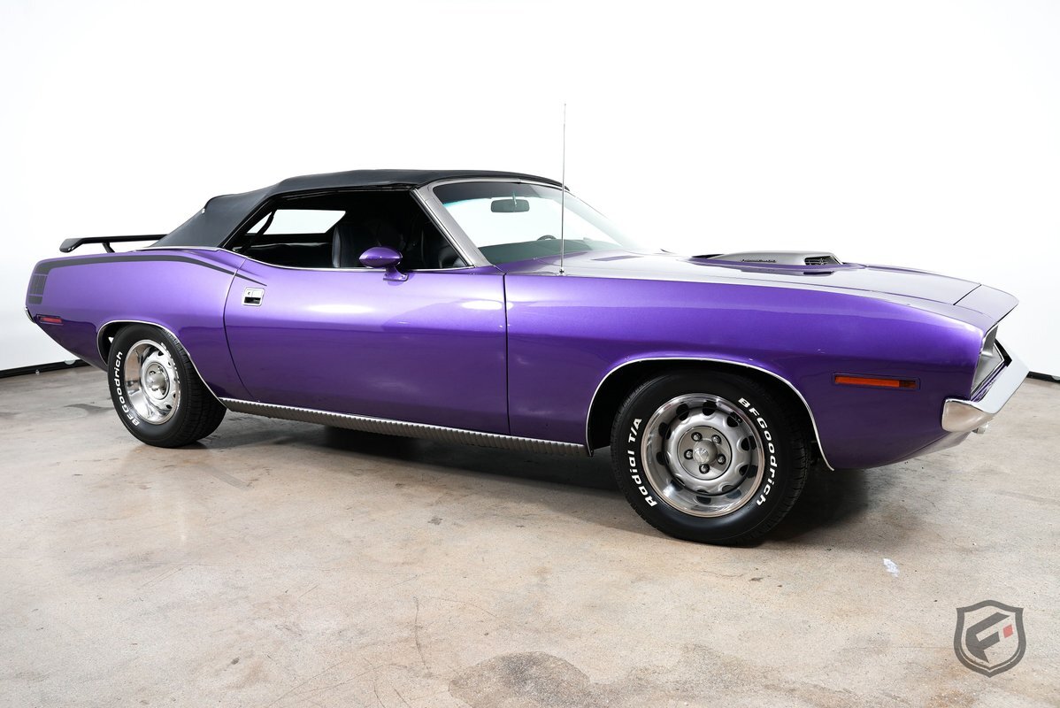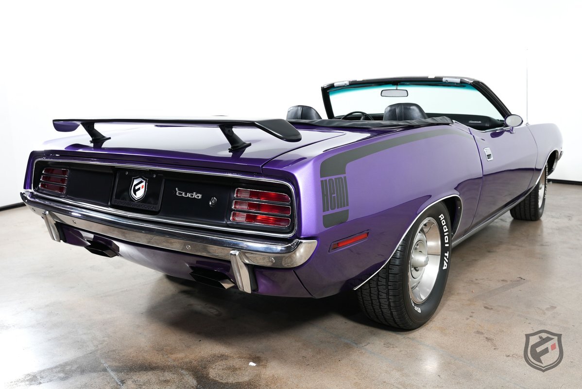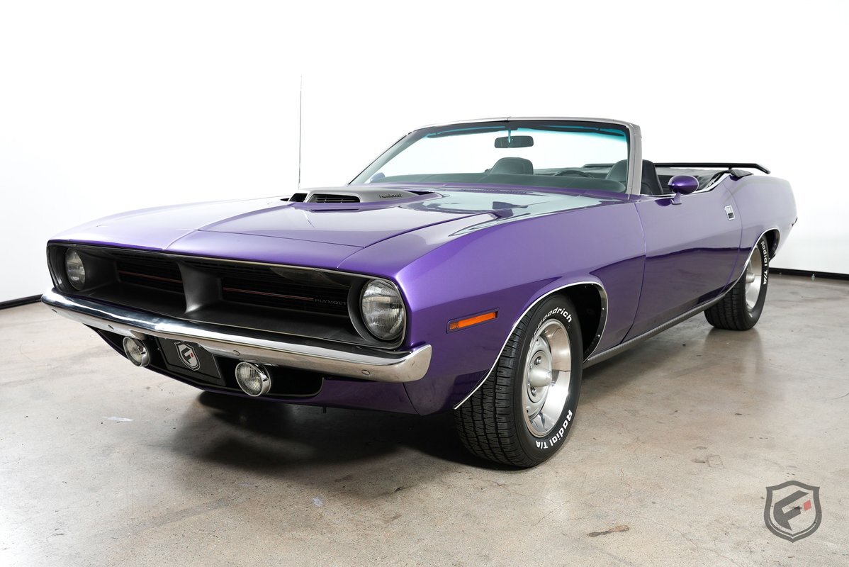 This Plymouth Hemi 'Cuda Convertible is an iconic muscle car that exudes power and style. Its Plum Crazy color adds a touch of uniqueness and character, making it stand out from the crowd. Originally a product of the quintessential muscle car era, Plum Crazy purple was first introduced by Dodge for the 1970 model year.