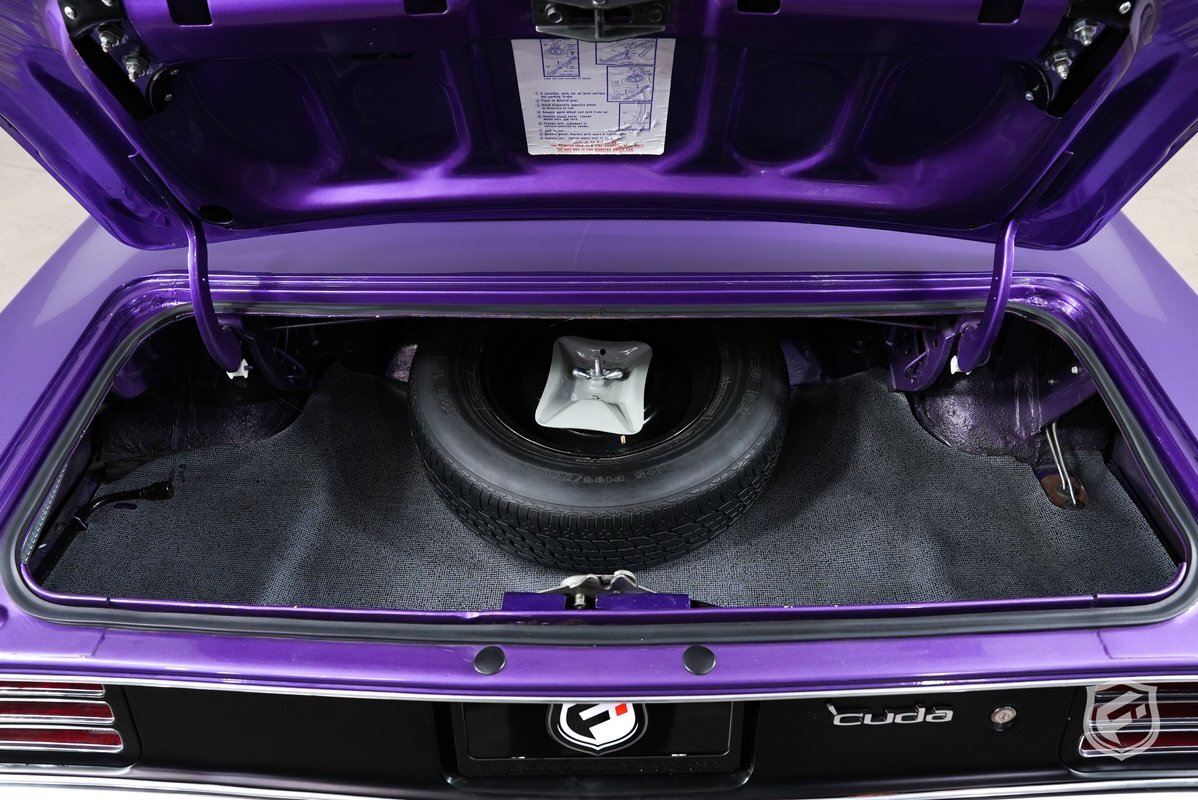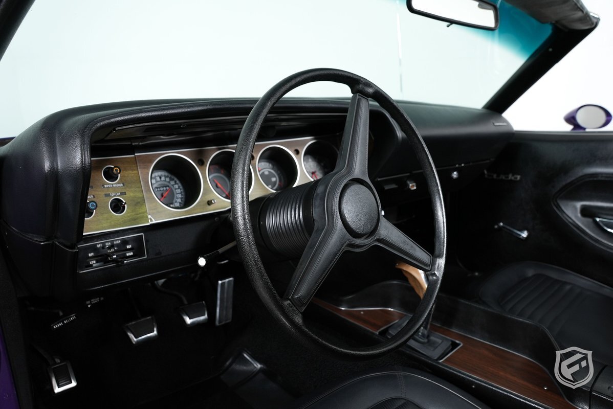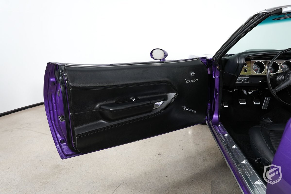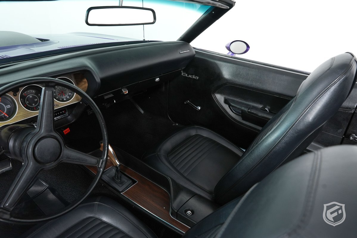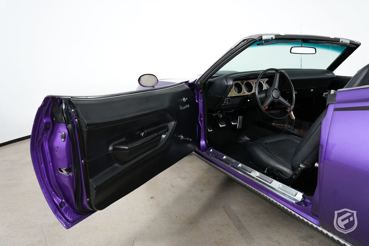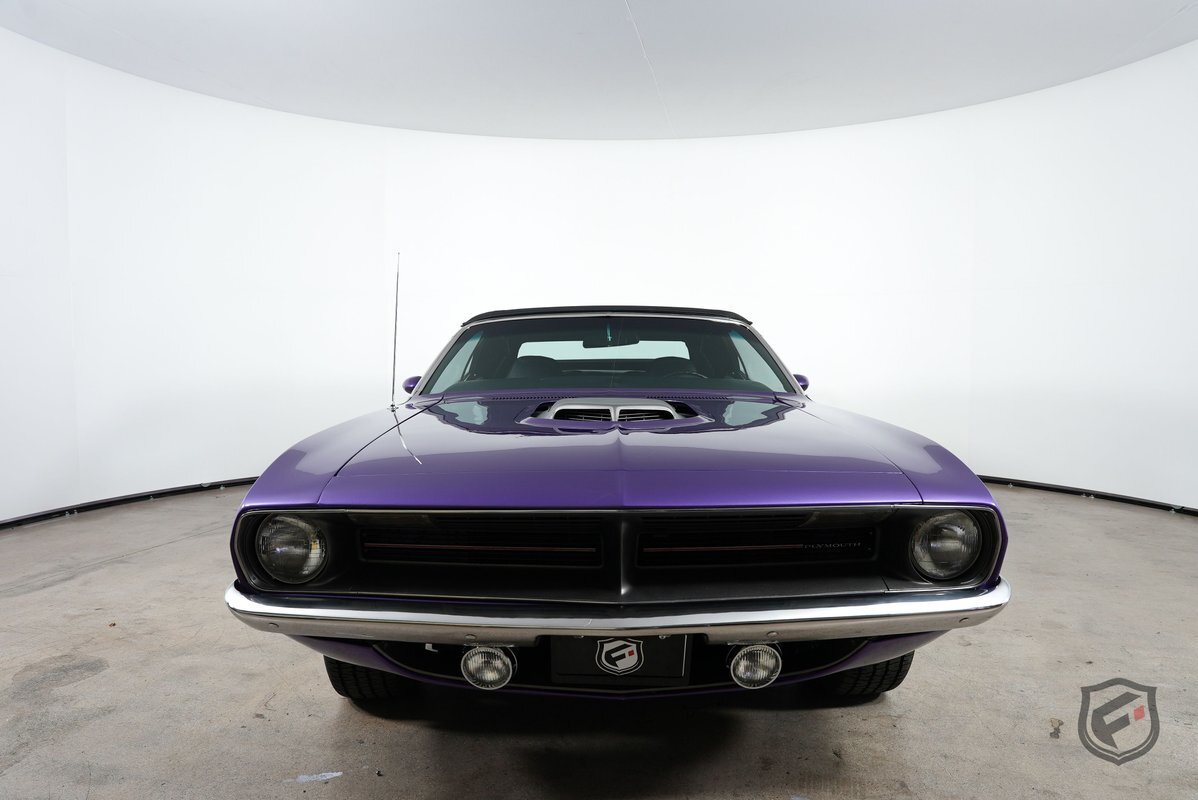 This Plymouth Hemi 'Cuda Convertible is an iconic muscle car that exudes power and style. Its Plum Crazy color adds a touch of uniqueness and character, making it stand out from the crowd. Originally a product of the quintessential muscle car era, Plum Crazy purple was first introduced by Dodge for the 1970 model year.