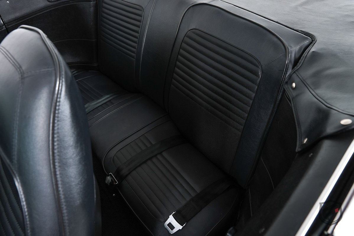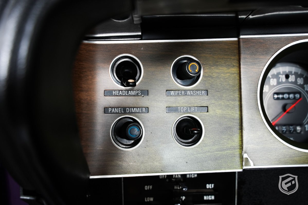 The interior has also been upgraded to now bear bucket seats that are contoured for both comfort and support during spirited driving, a woodgrain center console, Music Master AM Radio, power front disc brakes, and power steering. The steering wheel is a three-spoke design, providing a vintage look and a comfortable grip.