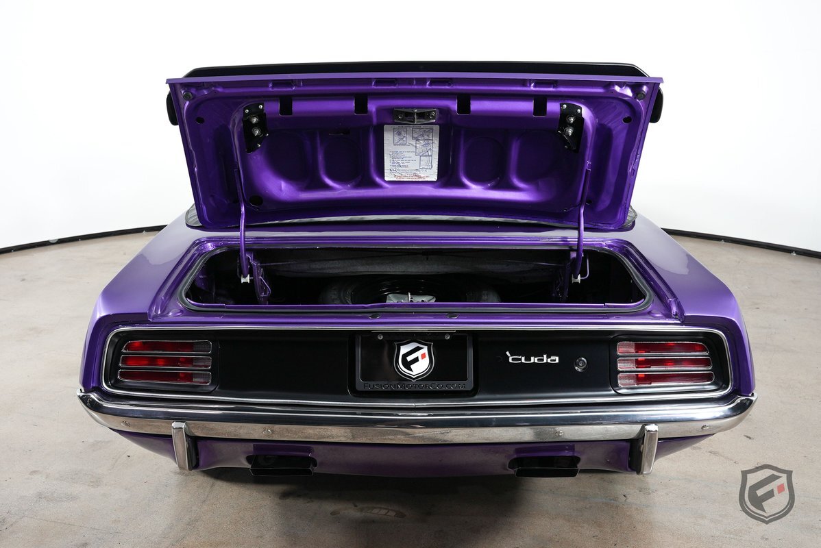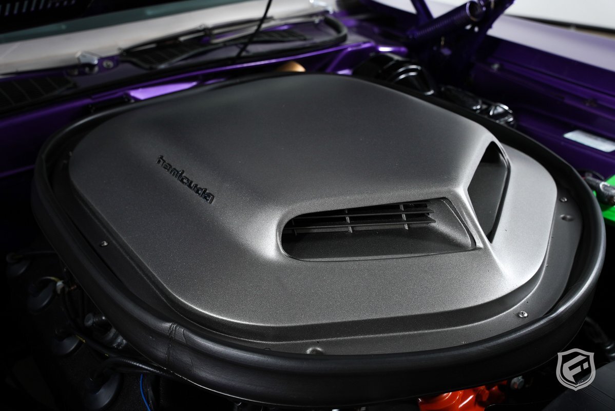This 1970 Plymouth Hemi Cuda started its life as a Barracuda with a 318 two barrel carbureted engine and three-speed automatic transmission. In the last several years it has had a full restoration. It recently underwent an extensive refresher. It received a late model 426 Hemi and A833 four-speed manual transmission, as well as a 3.54 Dana Posi Rear.