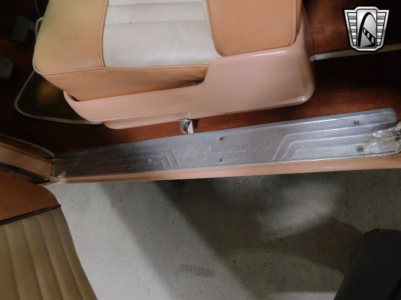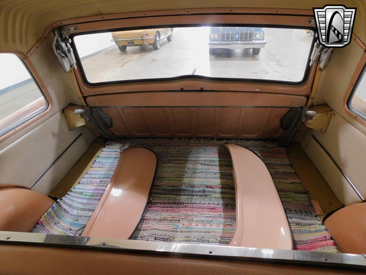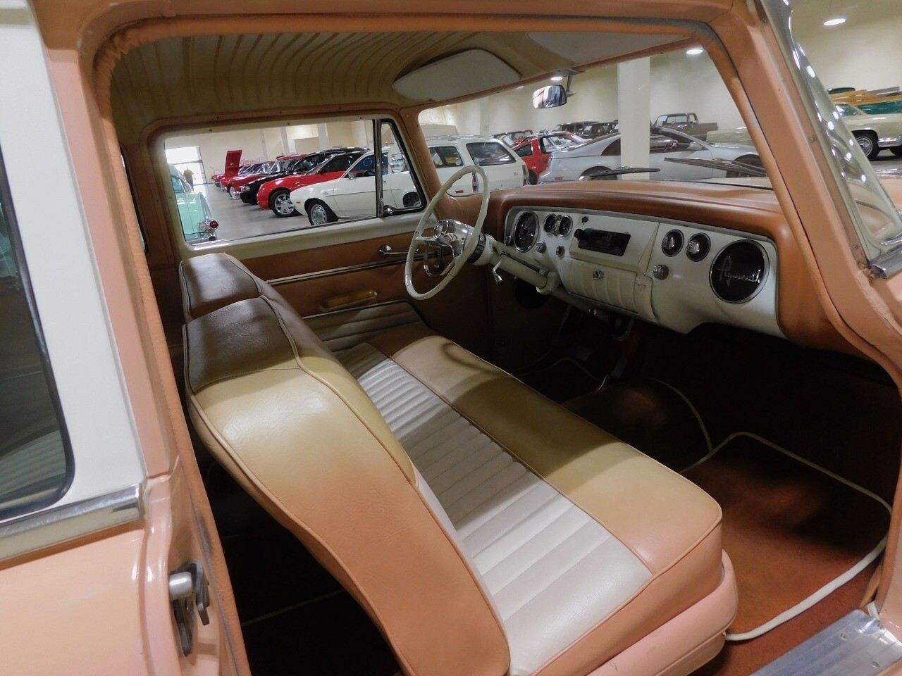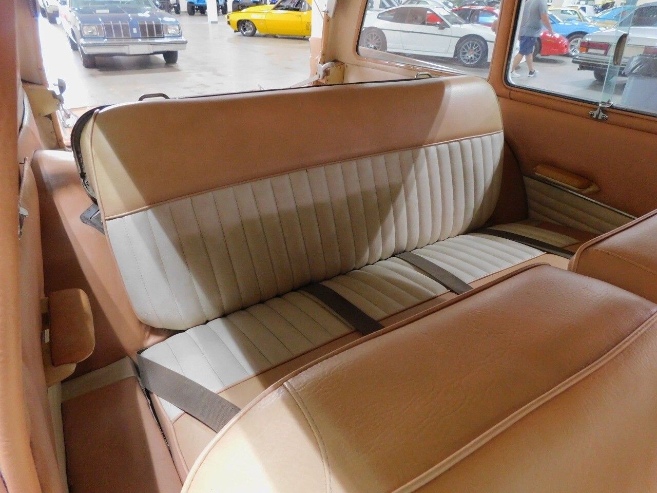 The interior of retro pastel peach will take you back when bench seats and color matching dash boards were the norm. The dash has been