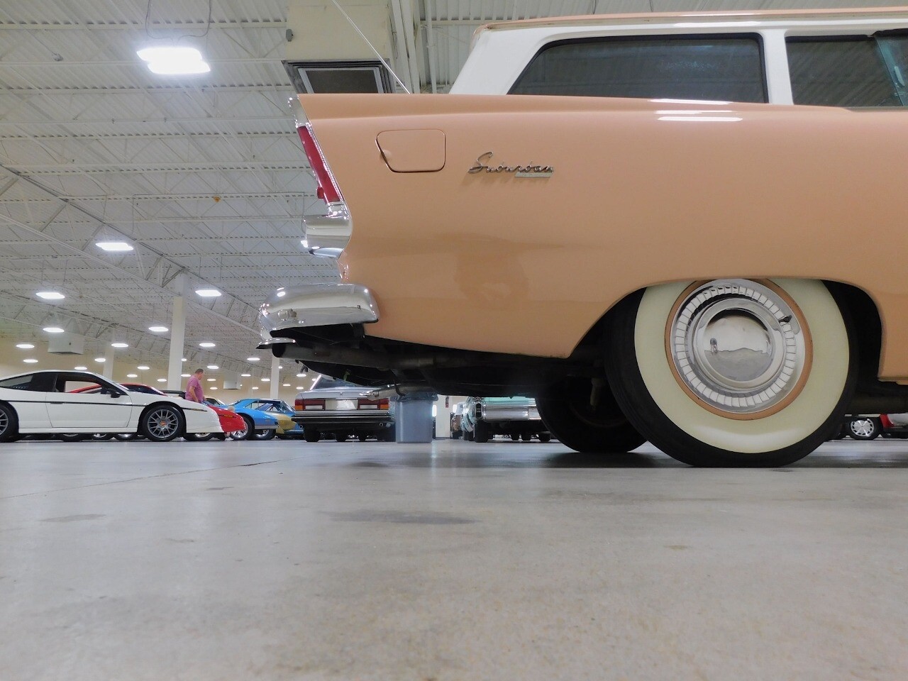 The Plymouth Suburban sits on wide white walls, further enhancing its classic aesthetic. These tires are a nod to the past, adding a touch of nostalgia to this already charming vehicle.