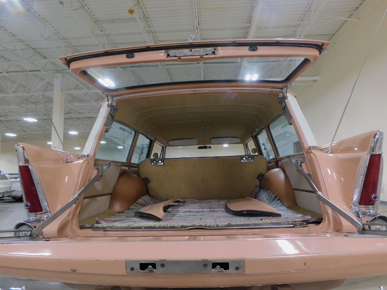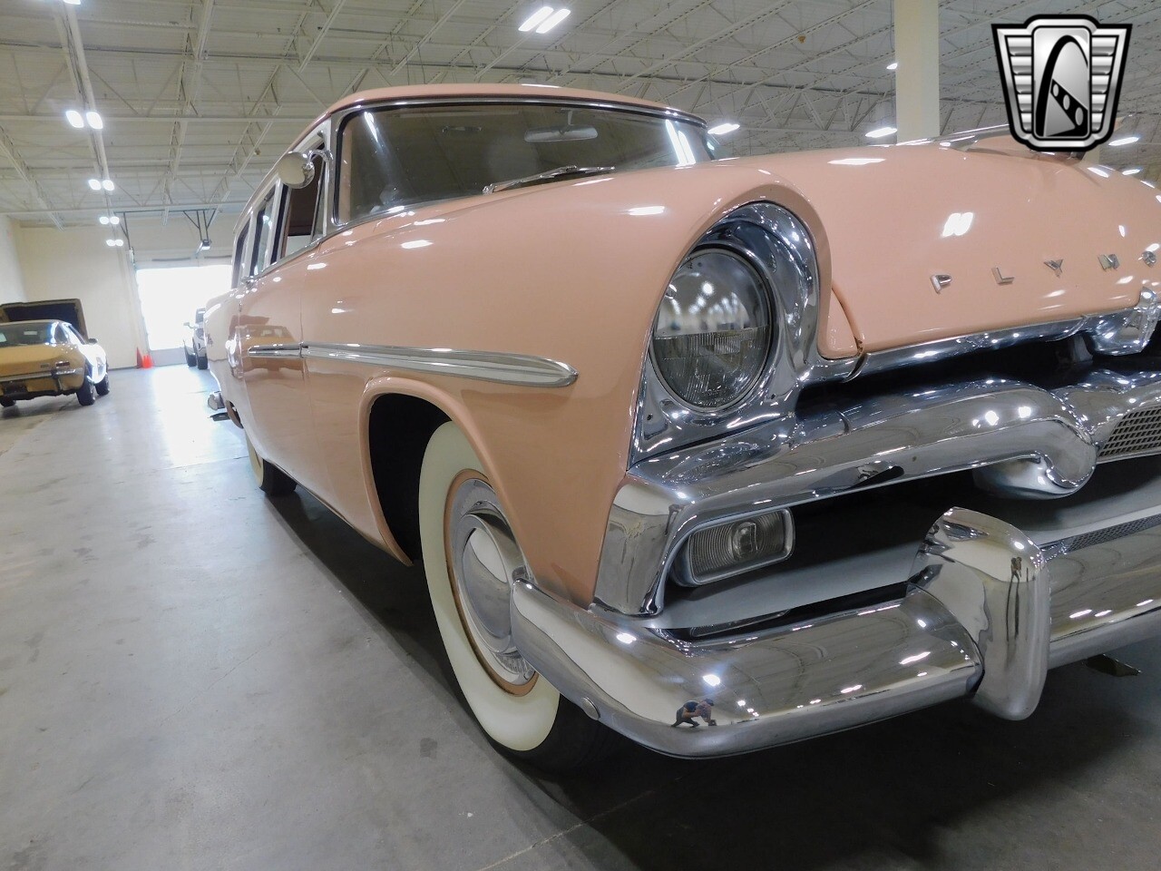 Step into the glamour of the 1950s with this stunning 1956 Plymouth Suburban. With its eye-catching pink exterior, you'll be sure to turn heads wherever you go. The tan and white interior gives off a classic vibe that is sure to take you back in time. This Plymouth is more than just a pretty face, it's also a powerhouse with a V8 engine under the hood.