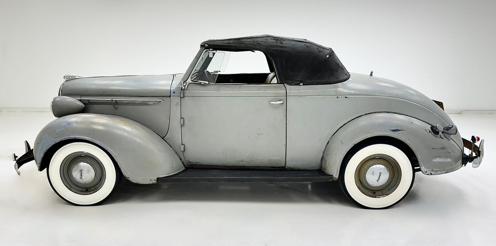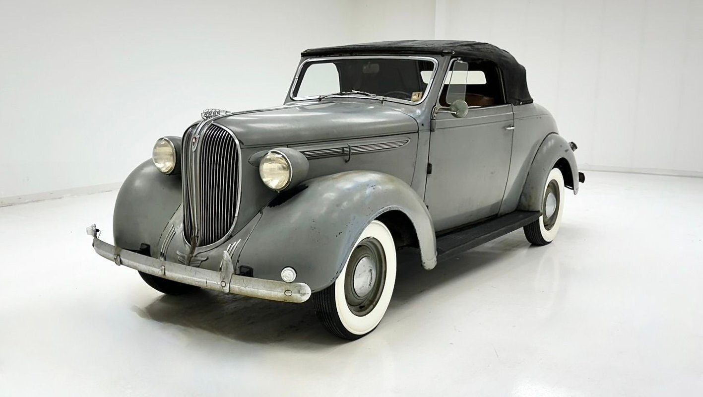 For consignment, a remarkable and rare Plymouth P6 Convertible Coupe with some battle scars on its Battleship Gray exterior, but a healthy heart that recently went on a 2,000 mile jaunt without a hitch. A mechanical restoration that included engine rebuild, wiring, clutch and brakes now aid in the presentation of a patina-clad driver that provides the future new caretaker with several options.
