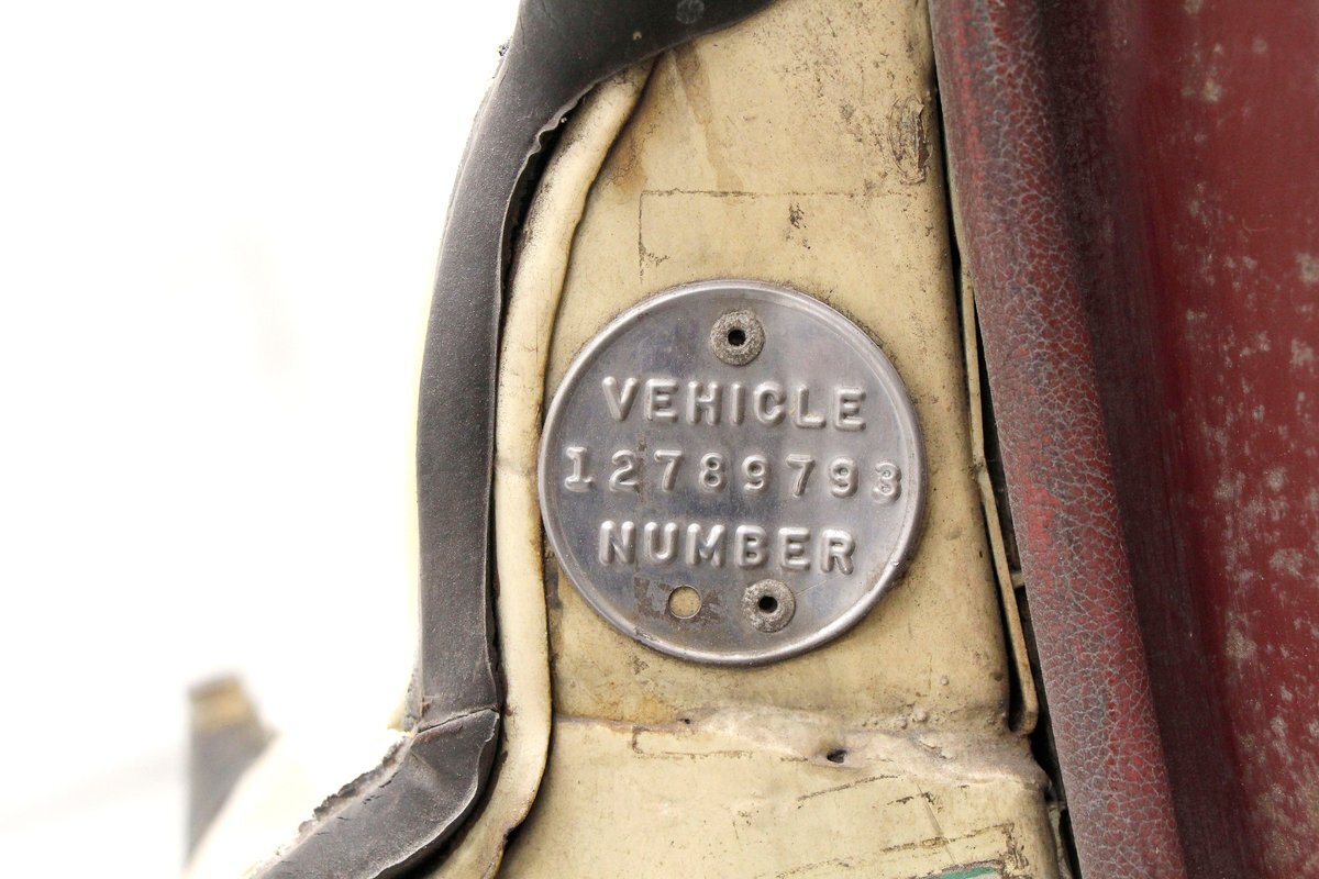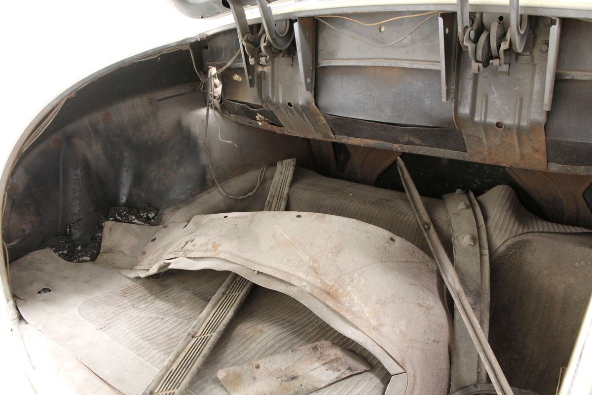 Under the hood is an unrestored engine bay with a 217ci inline 6 cylinder engine which will not start. It is topped with a 1 barrel carburetor and has a 3-speed manual transmission on the back. A 3.90 rear axle is installed in this car.