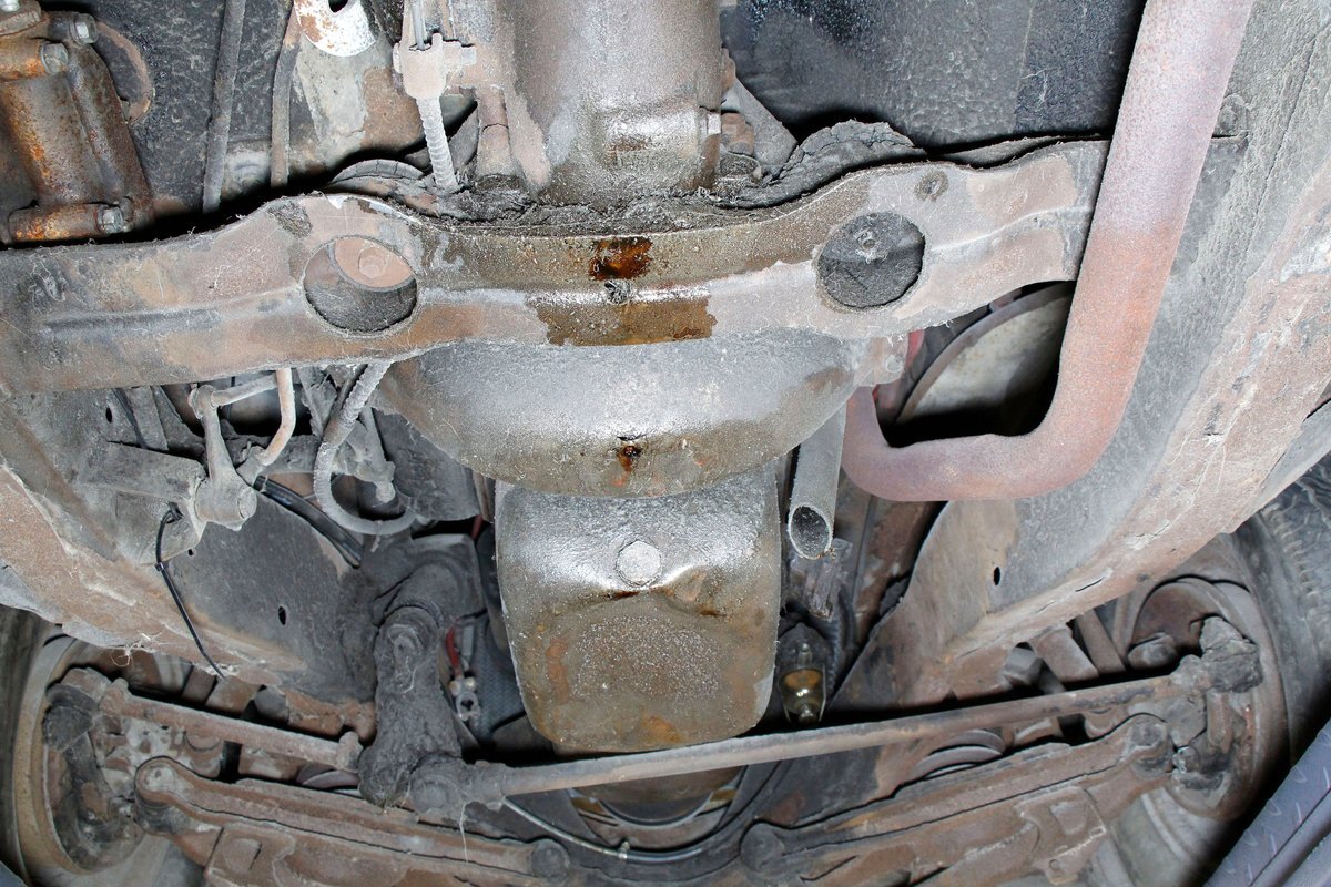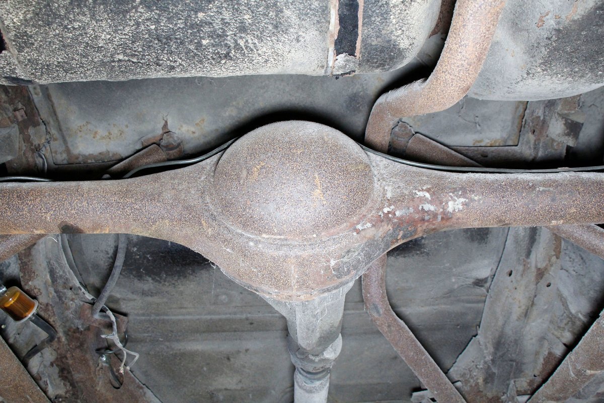 Plenty of patina black coated flat surfaces and surface rust covered suspension and framing. It still holds structural soundness though, and just a little bit of invasive rust damage is noted on either side on the lower inside of the rockers, particularly behind the front wheel wells. Independent coil sprung suspension is upfront and leaf springs for the rear. Drum brakes are on all 4 corners.