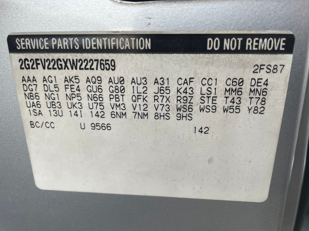 Vehicle Original VIN : 2G2FV22GXW2227659