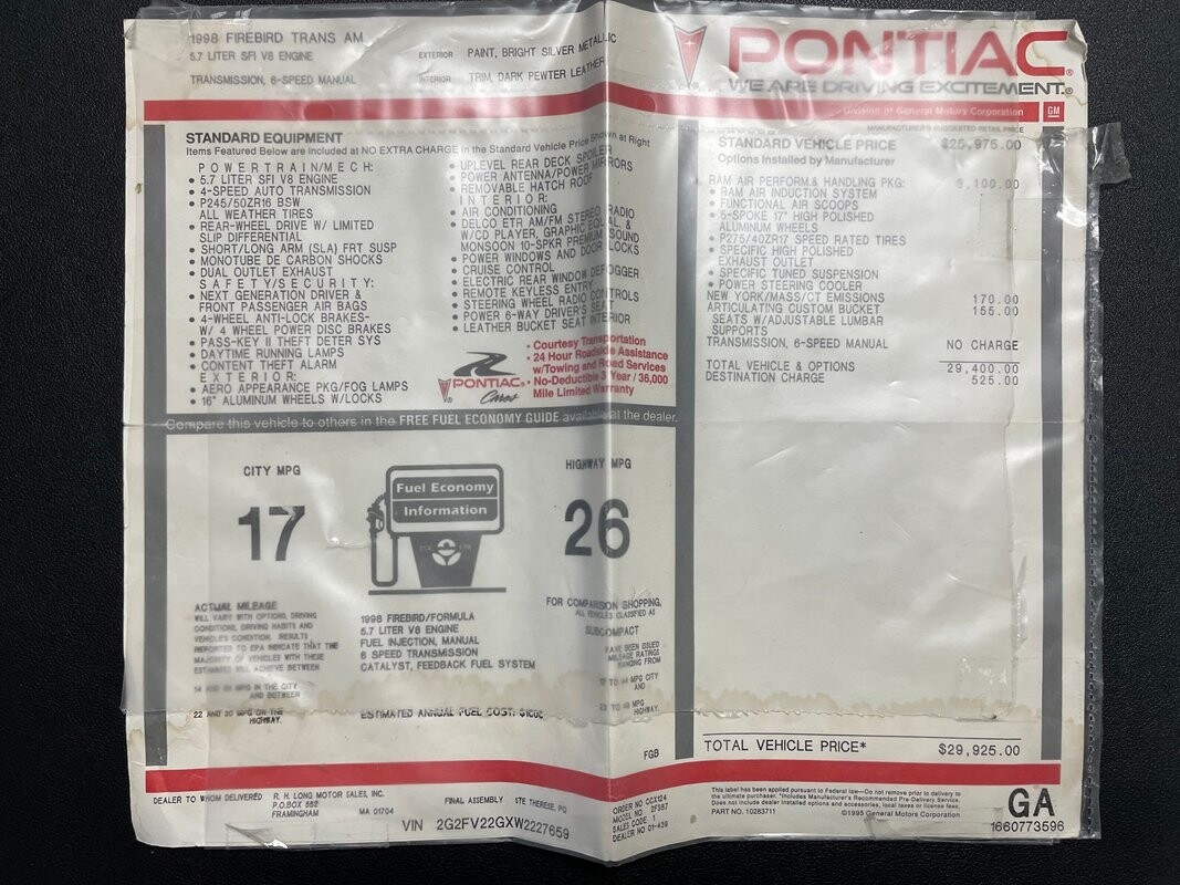 4424-TPA 1998 PONTIAC FIREBIRD TRANS AM WS6