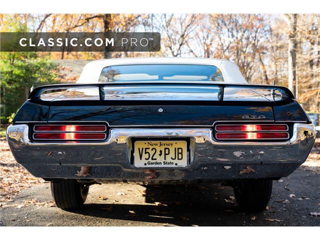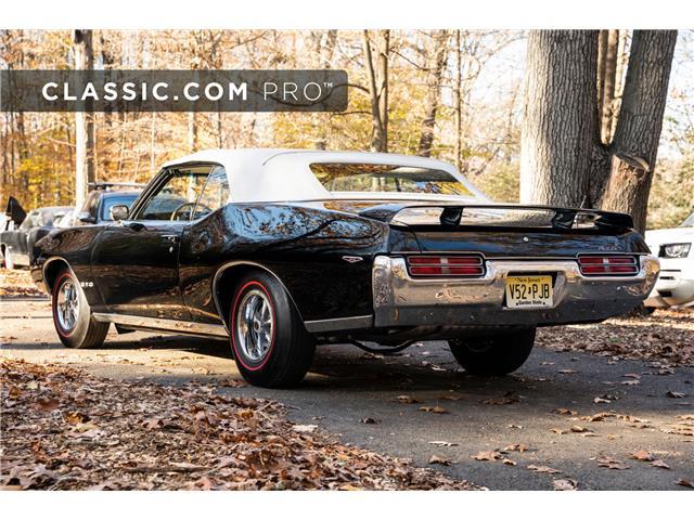 This fully restored 1969 Pontiac GTO shows just 27,523 miles, although the actual mileage is unknown. This American muscle car is powered by a Ram-Air 400ci V8 engine with the last six digits of the VIN matching the last six of the engine block stamping. Power from the V8 runs through a Muncie four-speed manual transmission to the rear wheels. The car was sold new at Star Pontiac of Washington D.C. and still wears the correct Starlight Black (10A) paint with an Ivory white convertible top and matching Parchment (257) white vinyl upholstery. This GTO was equipped with front power disc brakes along with power windows and steering. Other features include the hood-mounted tachometer and Endura front bumper. The car was the recipient of a frame-off restoration by a previous owner at an unknown date. It is currently in Warren, New Jersey.