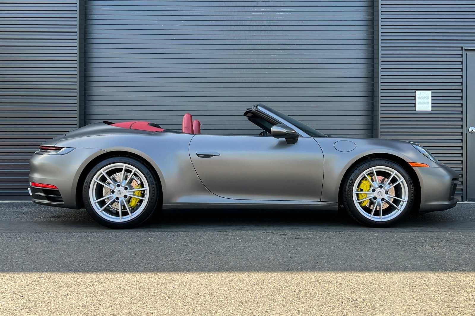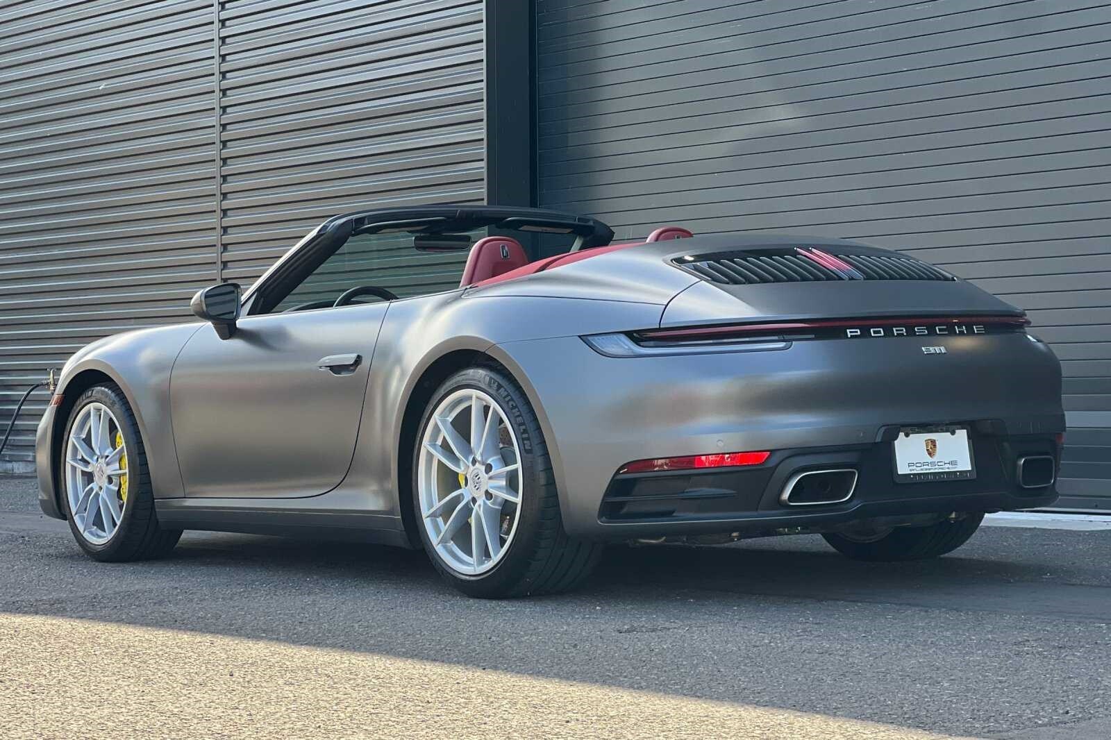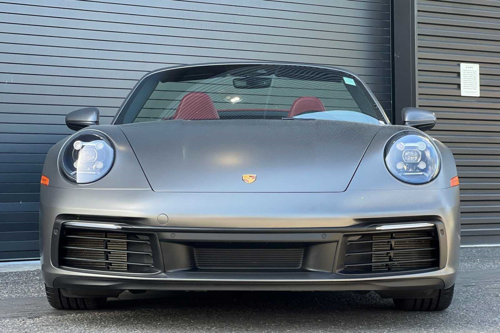 This Porsche San Luis Obispo 2023 Agate Grey Metallic Porsche 911 Carrera is well equipped and includes these features and benefits: Storage Package, Porsche Approved Certified Pre-Owned Certified, Front Axle Lift System, 4-Way Sport Seats, 4-Wheel Disc Brakes, 8 Speakers, ABS brakes, Adaptive suspension, Air Conditioning, Alloy wheels, Auto-dimming door mirrors, Auto-dimming Rear-View mirror, Automatic temperature control, Brake assist, Bumpers: body-color, Convertible roof lining, Convertible roof wind blocker, Delay-off headlights, Driver door bin, Driver vanity mirror, Dual front impact airbags, Dual front side impact airbags, Electronic Stability Control, Exterior Parking Camera Rear, Four wheel independent suspension, Front anti-roll bar, Front Bucket Seats, Front Center Armrest, Front dual zone A/C, Front reading lights, Fully automatic headlights, Garage door transmitter: HomeLink, Glass rear window, Heated door mirrors, Heated front seats, Illuminated entry, Integrated roll-over protection, Leather Seat Trim, Leather steering wheel, Low tire pressure warning, Navigation system: Porsche Communication Management (PCM), Occupant sensing airbag, Outside temperature display, Overhead airbag, Overhead console, Passenger door bin, Passenger vanity mirror, Porsche Communication Management, Power convertible roof, Power door mirrors, Power driver seat, Power passenger seat, Power steering, Power windows, Radio data system, Rain sensing wipers, Rear anti-roll bar, Rear fog lights, Rear window defroster, Remote keyless entry, Security system, Speed control, Split folding rear seat, Spoiler, Sport steering wheel, Steering wheel mounted audio controls, Tachometer, Telescoping steering wheel, Tilt steering wheel, Traction control, Trip computer, Variably intermittent wipers, and Wheels: 19 Front/20 Rear Carrera. Adaptive Cruise Control, Adaptive Headlights, Android Auto, Apple Carplay, Automatic Headlights, Blind-Spot Monitors, Bluetooth, Collision Warning Alert System, Navigation, Front Axle Lift System, Storage Package.