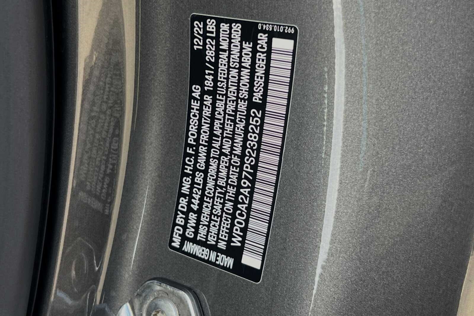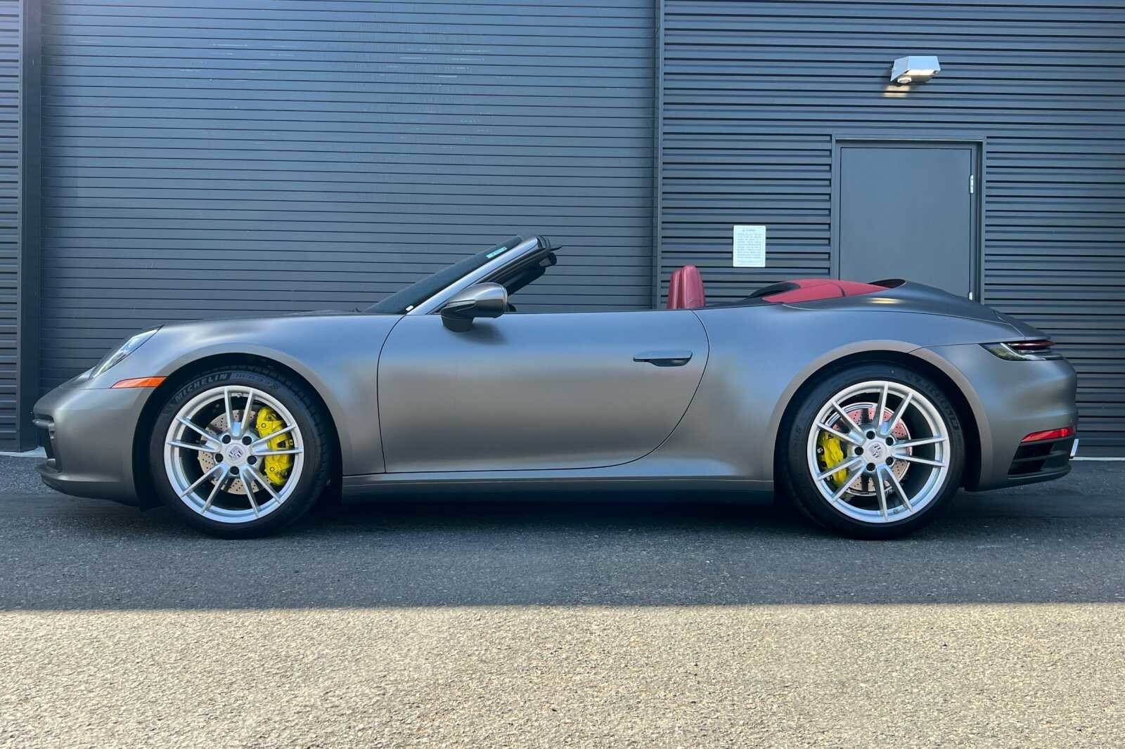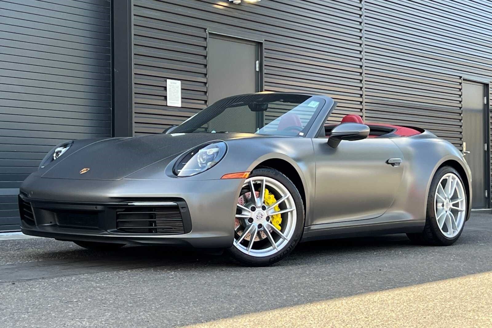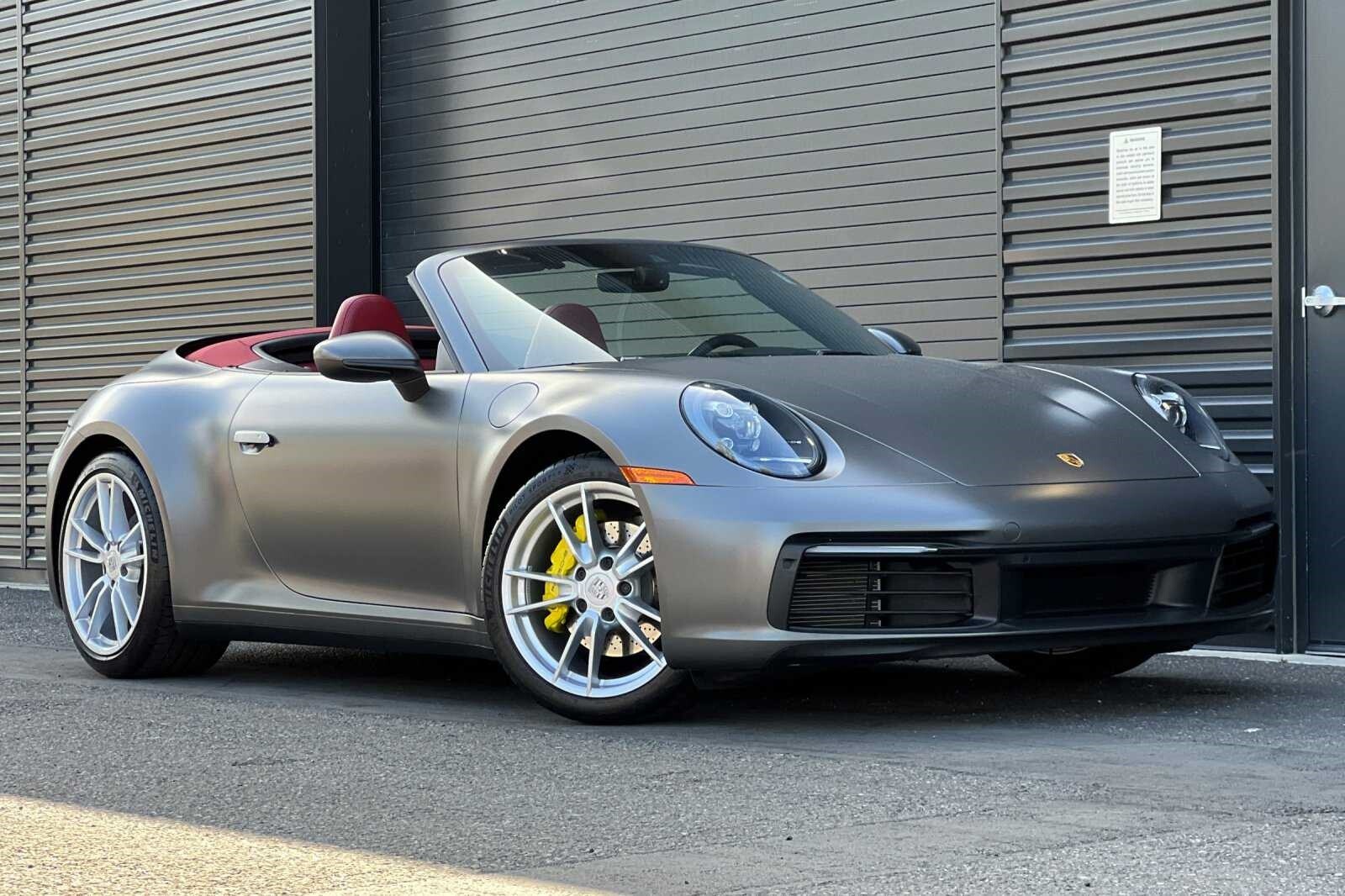This Porsche San Luis Obispo 2023 Agate Grey Metallic Porsche 911 Carrera is well equipped and includes these features and benefits: Storage Package, Porsche Approved Certified Pre-Owned Certified, Front Axle Lift System, 4-Way Sport Seats, 4-Wheel Disc Brakes, 8 Speakers, ABS brakes, Adaptive suspension, Air Conditioning, Alloy wheels, Auto-dimming door mirrors, Auto-dimming Rear-View mirror, Automatic temperature control, Brake assist, Bumpers: body-color, Convertible roof lining, Convertible roof wind blocker, Delay-off headlights, Driver door bin, Driver vanity mirror, Dual front impact airbags, Dual front side impact airbags, Electronic Stability Control, Exterior Parking Camera Rear, Four wheel independent suspension, Front anti-roll bar, Front Bucket Seats, Front Center Armrest, Front dual zone A/C, Front reading lights, Fully automatic headlights, Garage door transmitter: HomeLink, Glass rear window, Heated door mirrors, Heated front seats, Illuminated entry, Integrated roll-over protection, Leather Seat Trim, Leather steering wheel, Low tire pressure warning, Navigation system: Porsche Communication Management (PCM), Occupant sensing airbag, Outside temperature display, Overhead airbag, Overhead console, Passenger door bin, Passenger vanity mirror, Porsche Communication Management, Power convertible roof, Power door mirrors, Power driver seat, Power passenger seat, Power steering, Power windows, Radio data system, Rain sensing wipers, Rear anti-roll bar, Rear fog lights, Rear window defroster, Remote keyless entry, Security system, Speed control, Split folding rear seat, Spoiler, Sport steering wheel, Steering wheel mounted audio controls, Tachometer, Telescoping steering wheel, Tilt steering wheel, Traction control, Trip computer, Variably intermittent wipers, and Wheels: 19 Front/20 Rear Carrera. Adaptive Cruise Control, Adaptive Headlights, Android Auto, Apple Carplay, Automatic Headlights, Blind-Spot Monitors, Bluetooth, Collision Warning Alert System, Navigation, Front Axle Lift System, Storage Package.