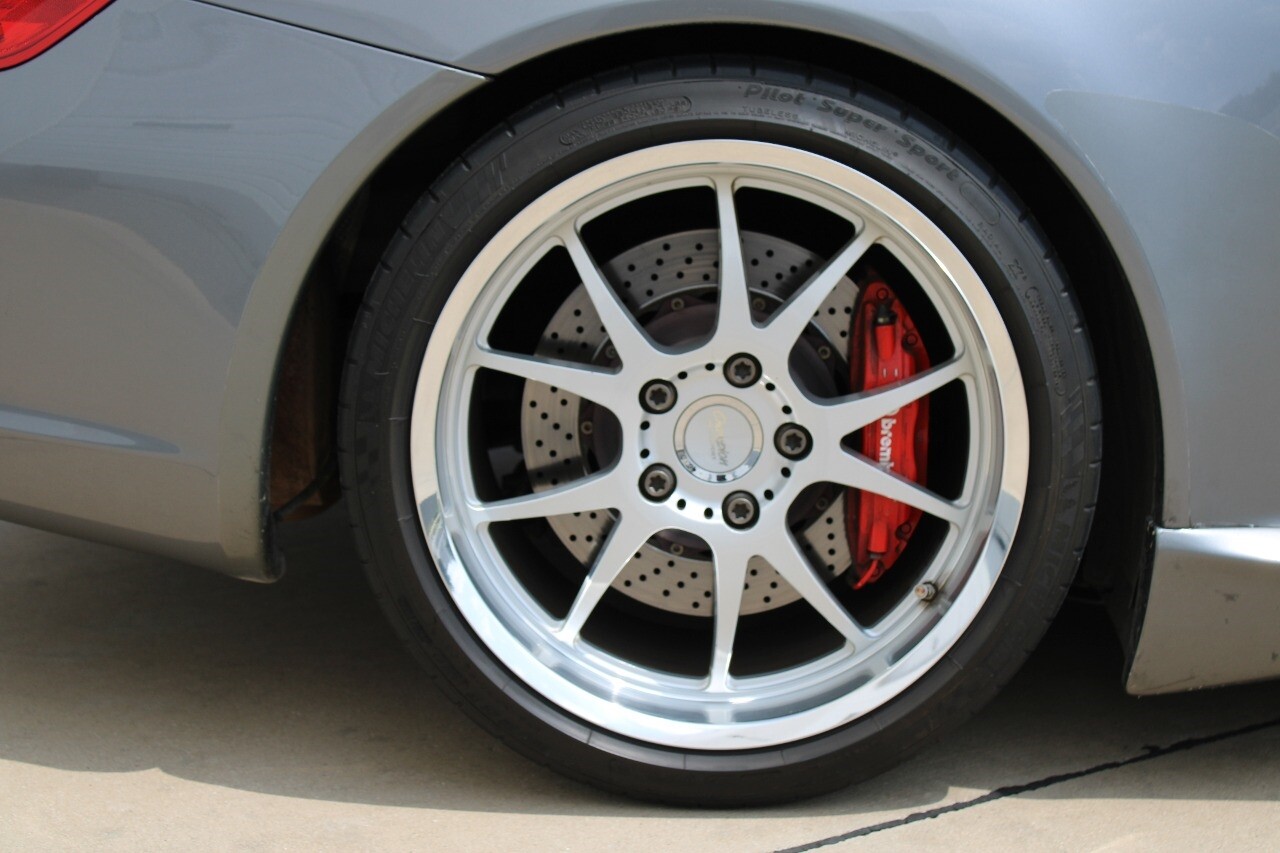 This example is equipped with a GUARD Transmission (Guard is known worldwide among Pro racers and transmission builders who specialize in 911-based race cars). Limited-slip differential (installed by MAXRPM to Synergy race 997 specs). GT2 Aero Kit, front lip, side skirts, and rear wing (over $8k), Cargraphic grill inserts, Clear side light markers, Clear bra and window tint. Fabspeed headers, Fabspeed sport cats, Fabspeed sport exhaust, Fabspeed dual-quad tips. Power intake plenum. Full Suspension and Big Brake Kit. Bilstein sport shocks, H&R lowering springs (1.2 inches lower than stock), Front strut brace, Custom rear control arms (allow the rear camber to be adjusted from stock to any setting depending on driver preference), Brembo 14" big brake kit front and rear. B&M short shift kit. Porsche black Euro racing seats, OE seatbelts (fully functional with seats), Custom harness bar (removable) and 5 point cross harness for driver and passenger. FVD Daytona leather steering wheel with Porsche emblem. Complete Vosstek pedal kit. 19" Champion Monolite RS98 wheels and Michelin Pilot Super Sport tires ($4,500) with Titanium lug bolts ($1,000). The Original MSRP was $83,245 and aftermarket upgrades for just parts totaled an impressive $46,658 (receipts on file).