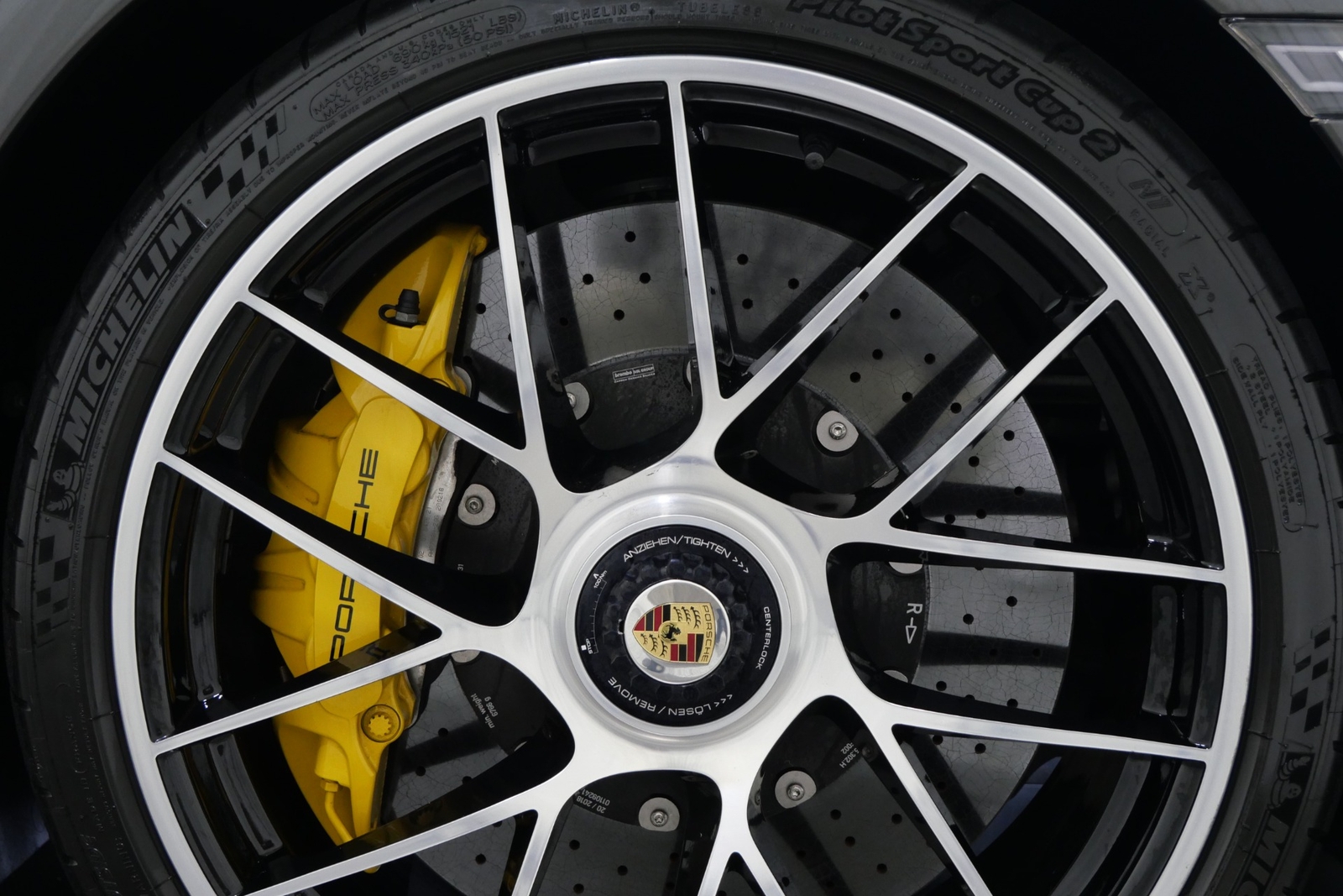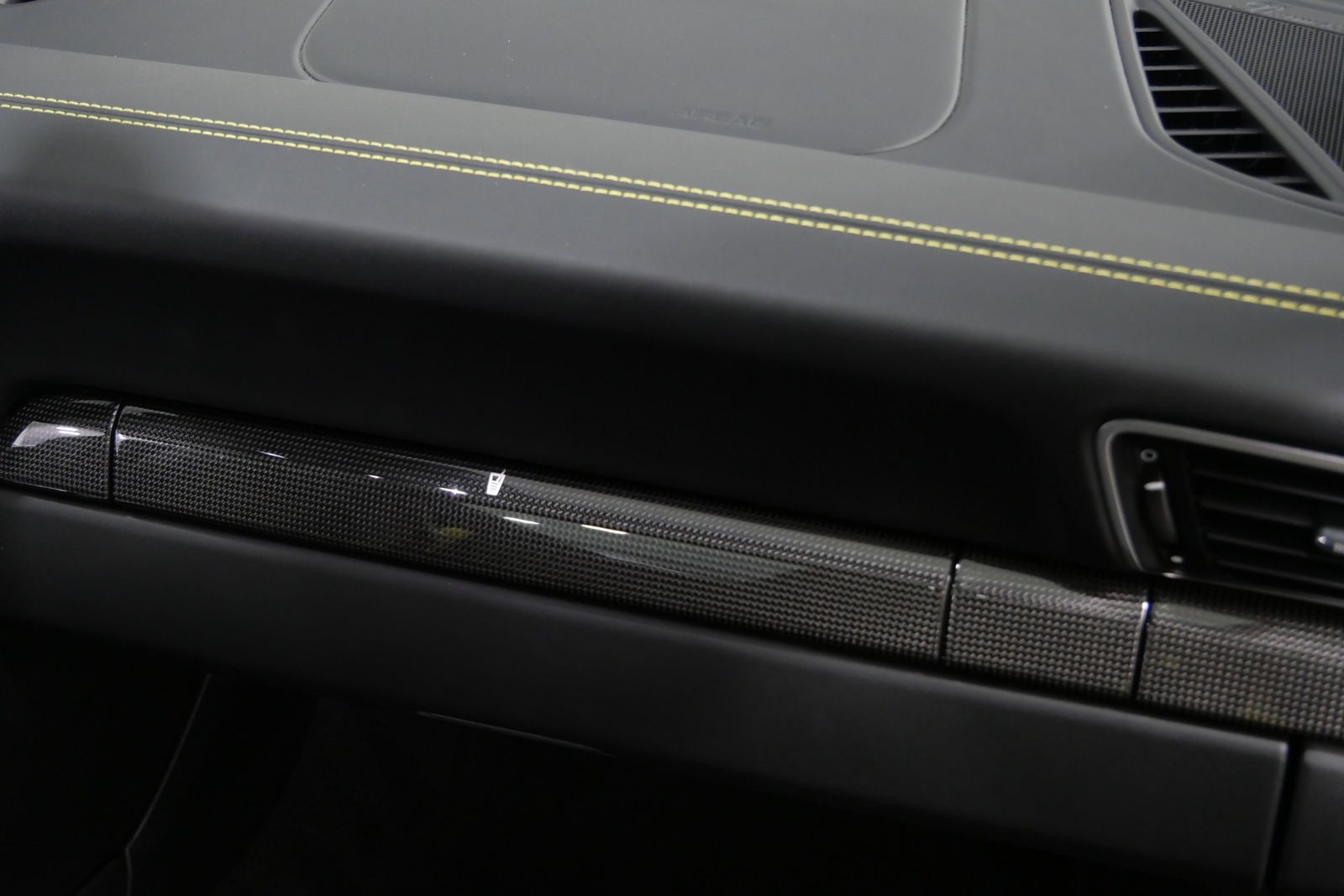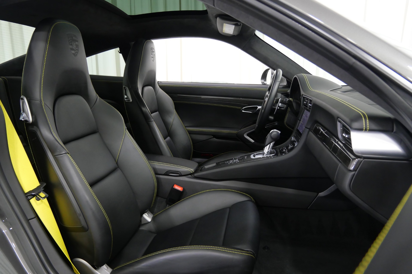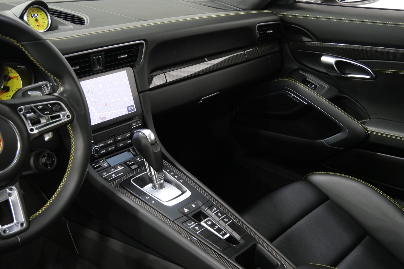 We have just added to our extensive exotic car inventory a beautiful 2018 Porsche 911 Turbo S in Agate Grey Metallic with Black interior with only 11,788 miles. This Turbo S is loaded with: 3.8 Liter twin turbo flat six, PDK transmission, 20 inch machine finish Turbo S wheels, Aerokit Turbo in high gloss black, electric tilt/side sunroof in glass, headlamp washers painted black, Porsche script on decklid painted black, tinted taillights, front axle lift, SportDesign exterior mirrors with gloss black lower trim, LED headlamps in black with dynamic lighting, illuminated stainless steel door sills, Burmester high end audio, console lid with embossed model designation, extended deviated interior stitching in yellow, steering column in leather with yellow stitching, yellow seat belts, center console lid with embossed model designation, Porsche crests embossed in headrests, instruments in Racing Yellow, Sport Chrono face in Racing Yellow, pedals and footrest in aluminum, Porsche entry and drive, light design package, heated seats, park assist front and rear with rear camera, 18 way power sports seats plus and much more. Additionally the exterior features an extensive amount of aftermarket carbon fiber including the rear spoiler, rear engine cover slats, the rear side intakes, door handles and window triangle trim. Annual service performed 1/2024, 260 miles ago.