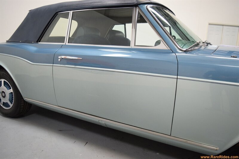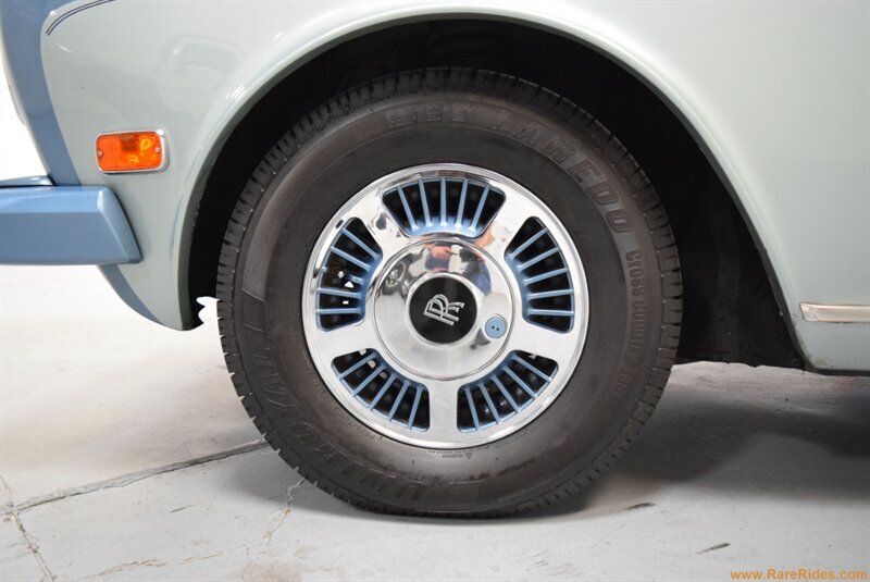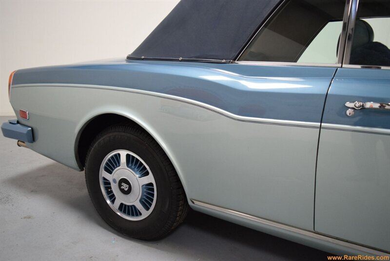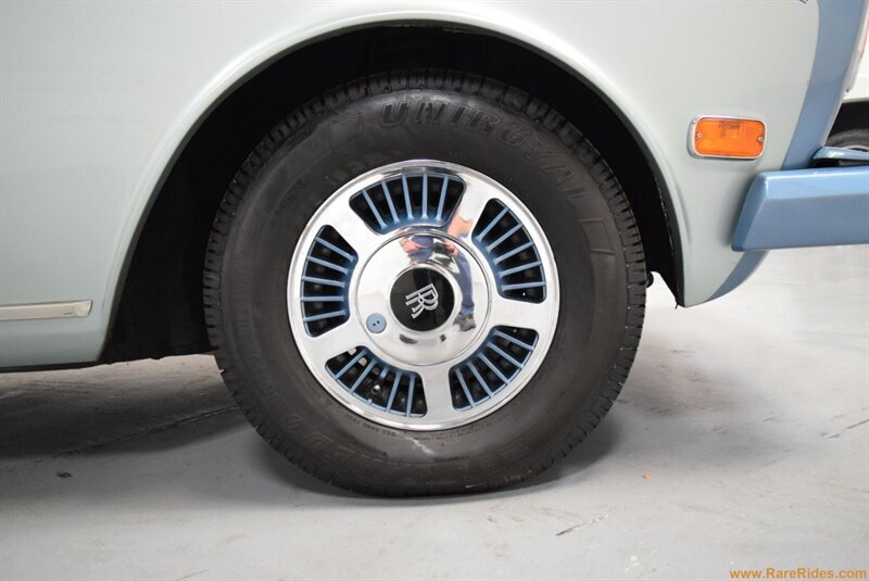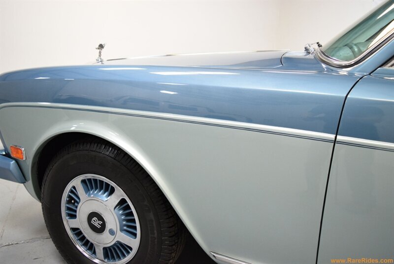 PAINT CONDITION OVERVIEW: The exterior is finished in a beautiful blue two-tone that is said to have been custom ordered. Similarly, the bumpers have been customized in paint to match. The paint appears to be original, and is in excellent condition overall with very few defects to be found. The wheel inserts are also painted to match, and the wheels themselves are actually Bentley wheels that are said to have been ordered on the car from new with Rolls-Royce center caps installed.