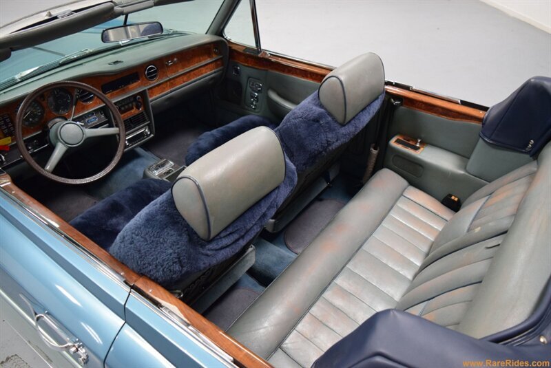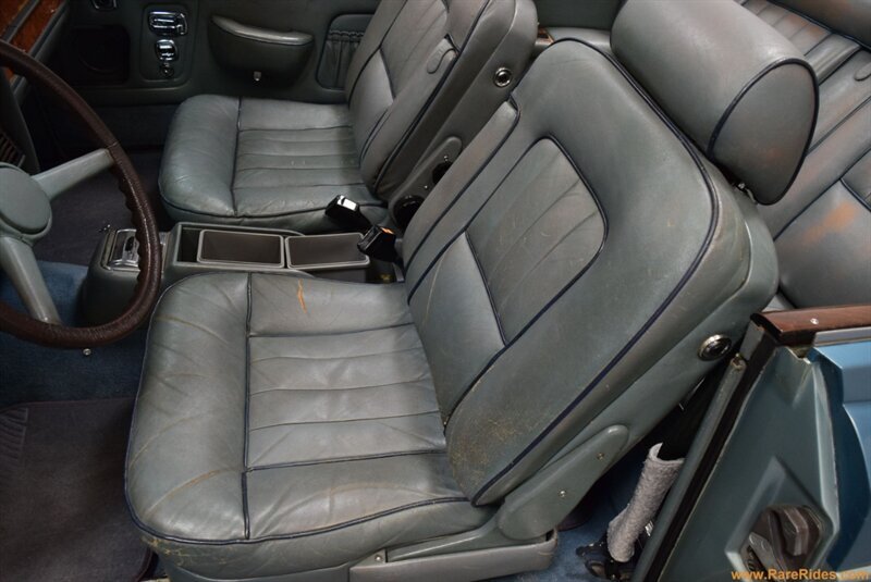 INTERIOR CONDITION OVERVIEW: Step inside, and you'll be transported right back to the prime-time of the Rolls-Royce era. The interior is finished in a beautiful blue dyed leather, emitting that wonderful Rolls-Royce leather smell. Though overall the interior is nicely preserved, the blue dye has worn off in some places due to heat, sun, wear, and the combination thereof. All of the real wood is intact, but the veneer is beginning to separate in some areas as can be seen in the photos.