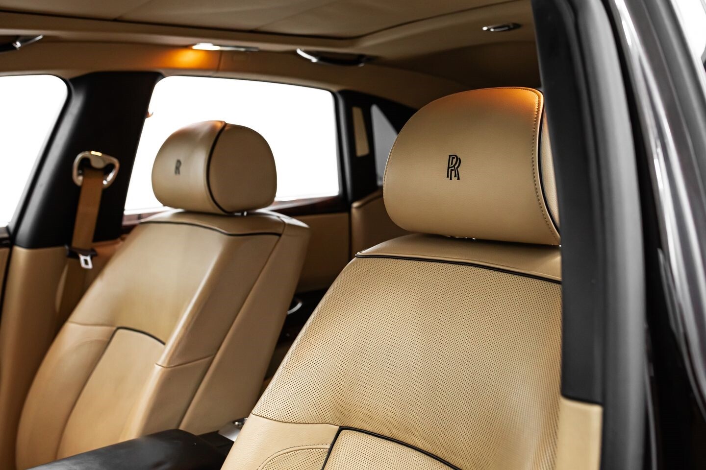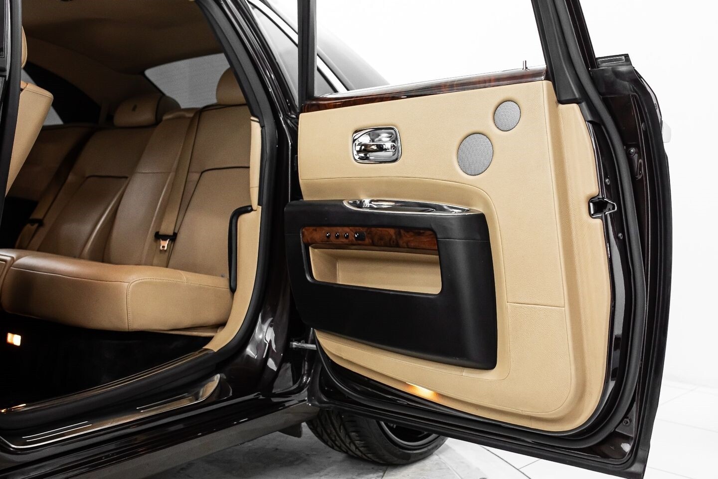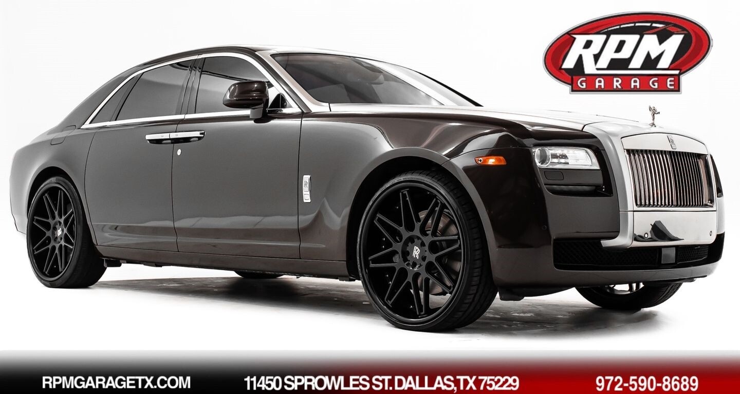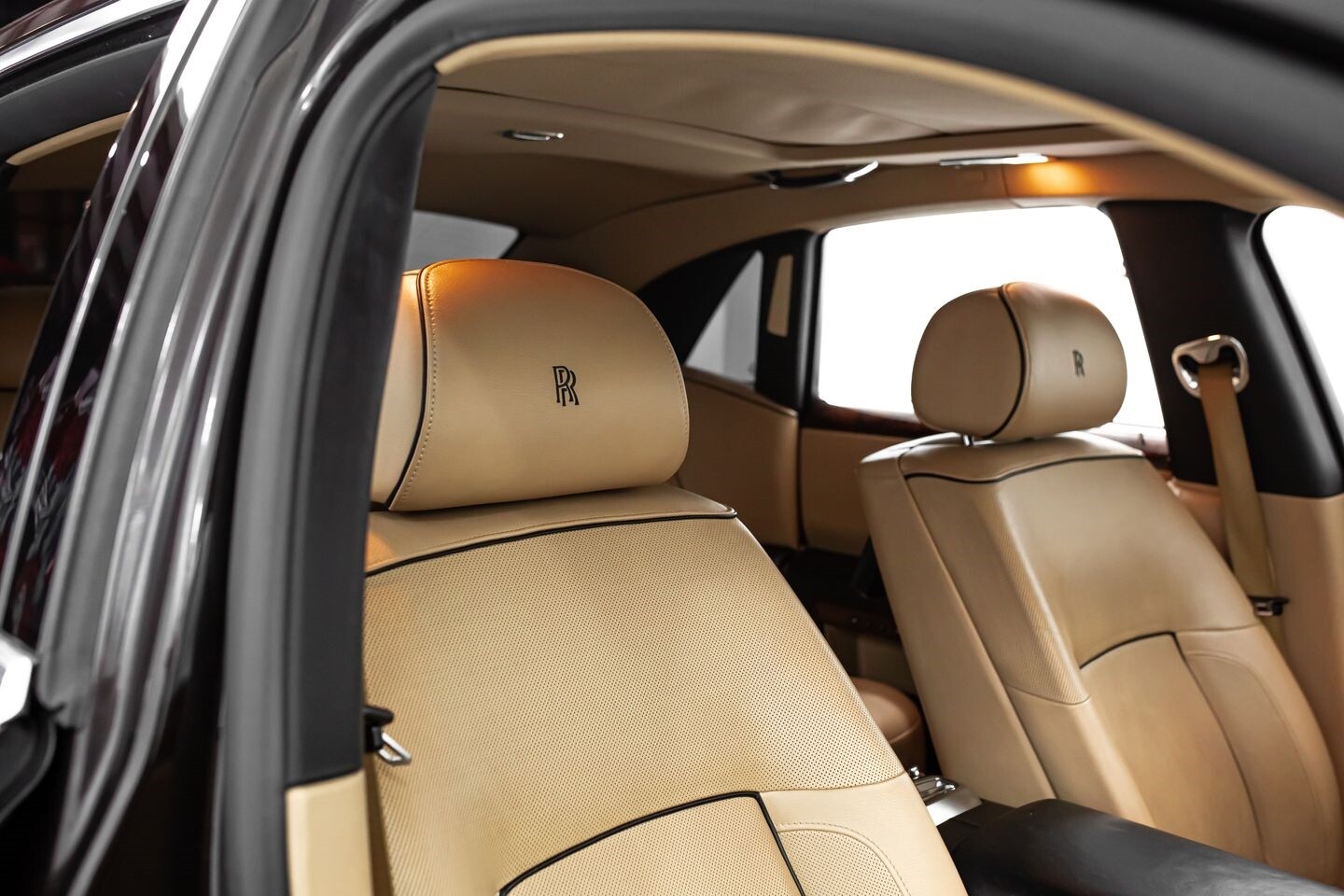 This 2013 Rolls-Royce Ghost is a luxurious sedan that simply has no equivalent. Under the hood, a twin-turbocharged 6.6-liter V12 engine produces 563 horsepower and 575 lb-ft of torque, all of which is sent through a eight-speed automatic transmission to the rear wheels. This eye-catching British masterpiece comes equipped with 24" AZAD wheels in matte black and is one of few examples to receive a factory two-tone paint finish: silver over metallic brown. With this exotic color combination, this Rolls-Royce is a true head-turner. In the interior, this Ghost offers heated and ventilated leather seats in the front and the rear, adjustable rear seats, quad-zone climate controls, a rear entertainment screen package, button push-to-close rear doors, wood interior trim pieces, selectable suspension height settings, a heads-up display, and an infotainment system with Bluetooth, navigation, apps, phone connectivity, CD, AUX, and a backup camera, truly making this car the complete package.