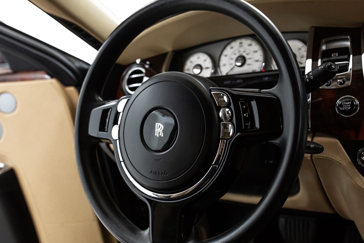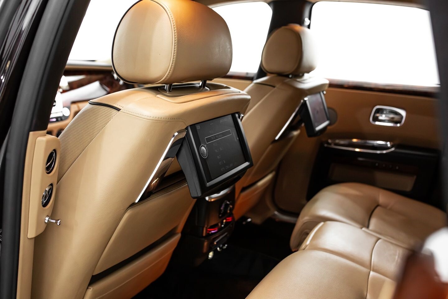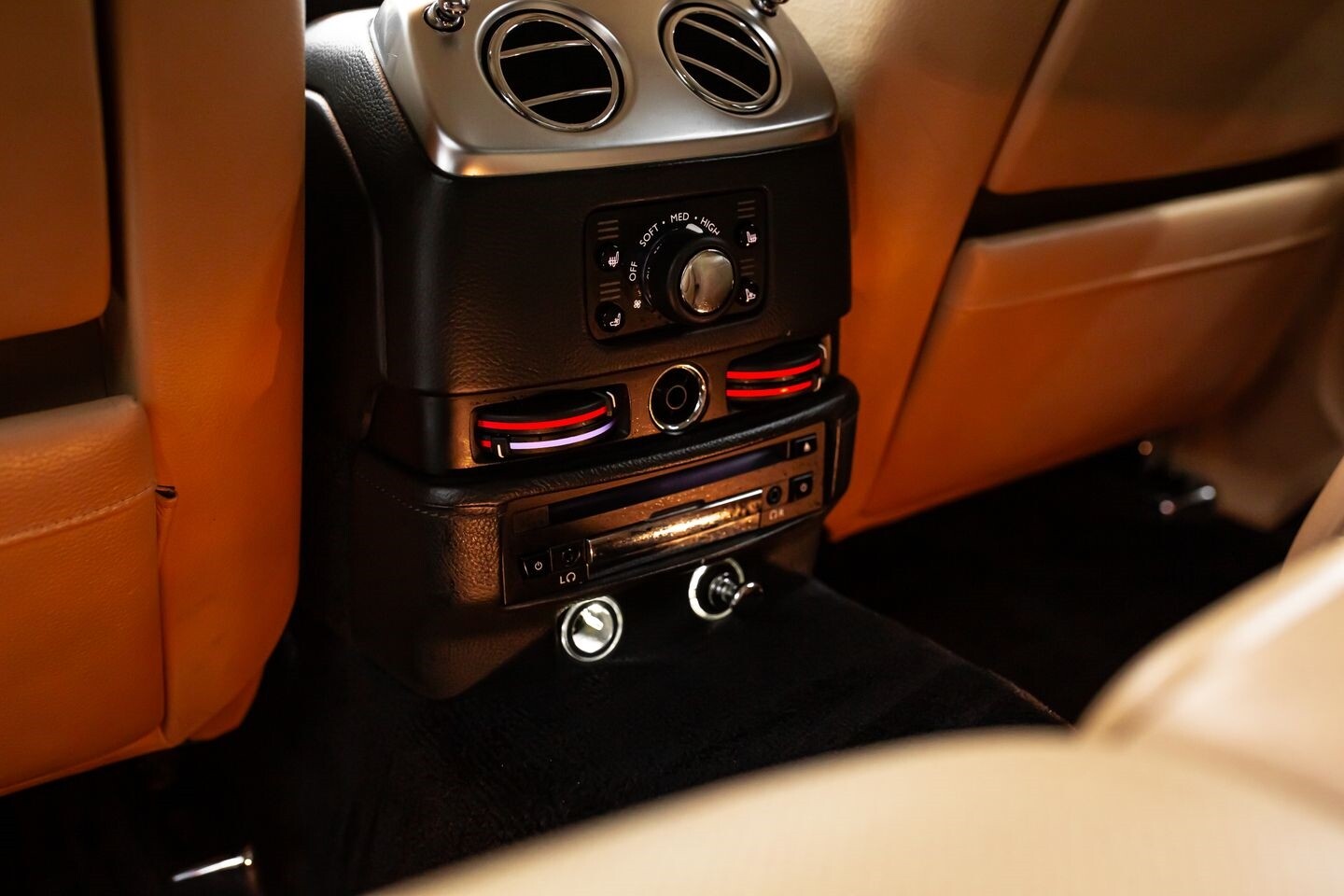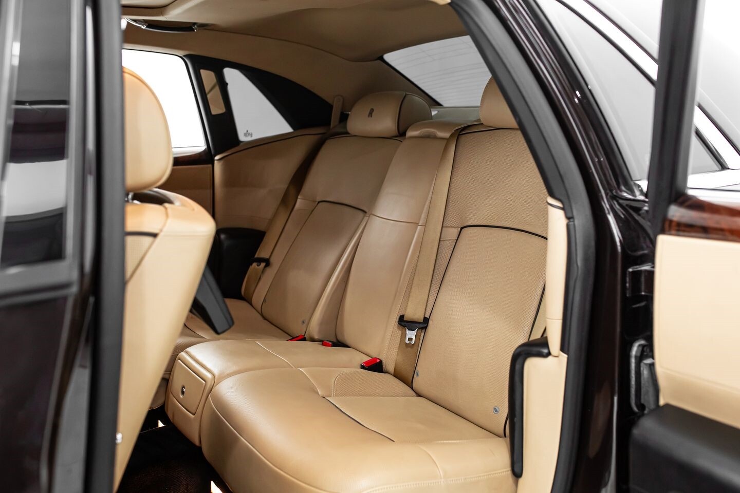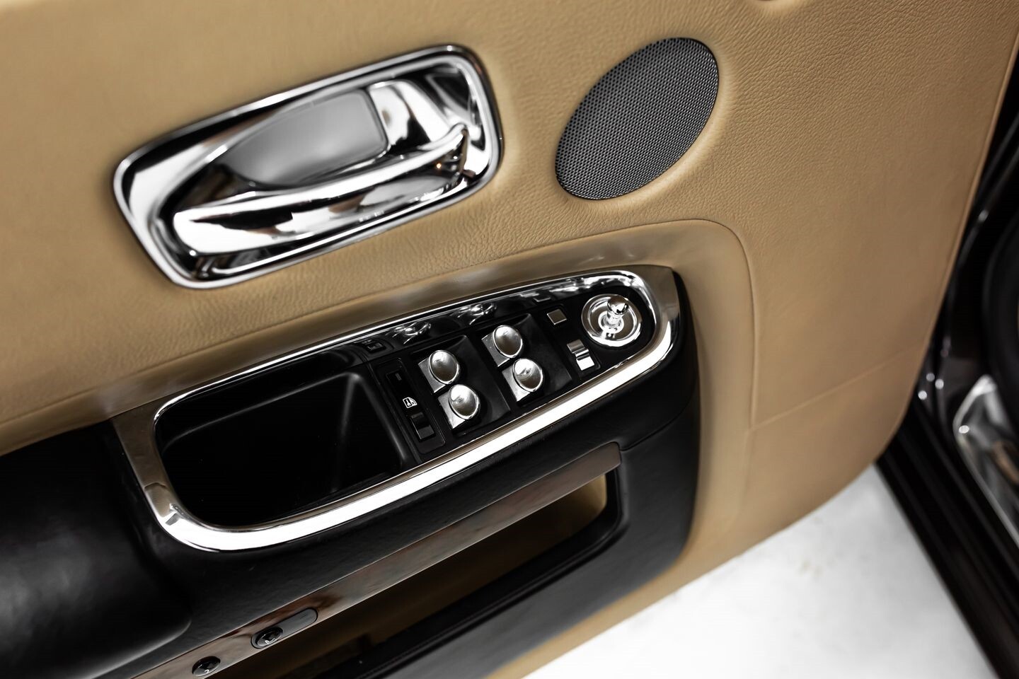 This 2013 Rolls-Royce Ghost is a luxurious sedan that simply has no equivalent. Under the hood, a twin-turbocharged 6.6-liter V12 engine produces 563 horsepower and 575 lb-ft of torque, all of which is sent through a eight-speed automatic transmission to the rear wheels. This eye-catching British masterpiece comes equipped with 24" AZAD wheels in matte black and is one of few examples to receive a factory two-tone paint finish: silver over metallic brown. With this exotic color combination, this Rolls-Royce is a true head-turner. In the interior, this Ghost offers heated and ventilated leather seats in the front and the rear, adjustable rear seats, quad-zone climate controls, a rear entertainment screen package, button push-to-close rear doors, wood interior trim pieces, selectable suspension height settings, a heads-up display, and an infotainment system with Bluetooth, navigation, apps, phone connectivity, CD, AUX, and a backup camera, truly making this car the complete package.